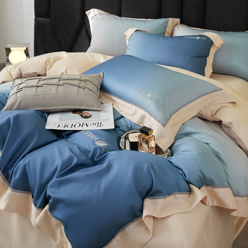 时亿家居 2023新款120支长绒棉陶瓷磨毛四件套-露丝系列 露丝 普蓝
