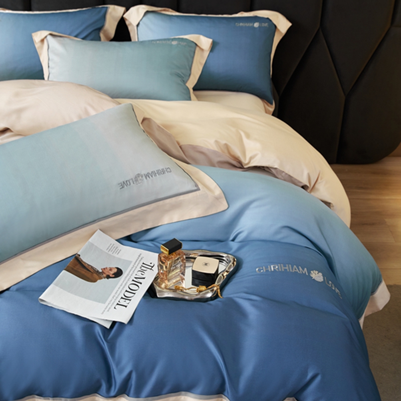 (总)时亿 2023新款100支长绒棉四件套苍兰之约,苍兰之约-橙,苍兰之约-绿