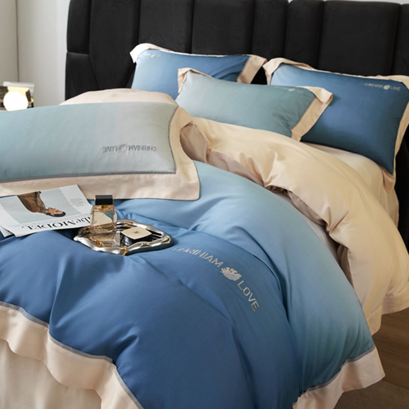 (总)时亿 2023新款100支长绒棉四件套心晴,心晴-粉,心晴-灰,心晴-蓝