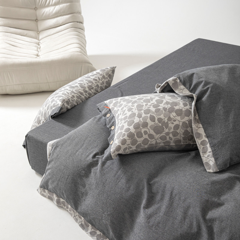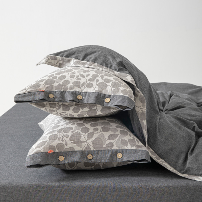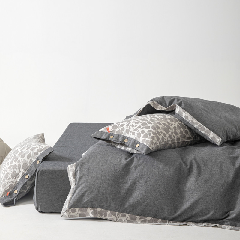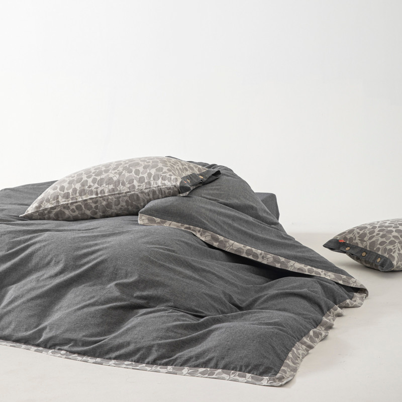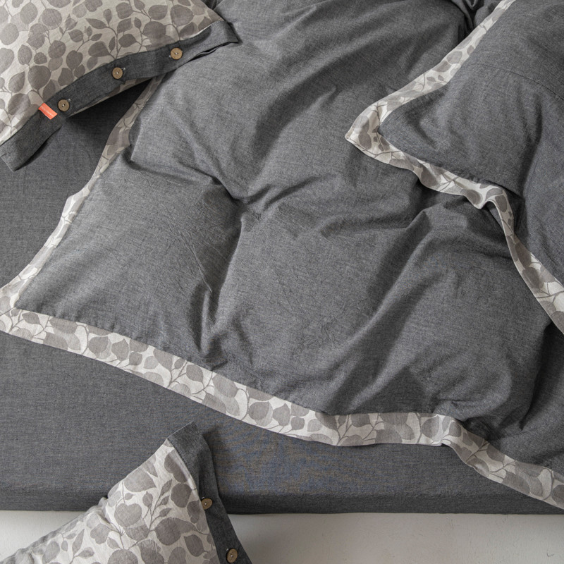 当前位置: 91家纺网 > 商品网购 > 床品套件 > 四件套 > 全棉普通四件套 > 安莱生活 2023新款A类简约棉麻树叶拼边四件套 棉麻拼边纽扣款-深灰