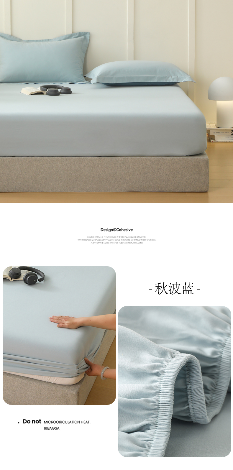 商品名称:云栖家居 2023A类纯色纯棉磨毛单床笠 秋波蓝
