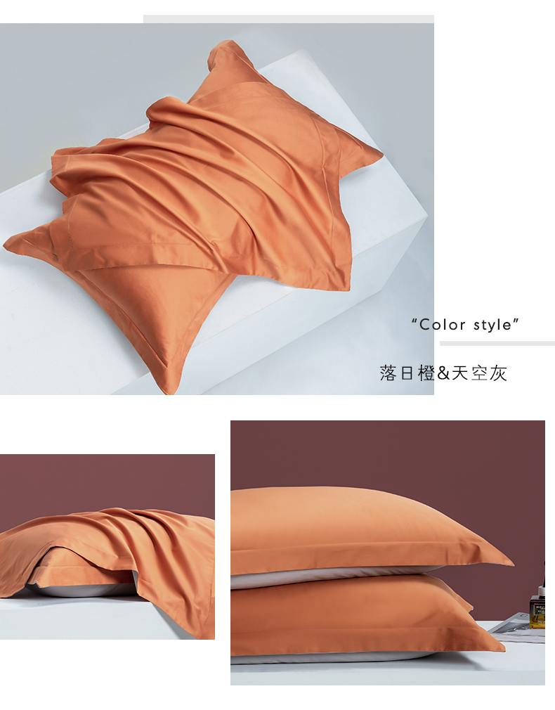 商品名称:云栖家居 2023A类长绒棉纯色单枕套 落日橙&天空灰