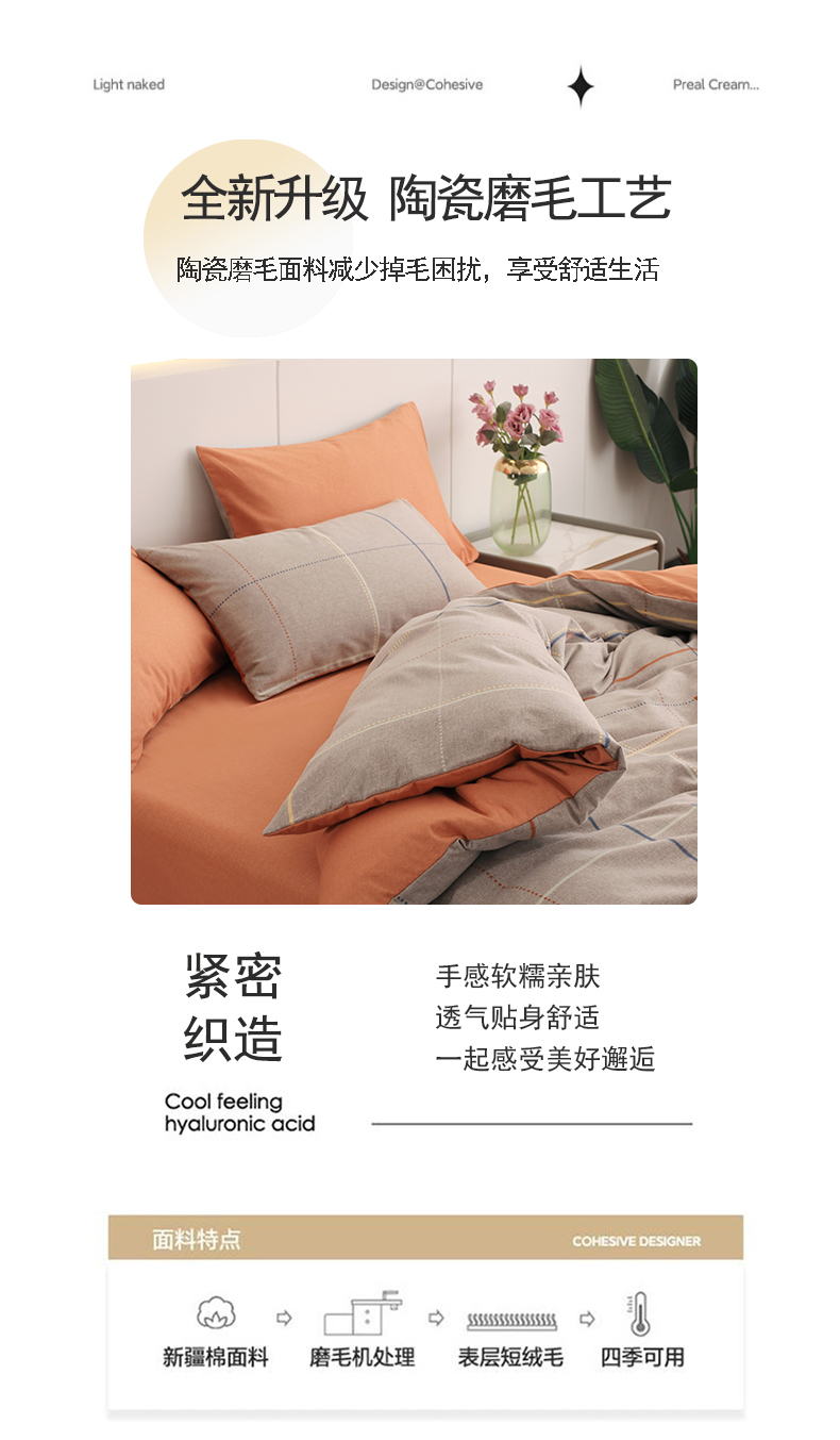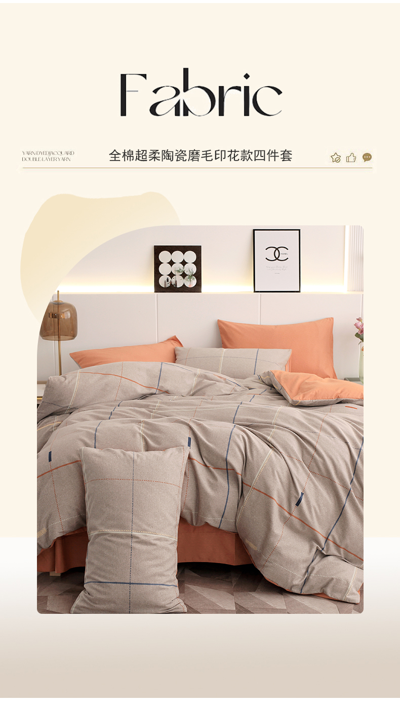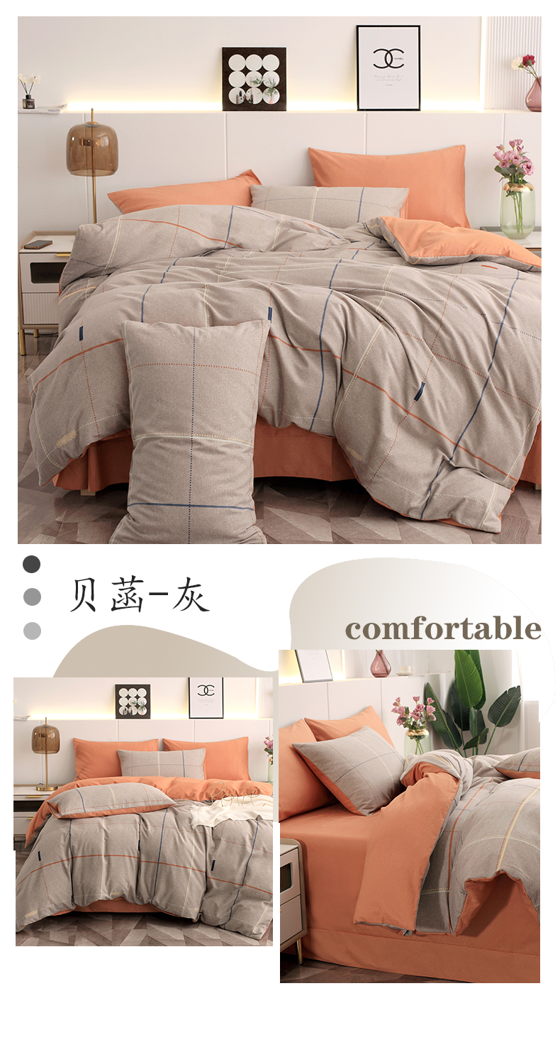 爱思佳 2023新款全棉超柔陶瓷磨毛系列四件套 贝菡-灰