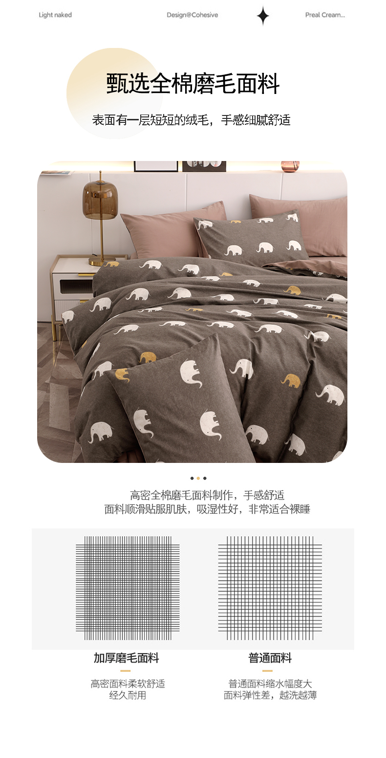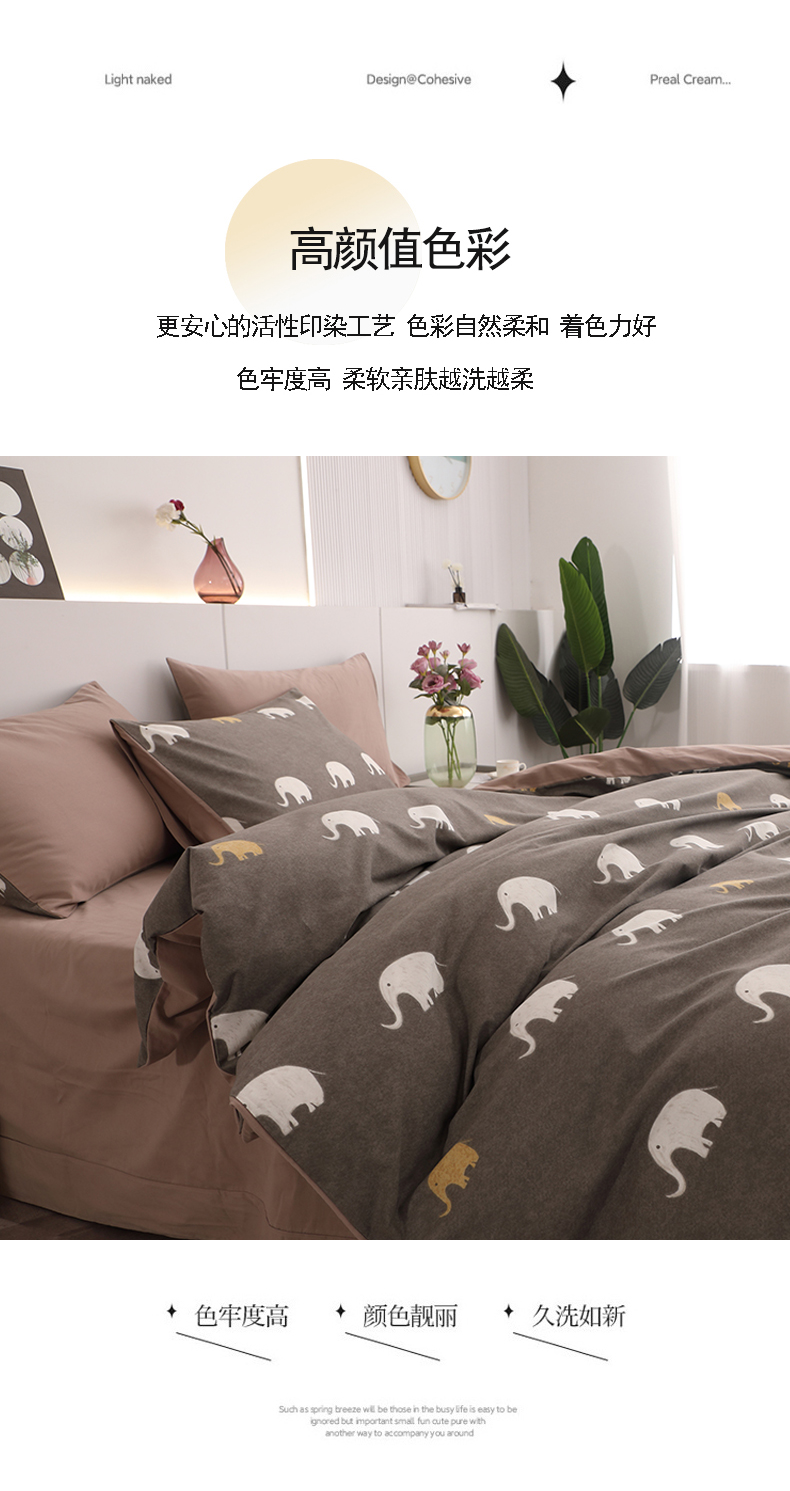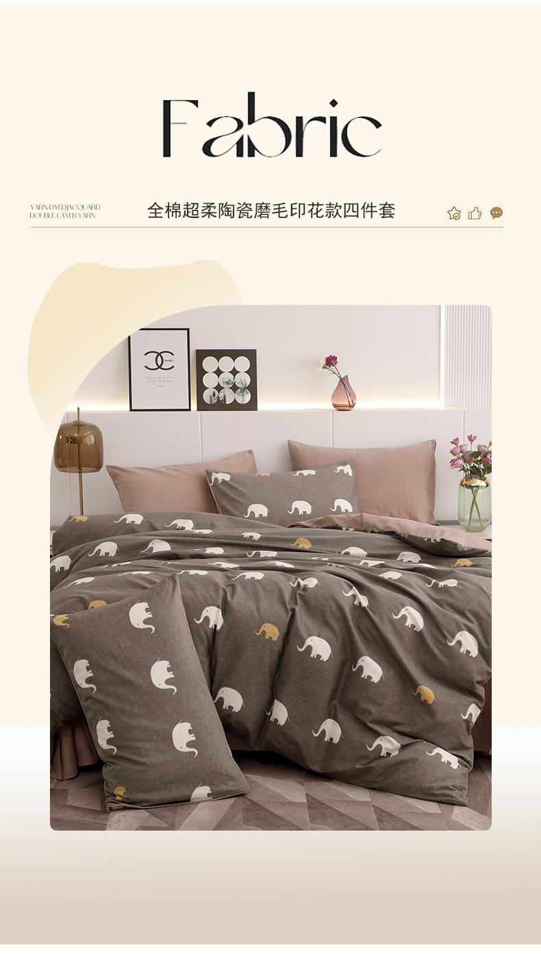 爱思佳 2023新款全棉超柔陶瓷磨毛系列四件套 象之家