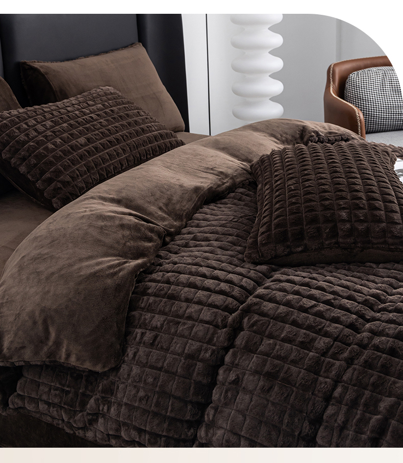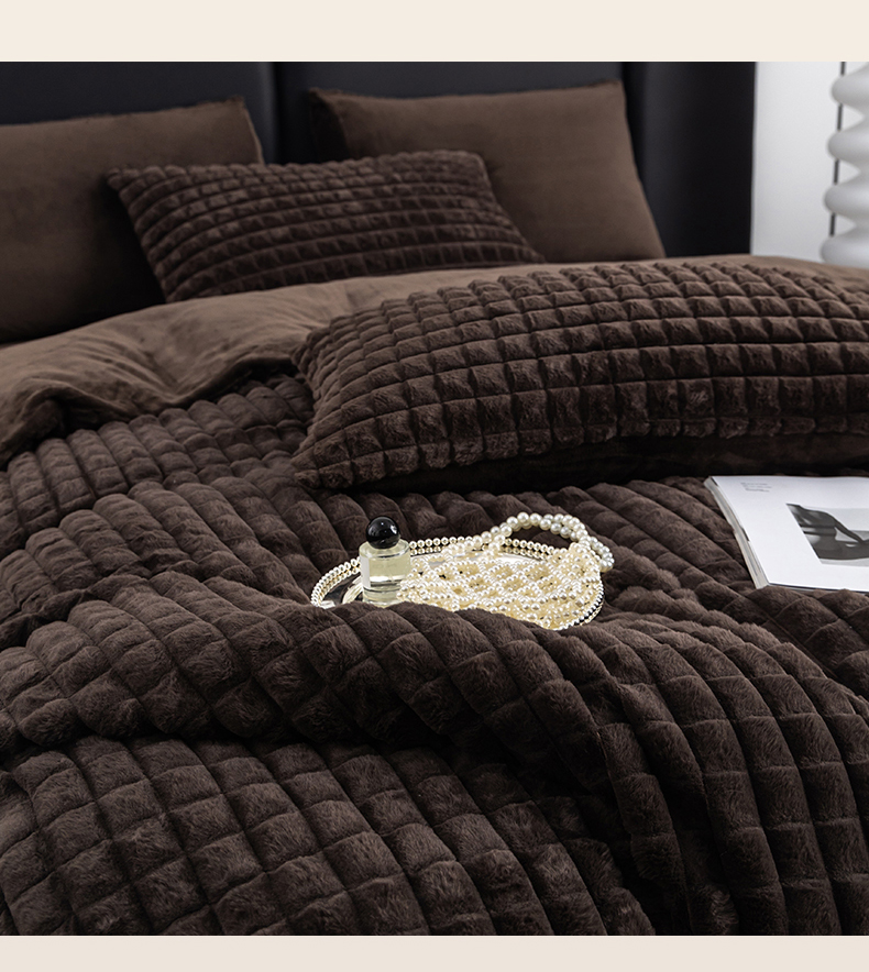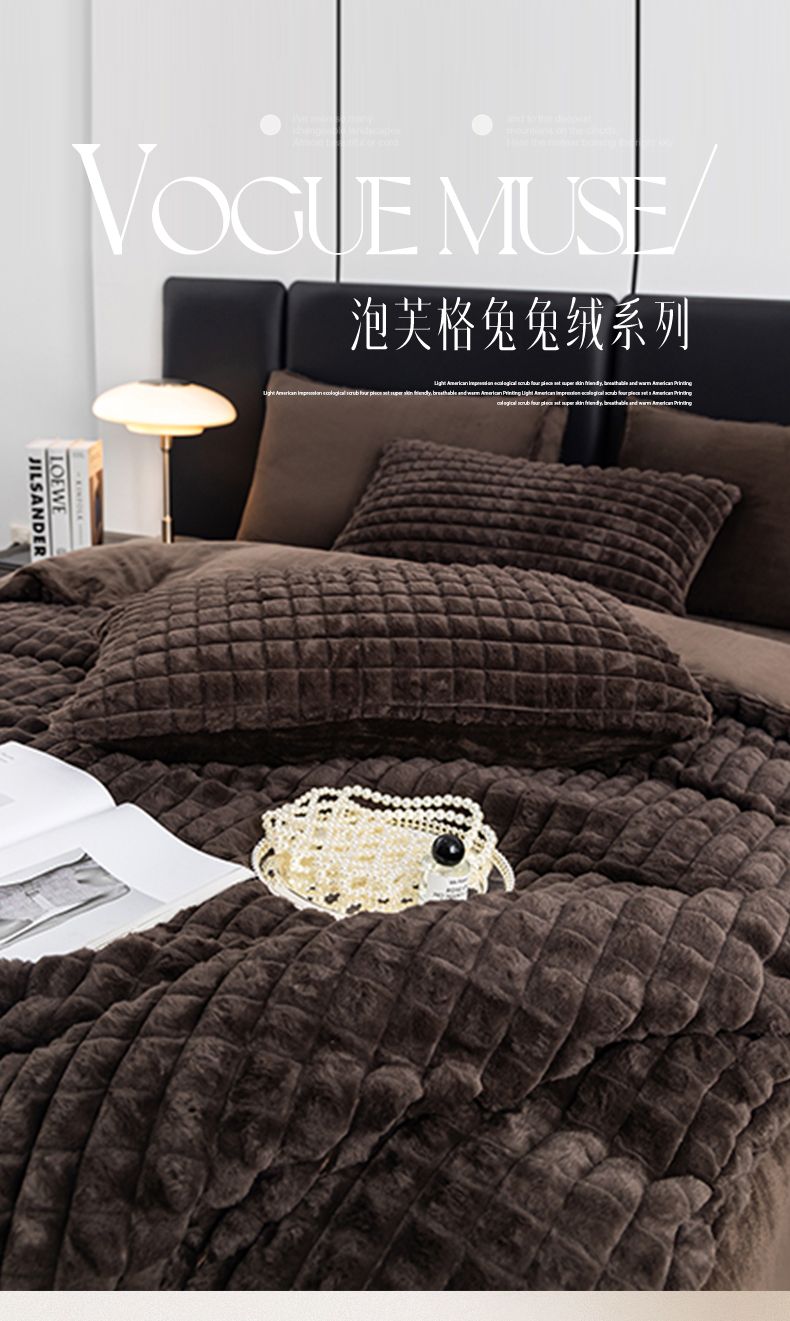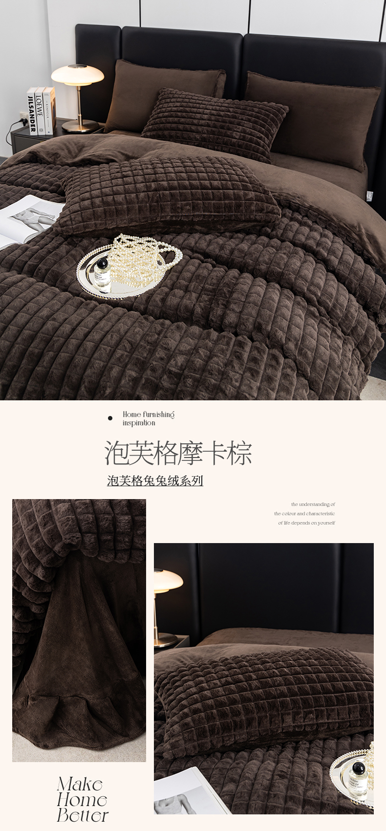 商品名称:罗优 2023新款A类兔毛绒泡芙格系列四件套泡芙格摩卡棕