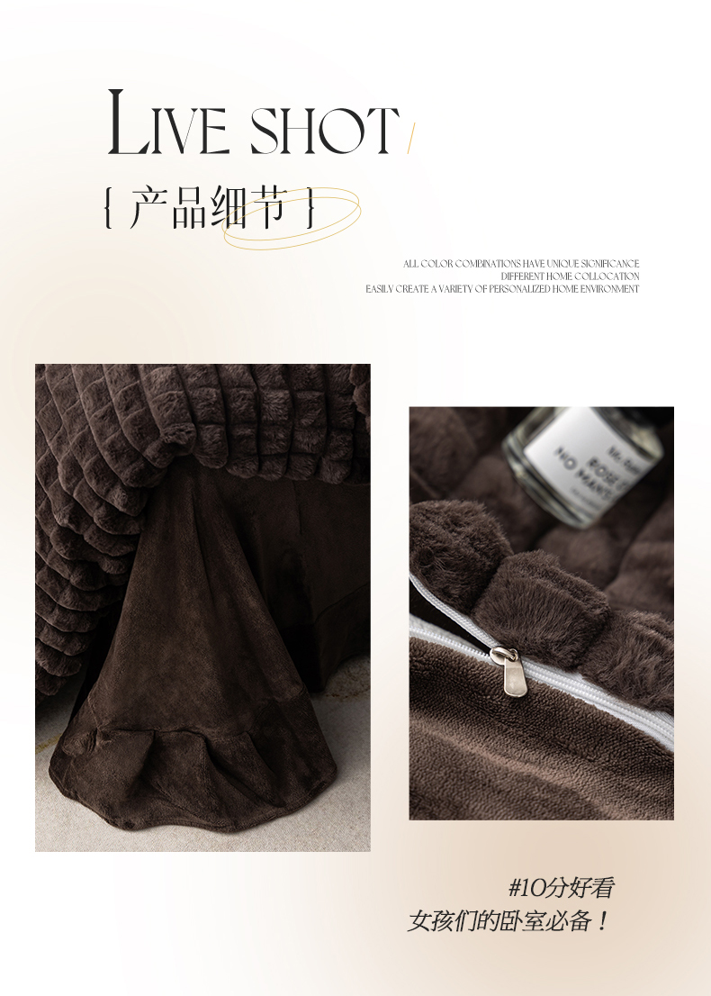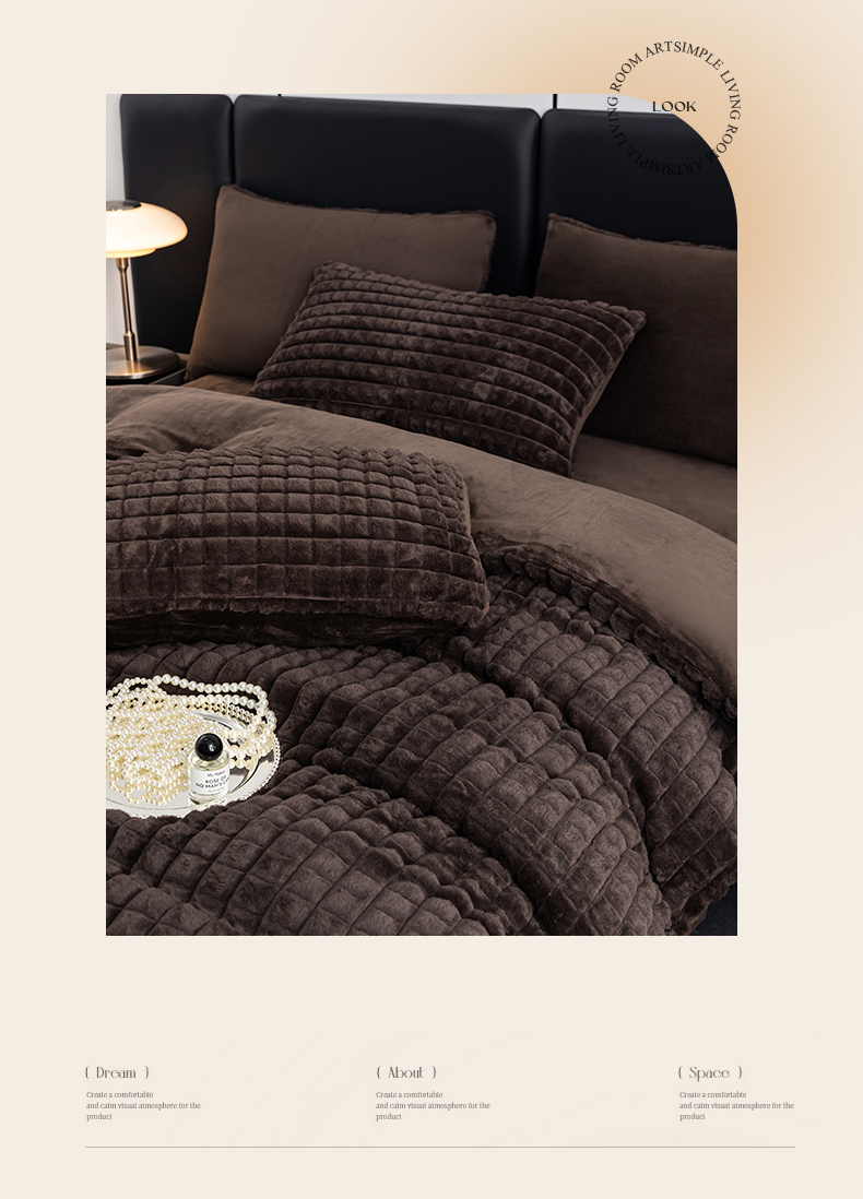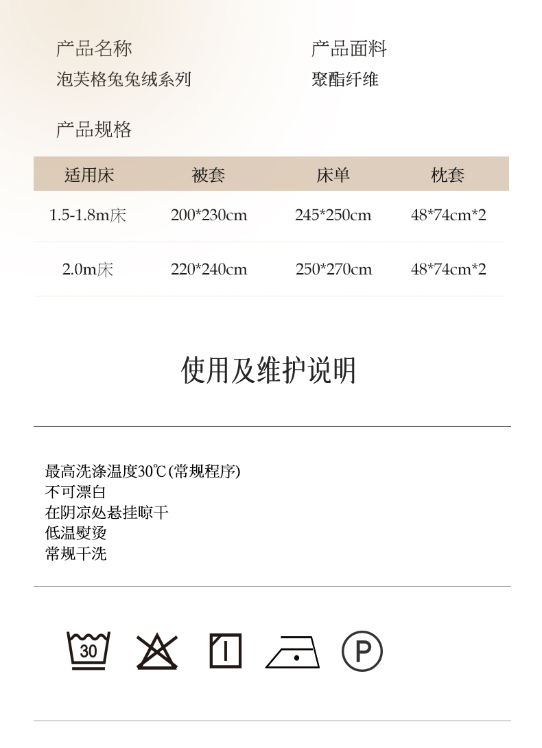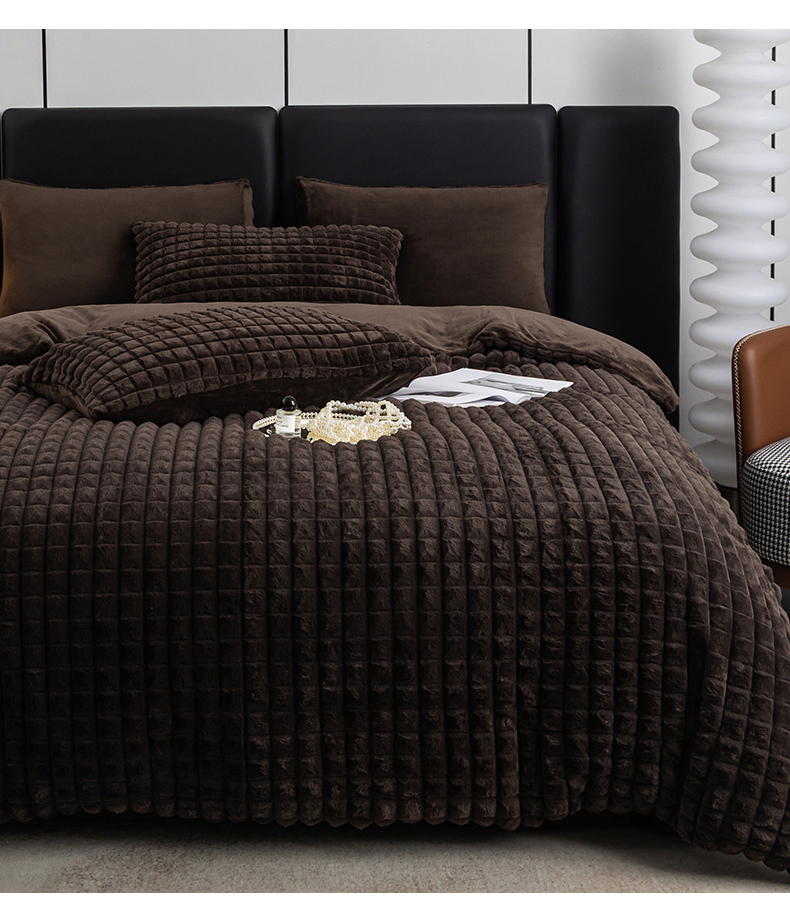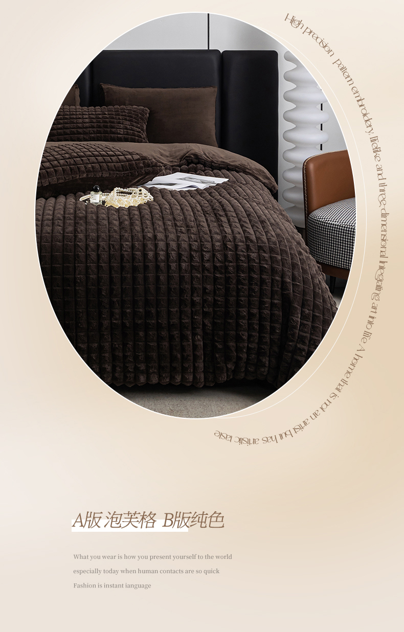 商品名称:罗优 2023新款A类兔毛绒泡芙格系列四件套泡芙格摩卡棕