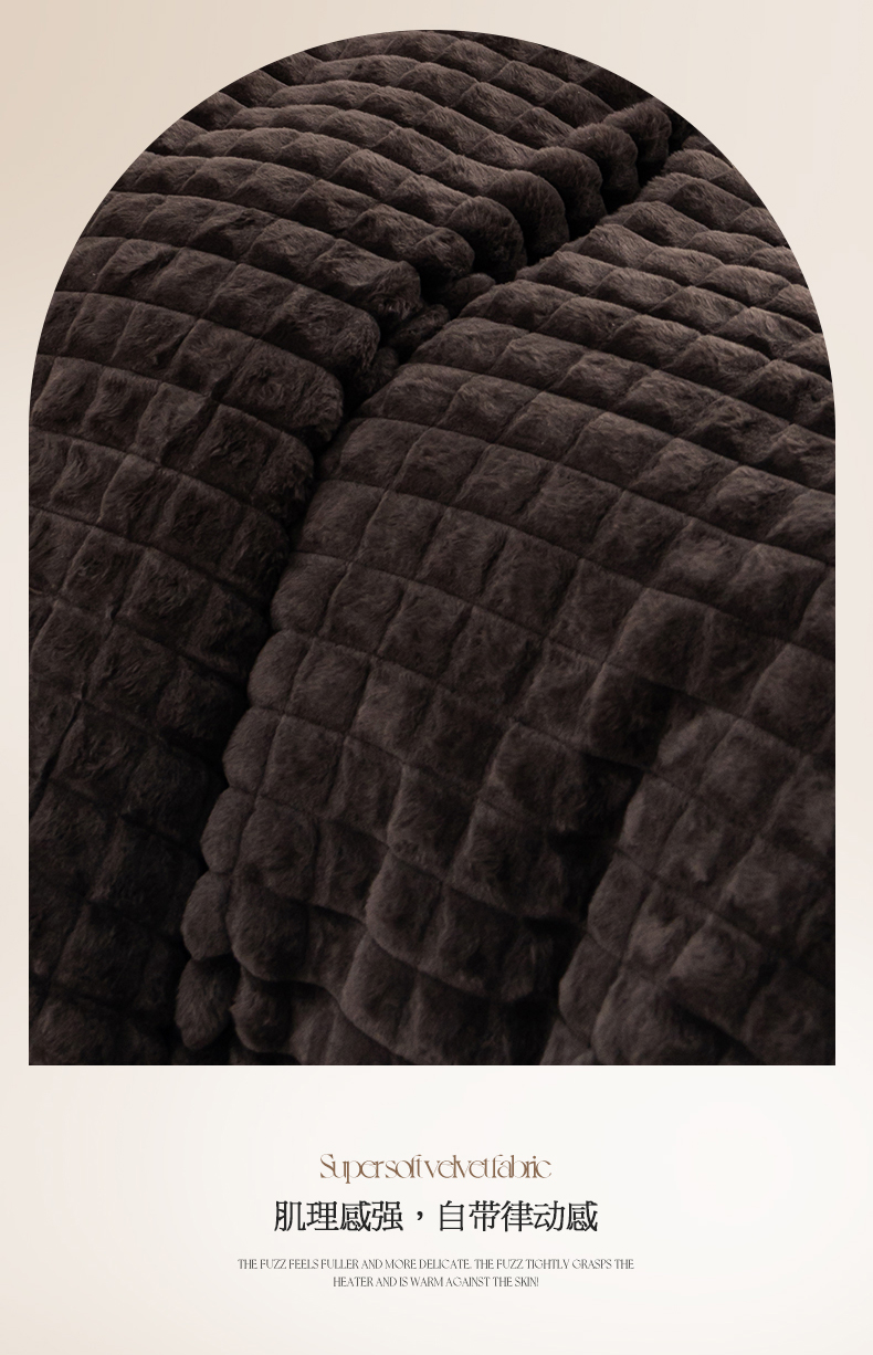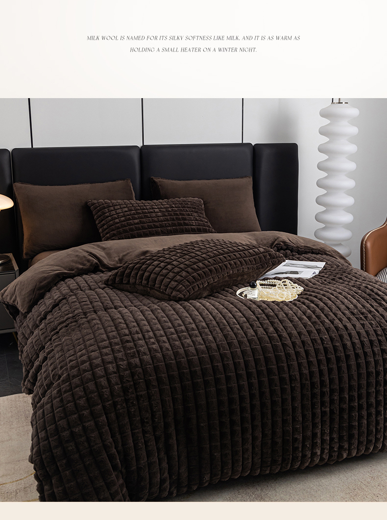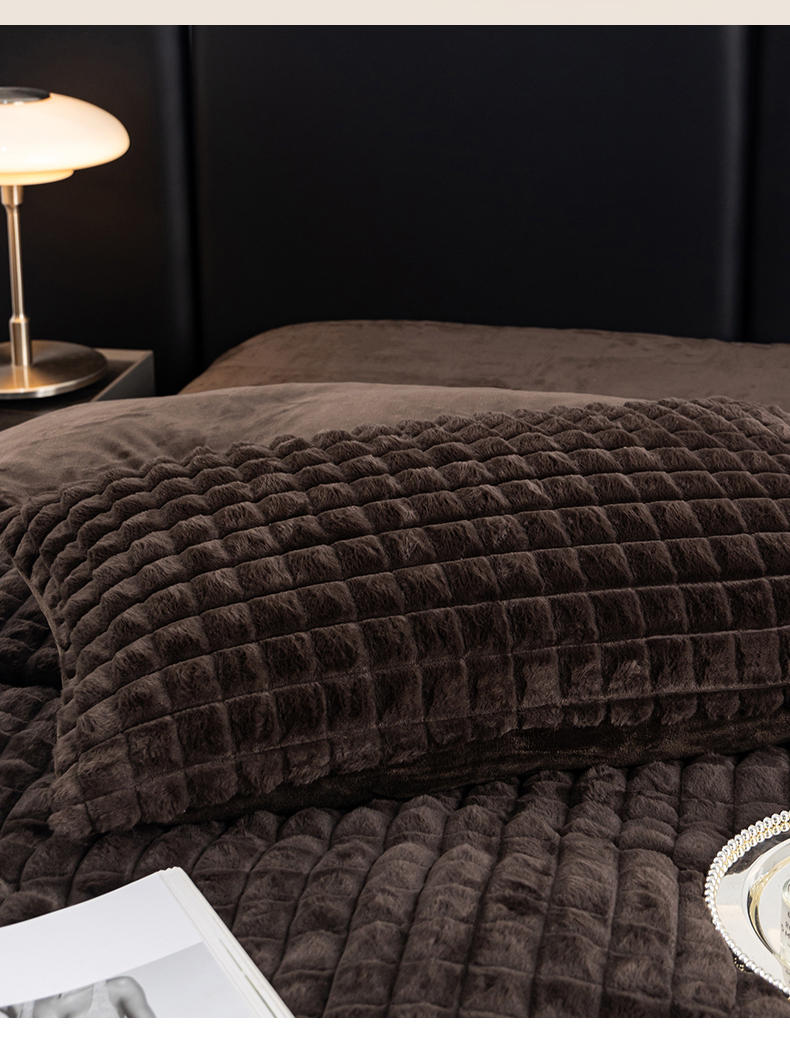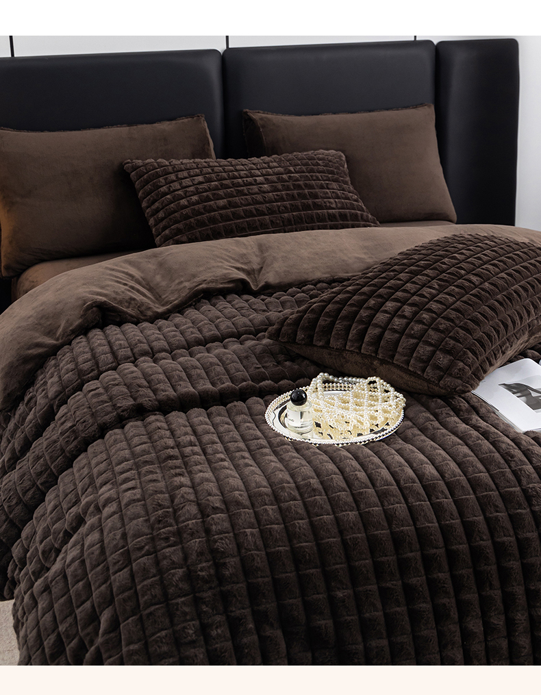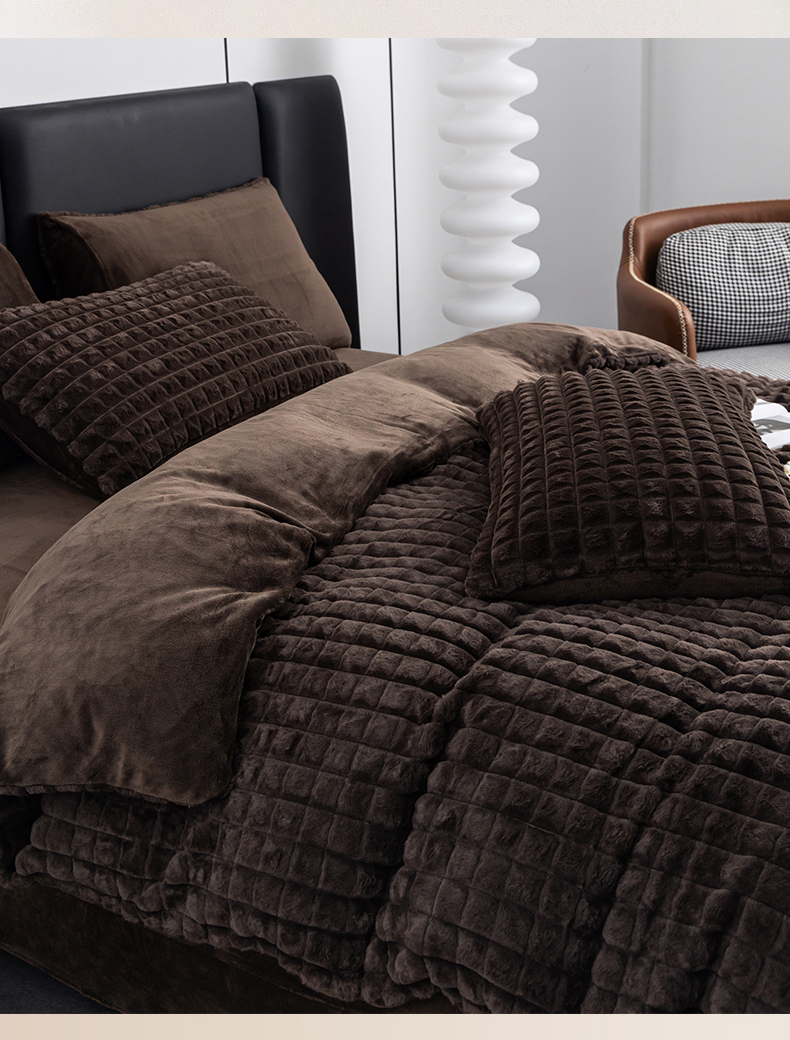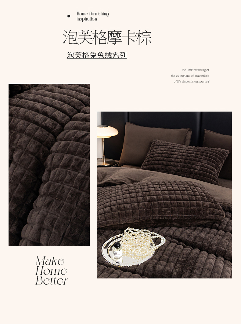 罗优 2023新款A类兔毛绒泡芙格系列四件套泡芙格摩卡棕