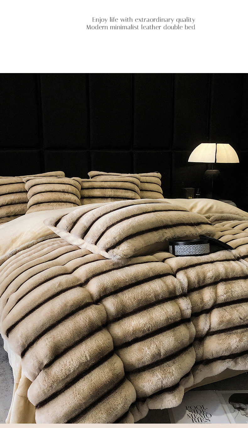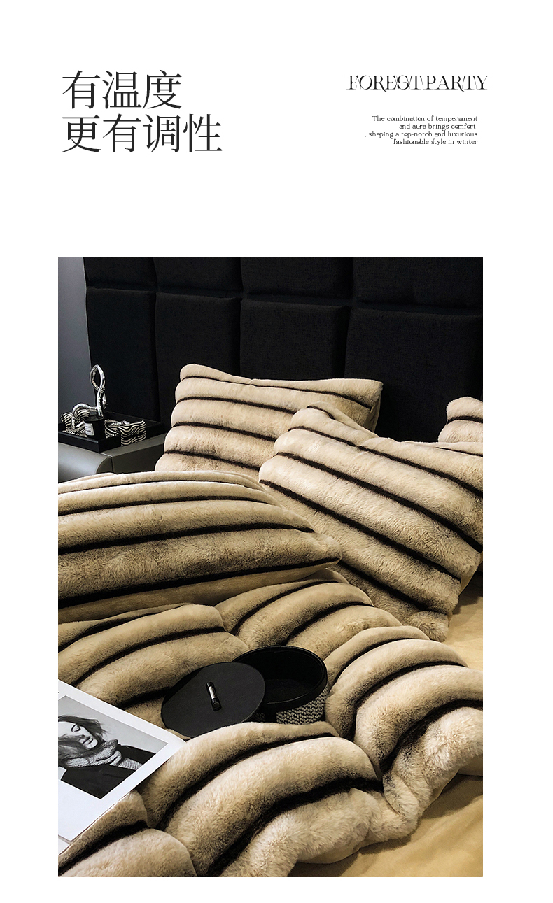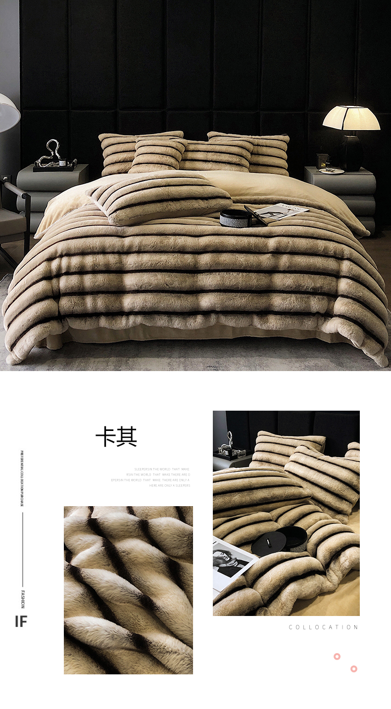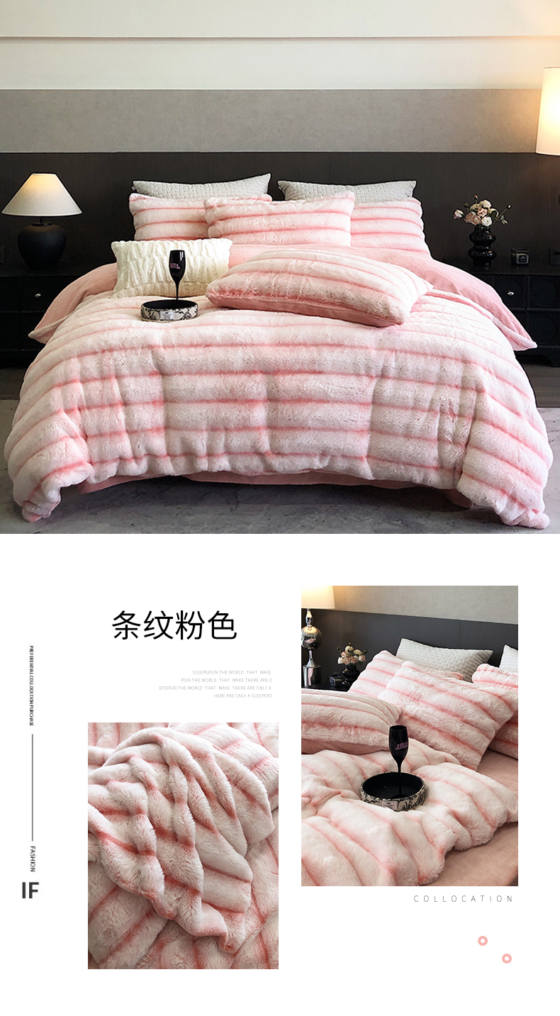 (总)罗优家纺 2025新款条纹兔兔绒四件套