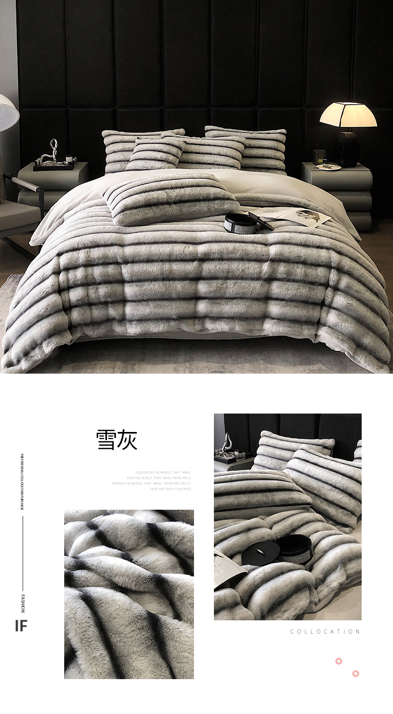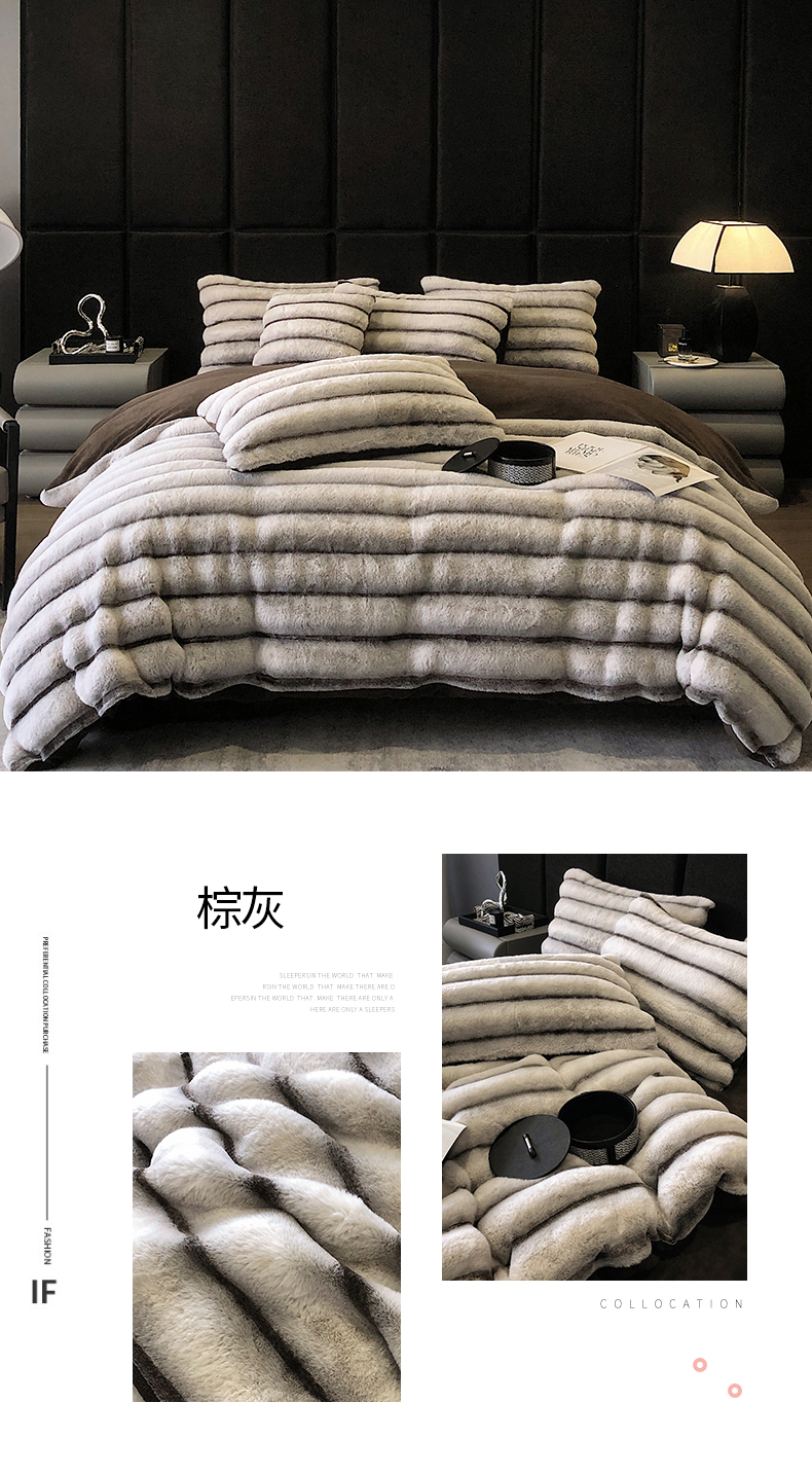 (总)罗优家纺 2025新款亲肤舒适轻奢仿兔兔绒套件四件套(小号188标准228加大248标准床笠238加大床笠258),奶茶驼,浅灰韵,云绒白