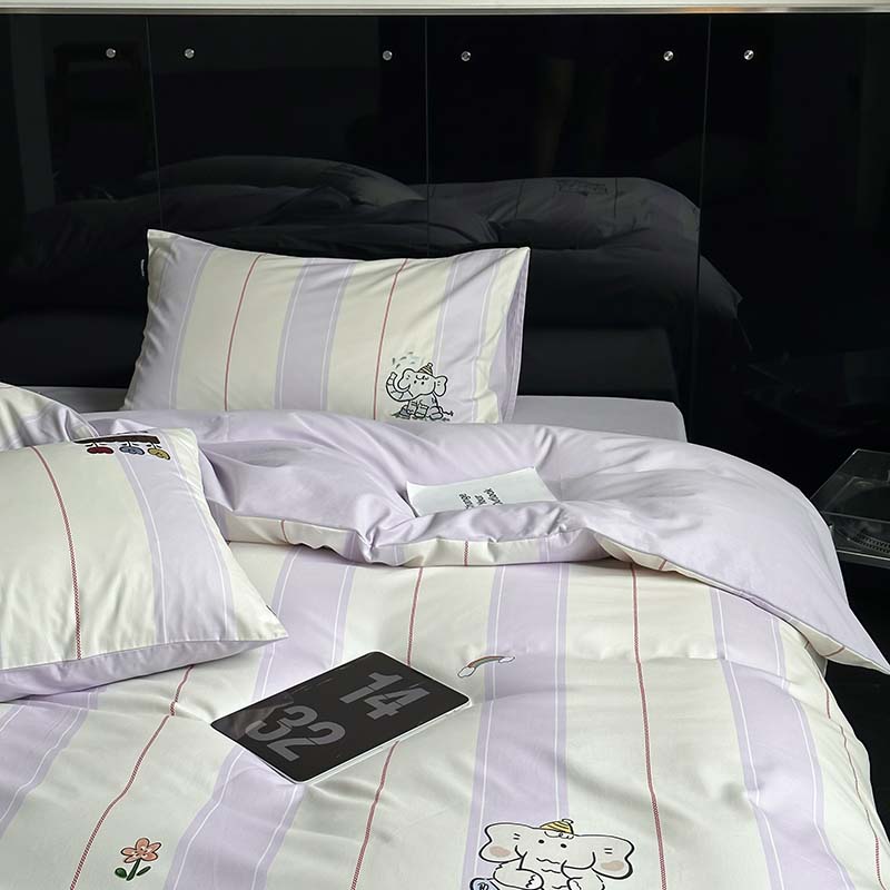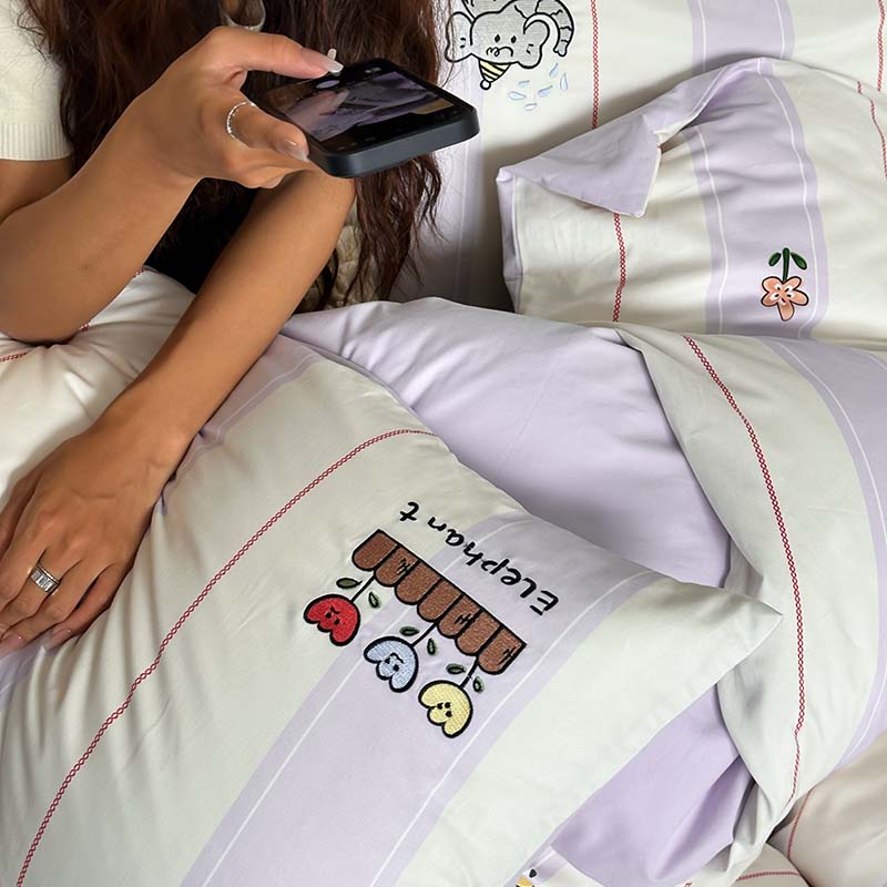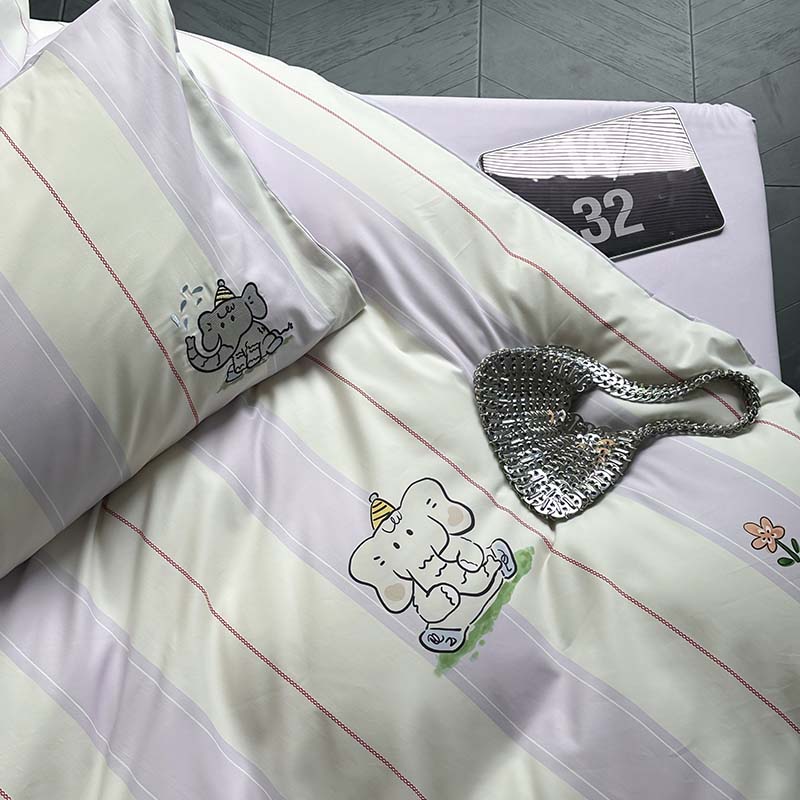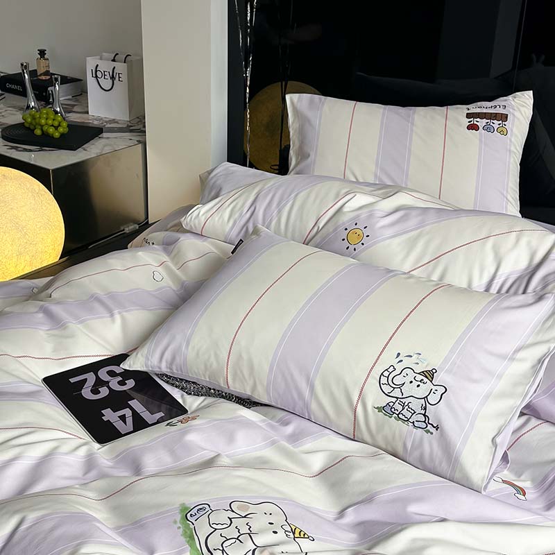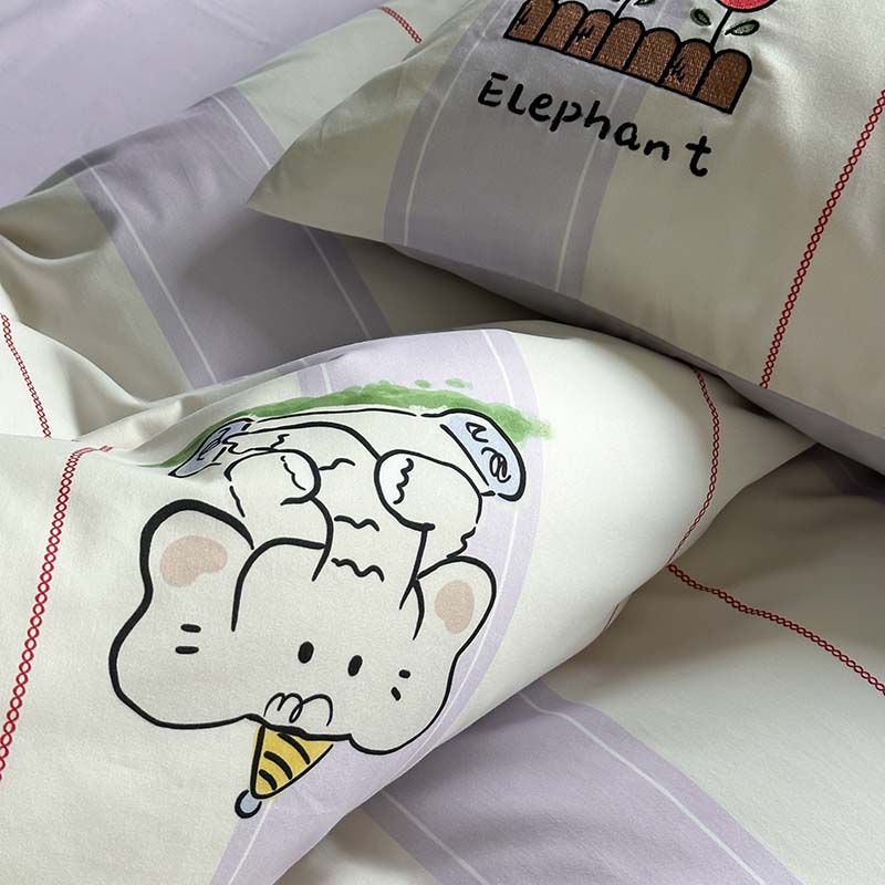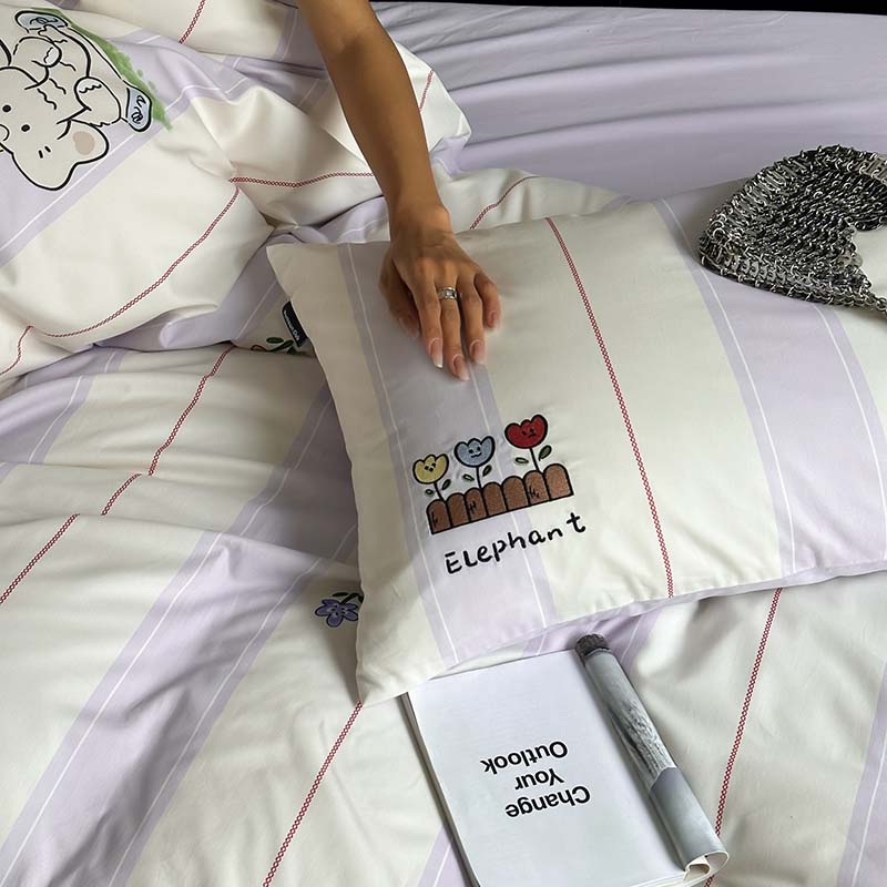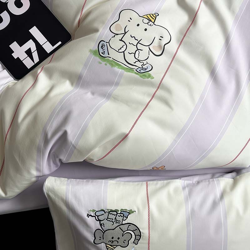 圆岛家纺 2023冬季新款全棉加厚磨毛刺绣四件套-场景一 假日小象