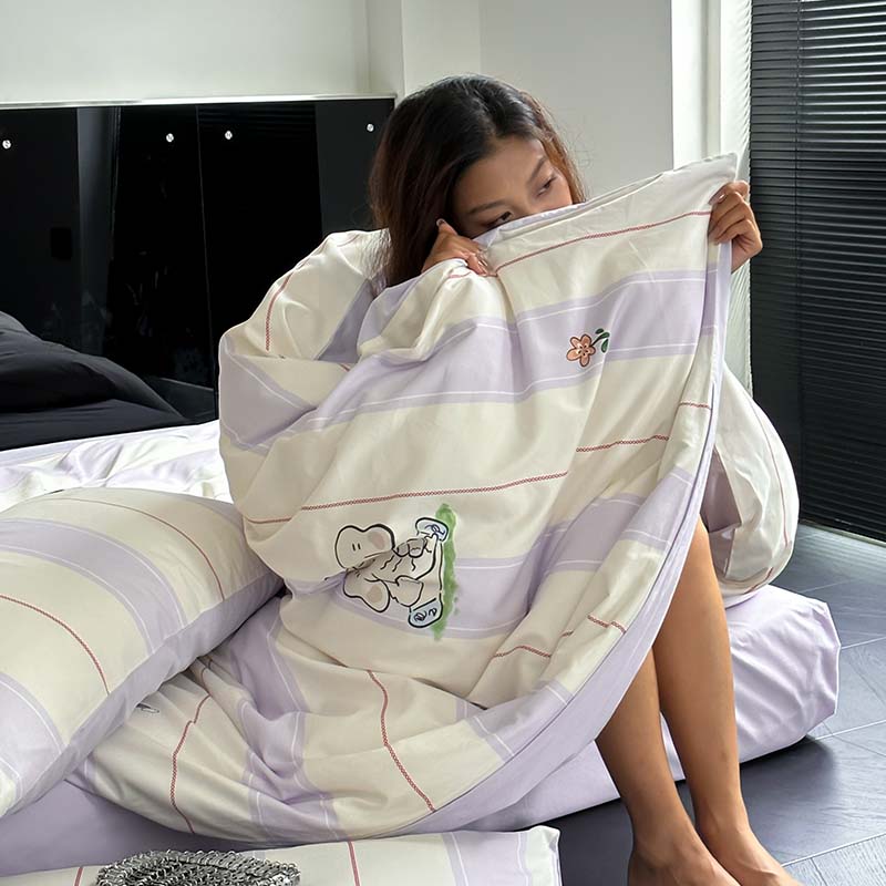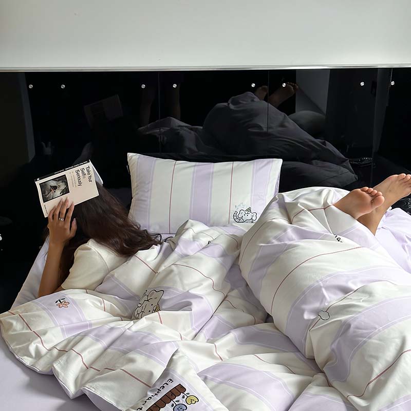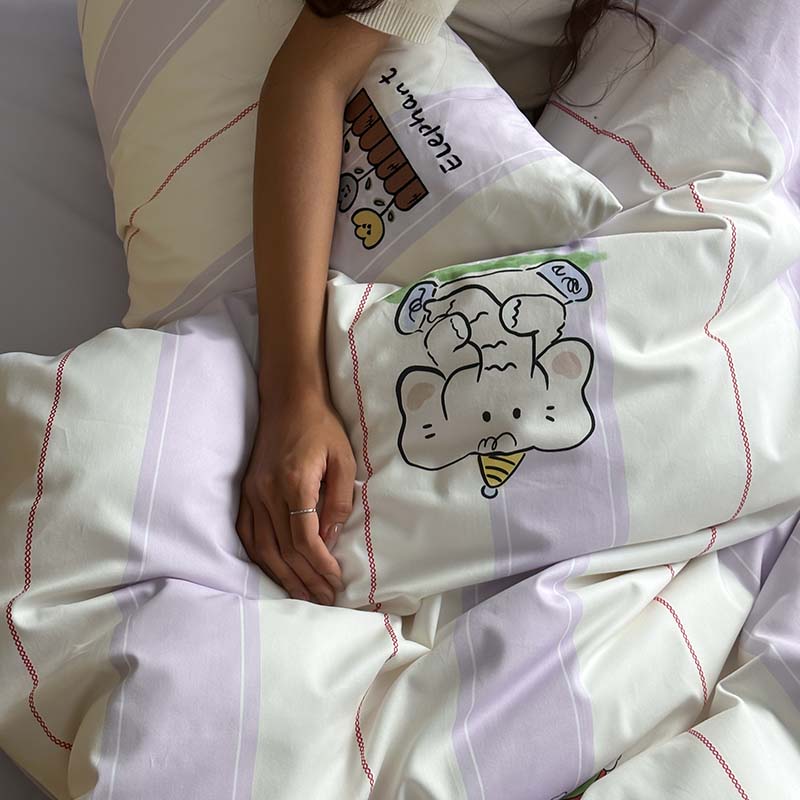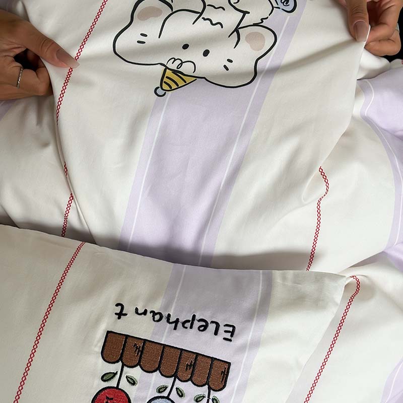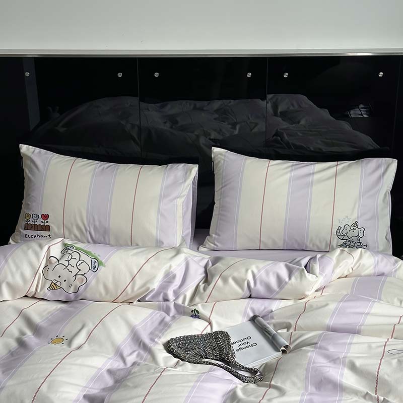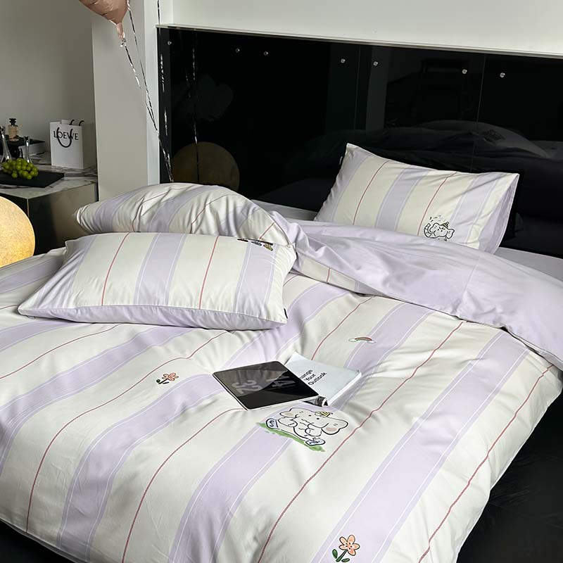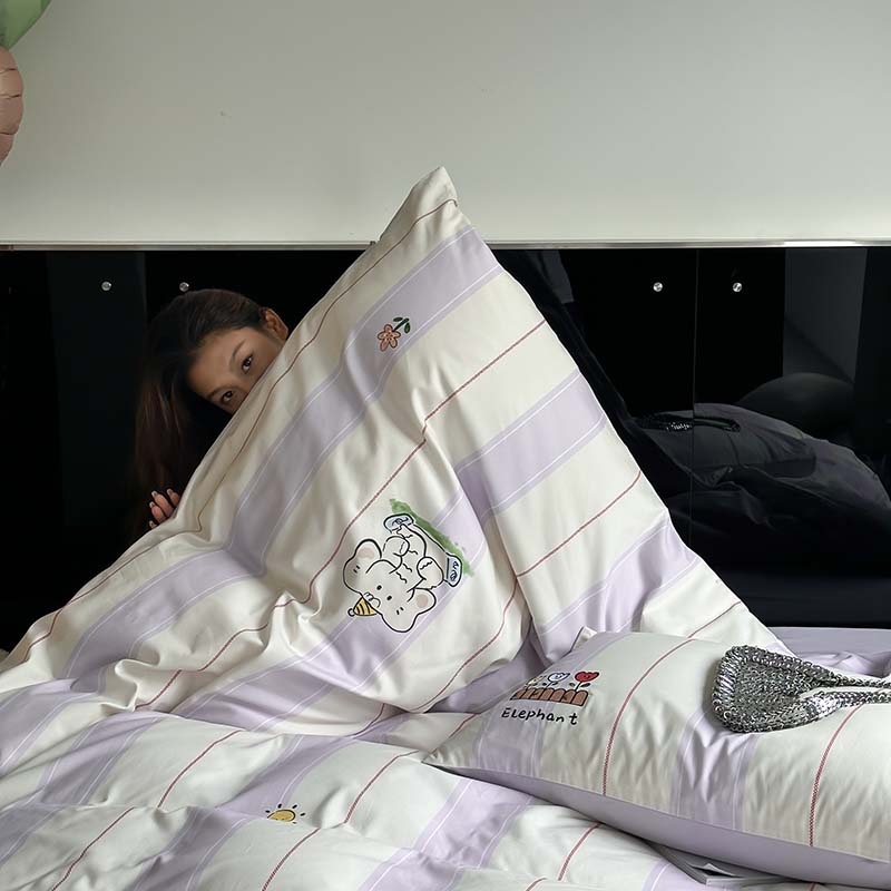圆岛家纺 2023冬季新款全棉加厚磨毛刺绣四件套-场景一 假日小象