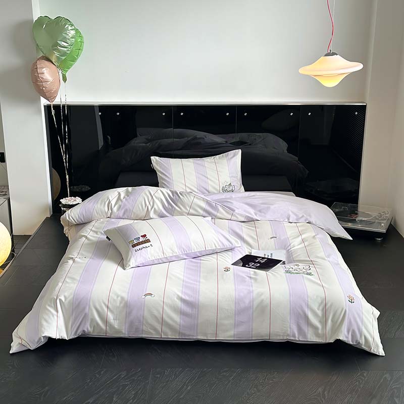 (总)圆岛家纺 2023冬季新款全棉加厚磨毛刺绣四件套-场景二,假日小象,猫咪日记