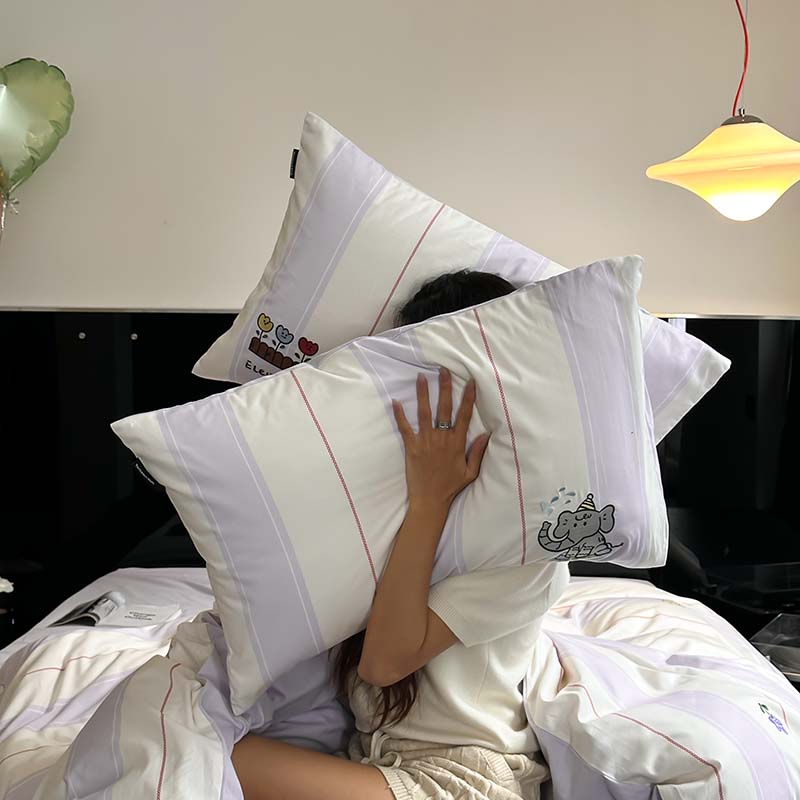(总)圆岛家纺 2023新款可单卖单品枕套图1,Luv紫,葵绿条,奶牛斑点,薇粉细条,心心,星岛