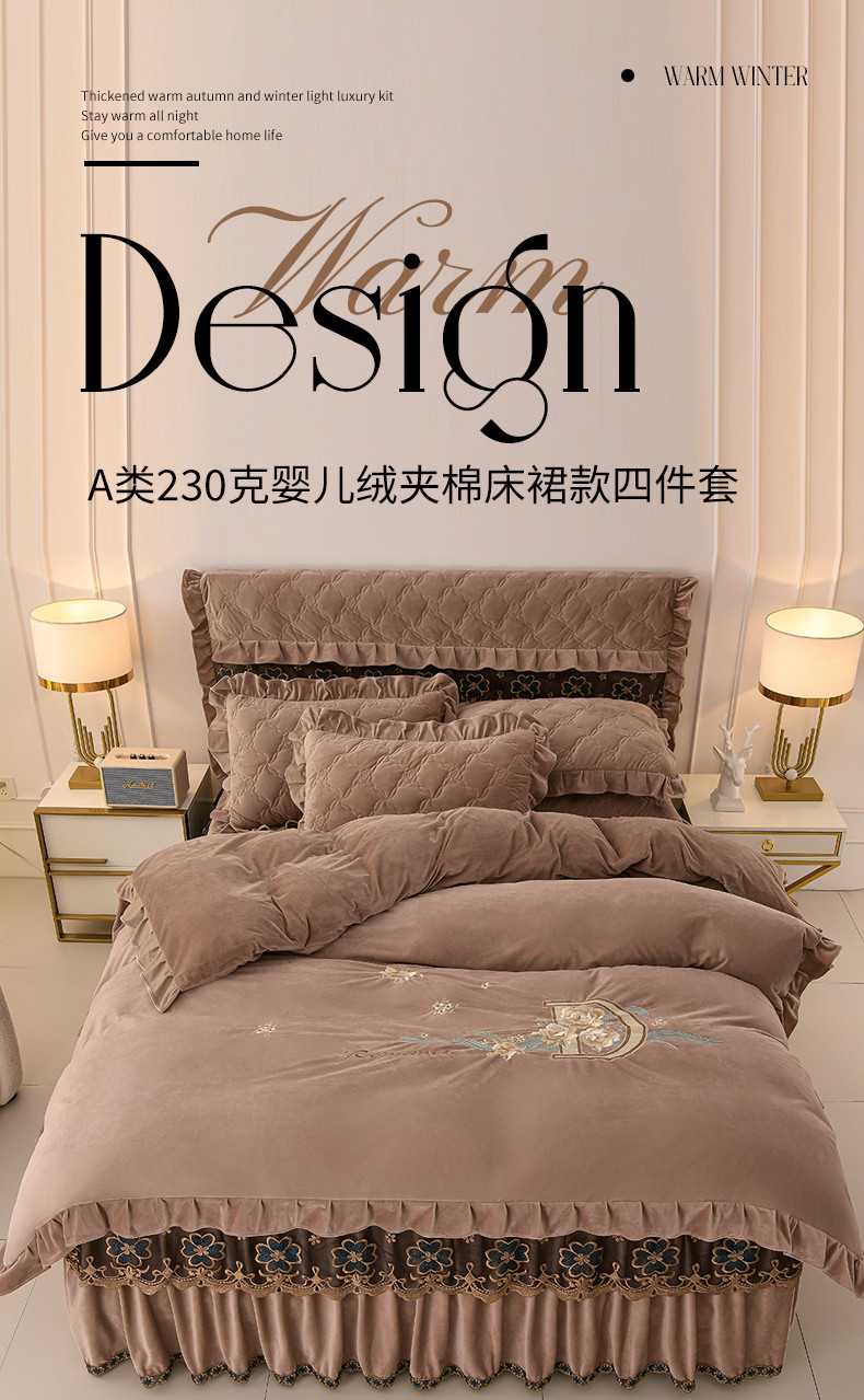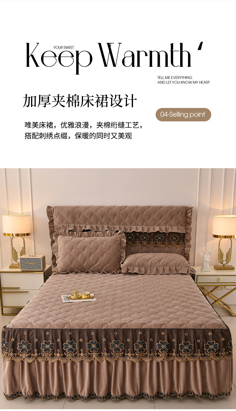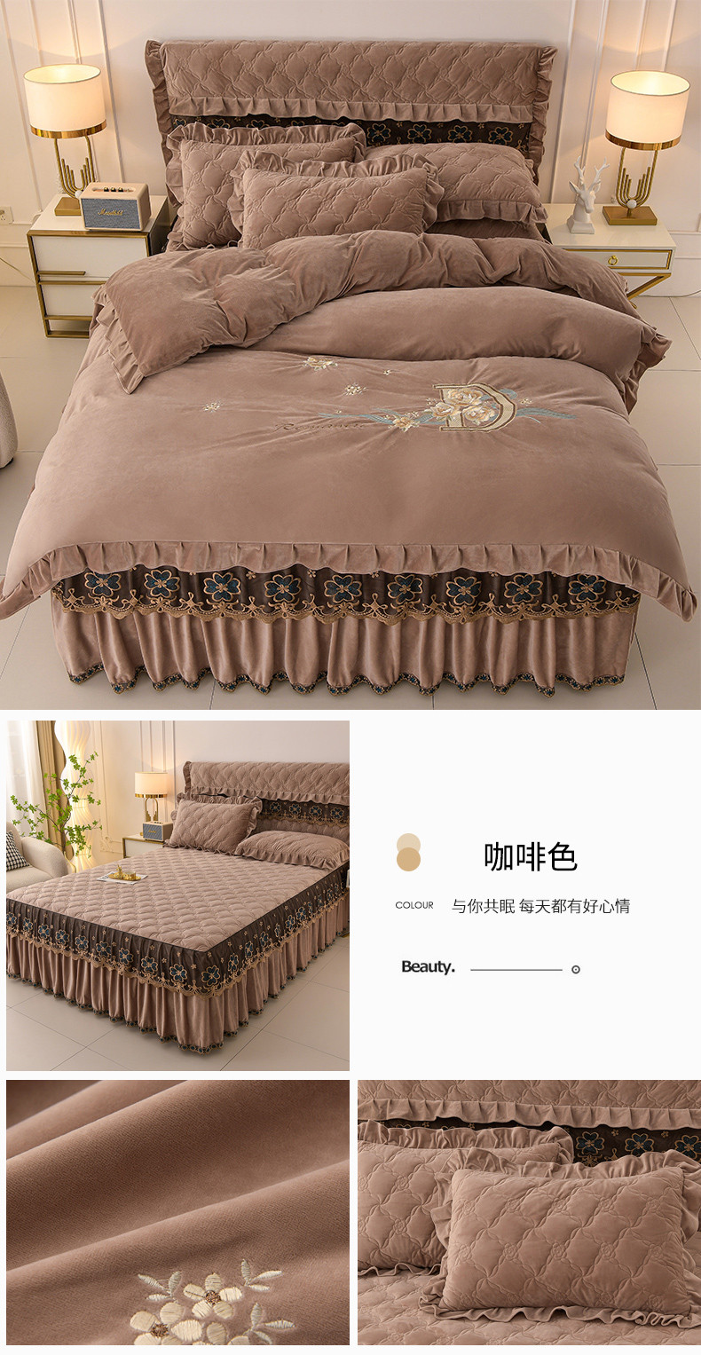 (总)怡源梦 2025新款A类牛奶绒夹棉床裙单件-甜心公主系列,米白色,大红色,粉玉色,灰色,咖色,绿色,紫色