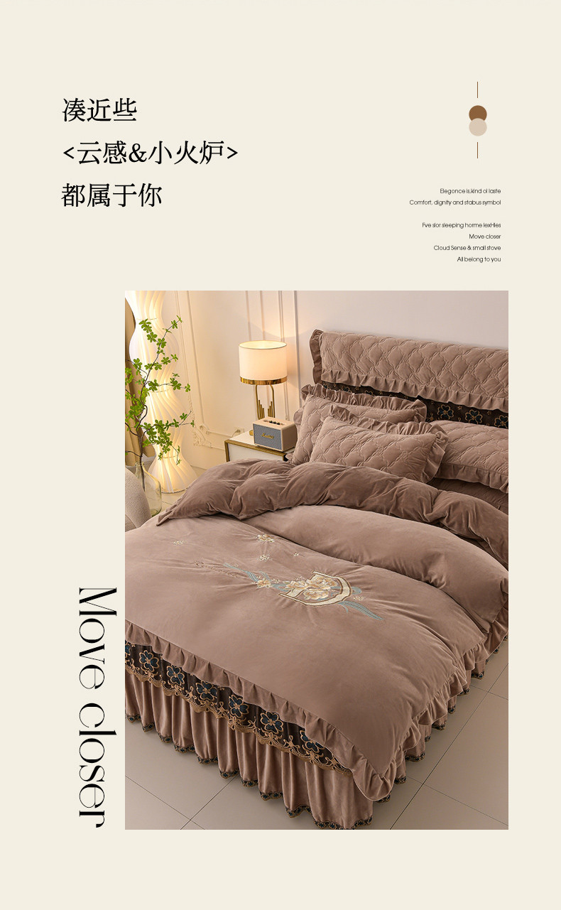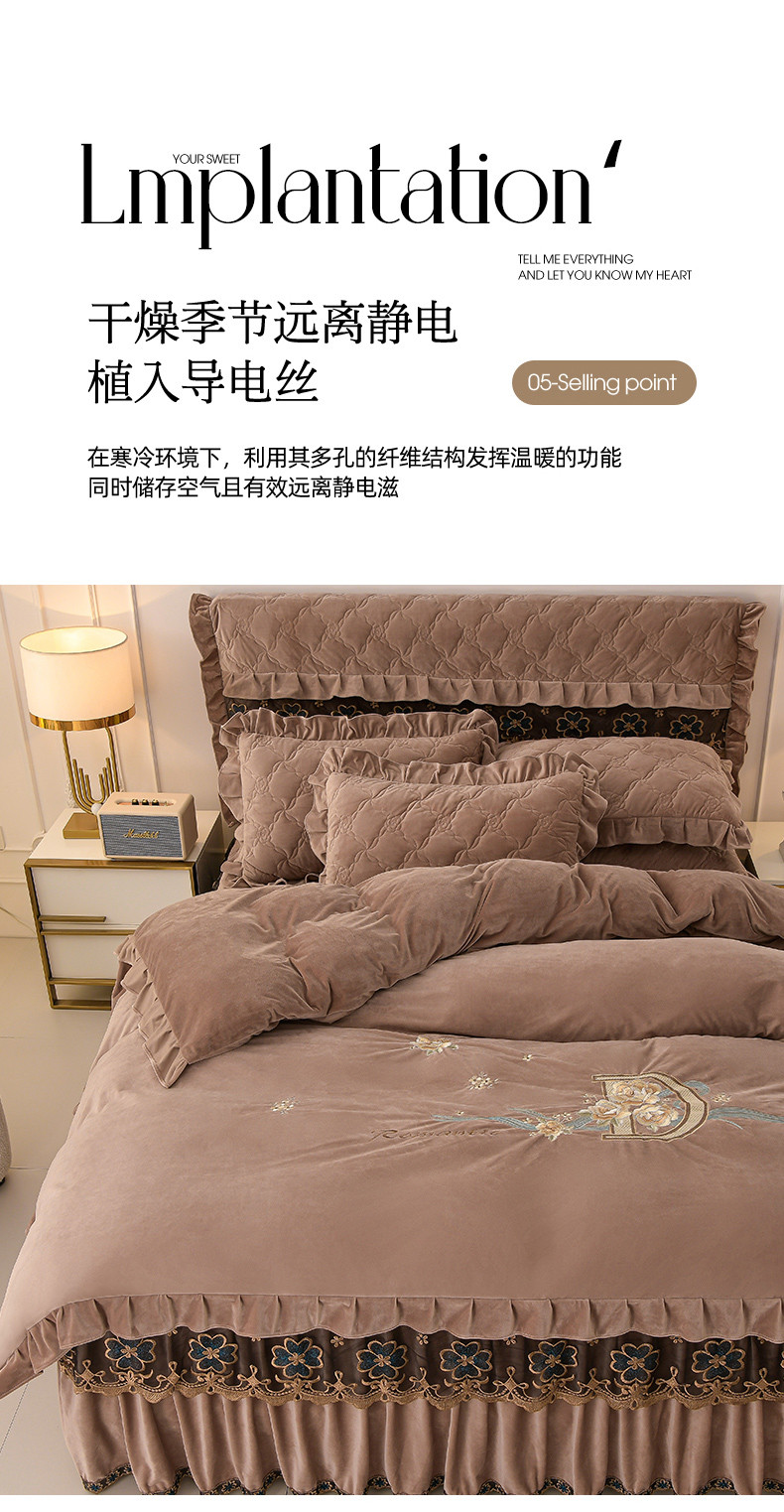 (总)怡源梦 2025新款牛奶绒床裙四件套-甜心公主系列,米白色,大红色,粉玉色,灰色,咖色,绿色,紫色