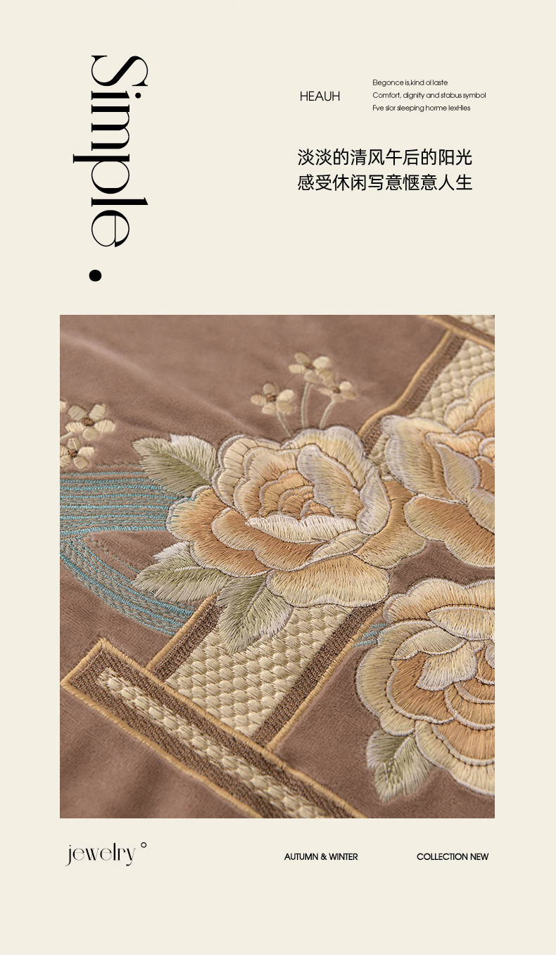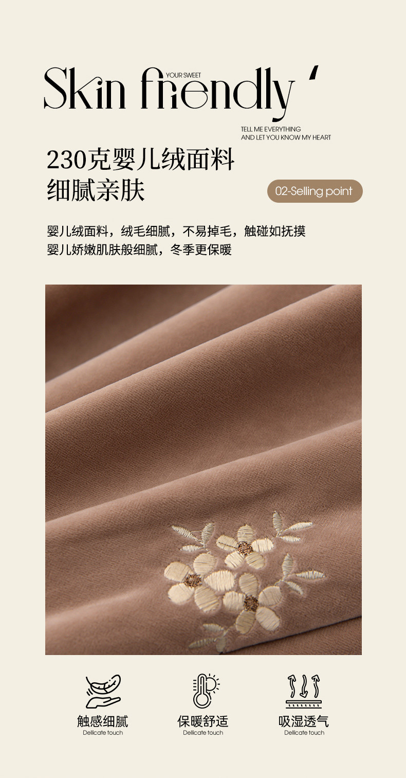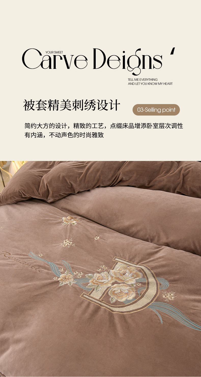 源梦家纺 2023新款A类230克婴儿绒四件套-盛世牡丹 盛世牡丹-咖啡色
