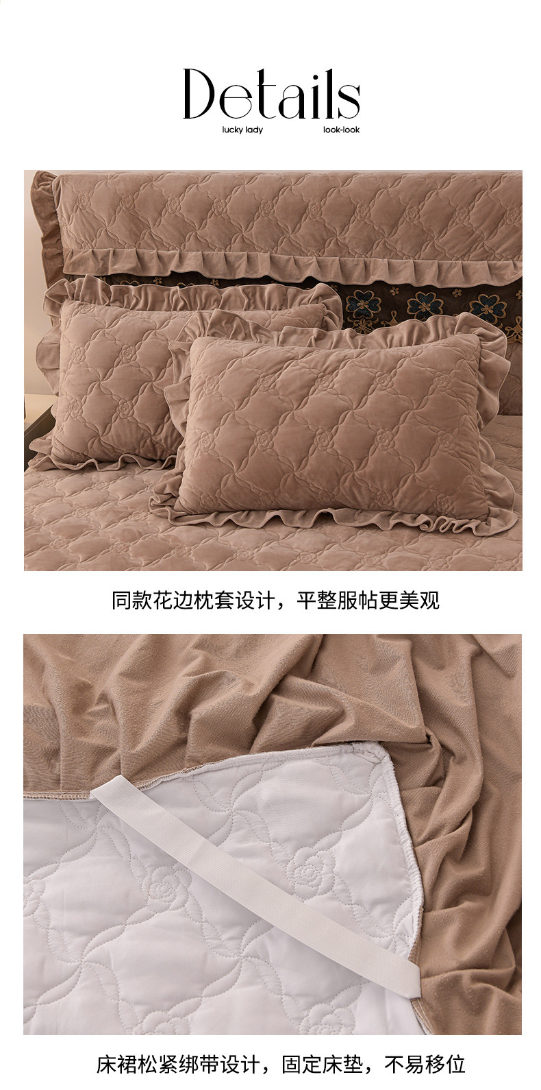 (总)怡源梦 2025新款A类牛奶绒夹棉床笠三件套-甜心公主系列,灰色,咖色,大红色,粉玉色,绿色,米白色,紫色