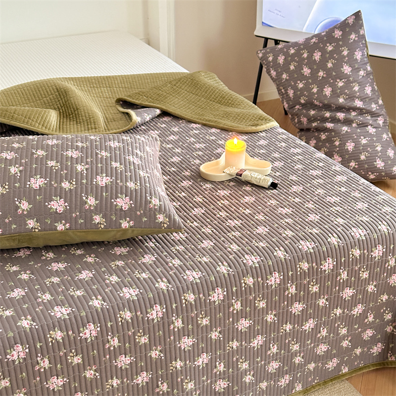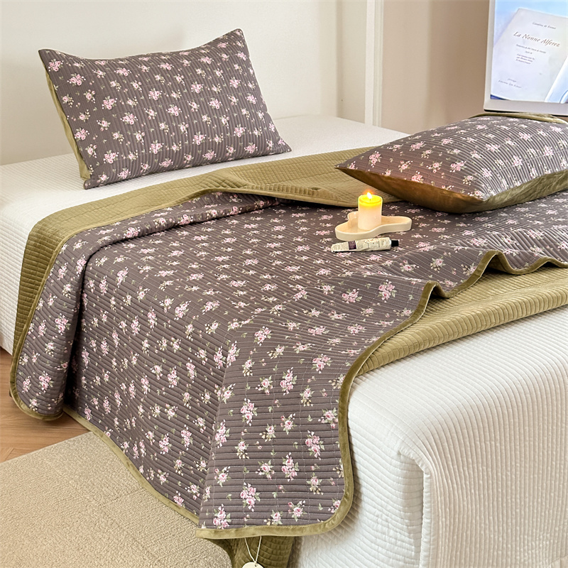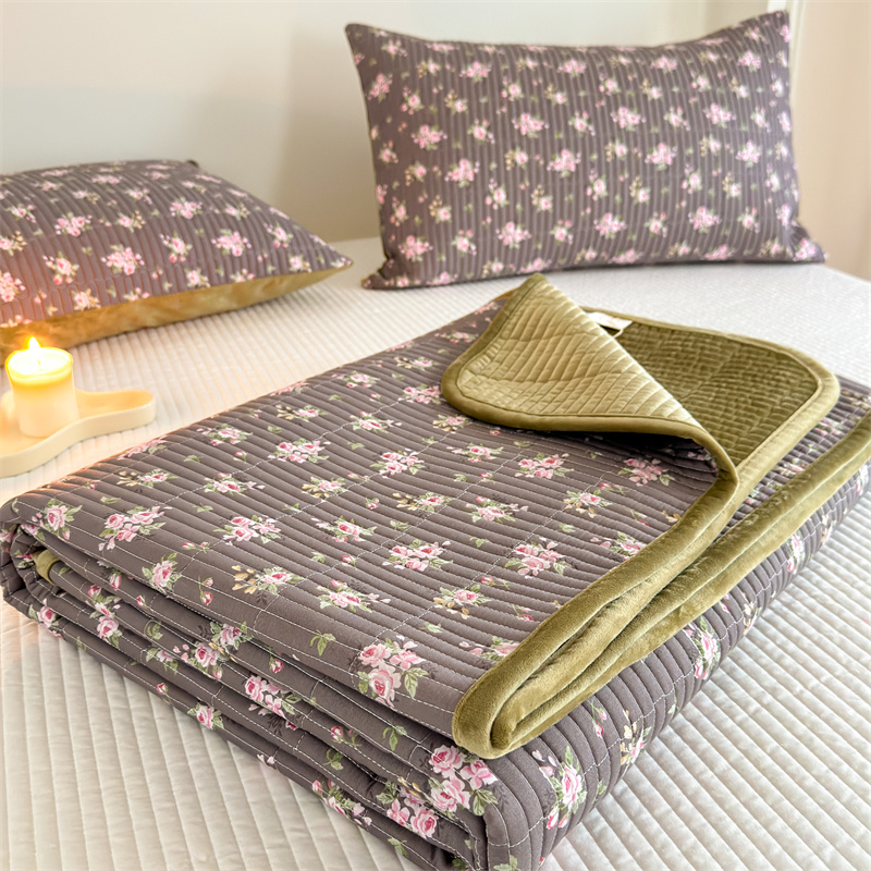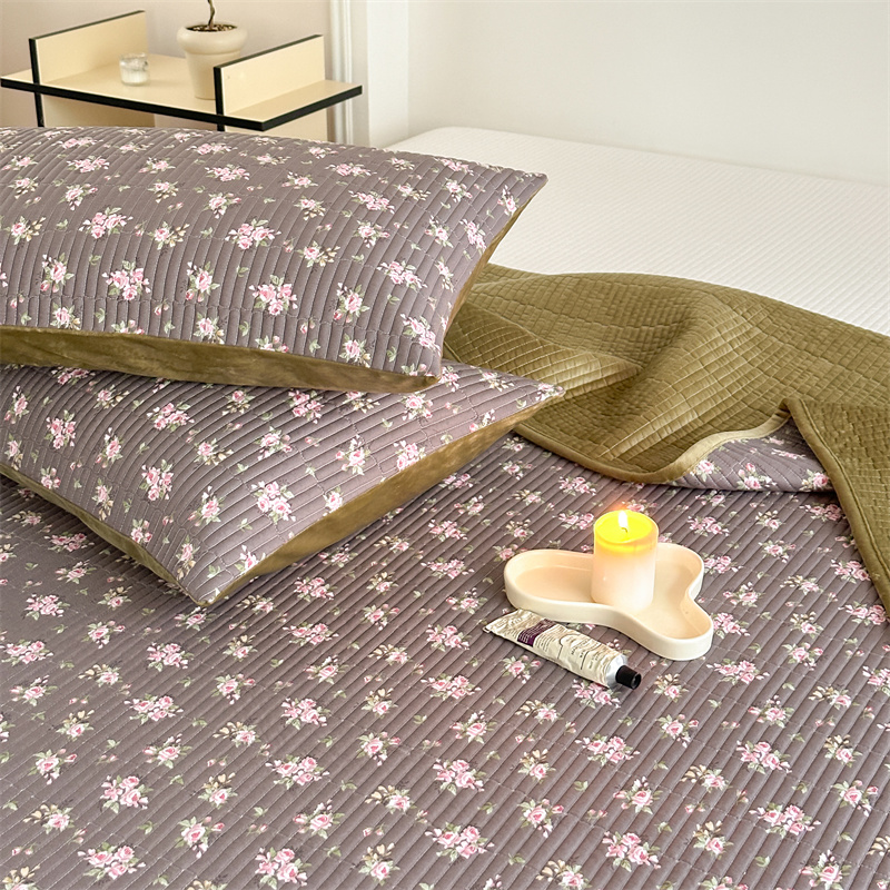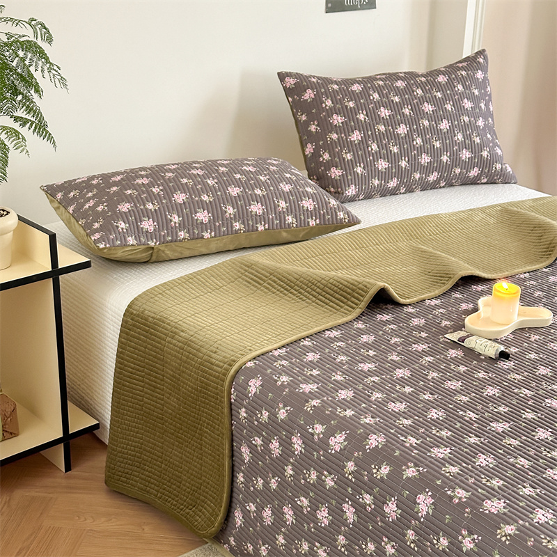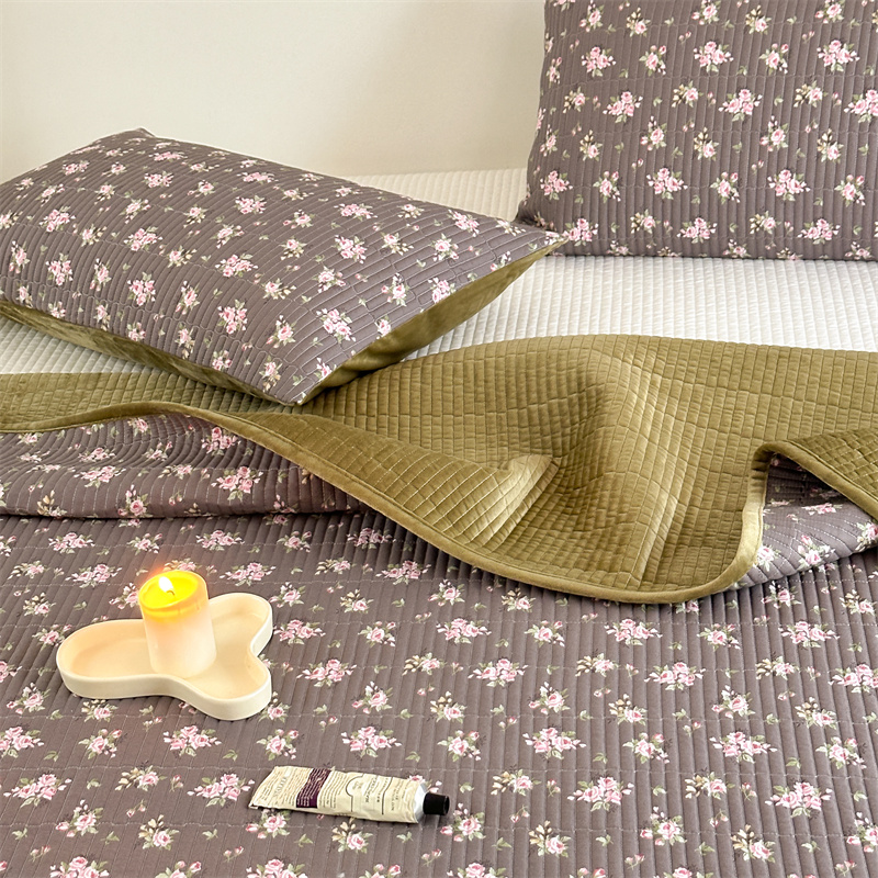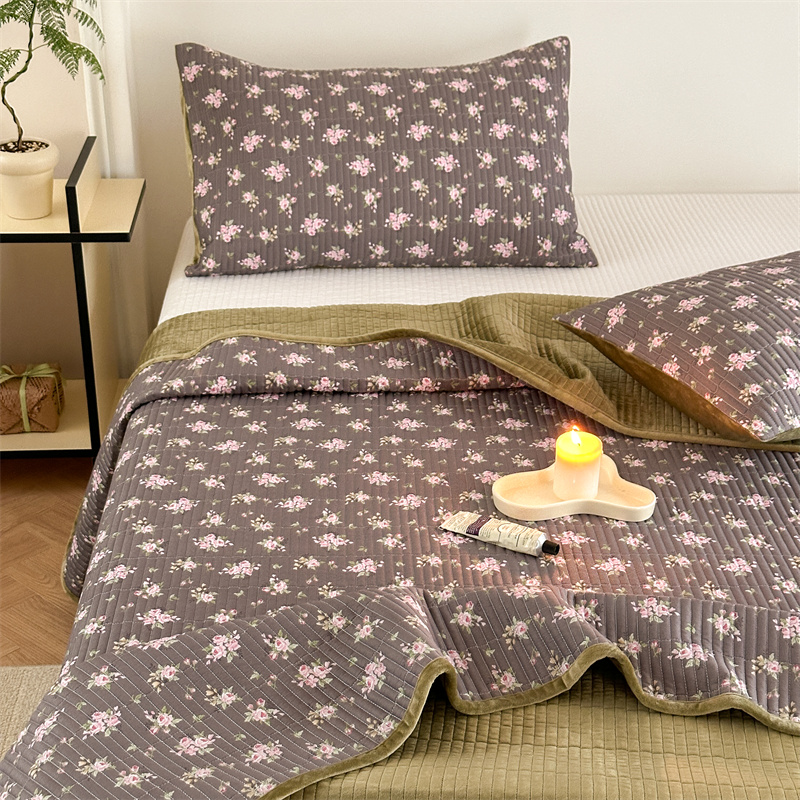 星期八 2023新款棉加绒床盖三件套 紫苏