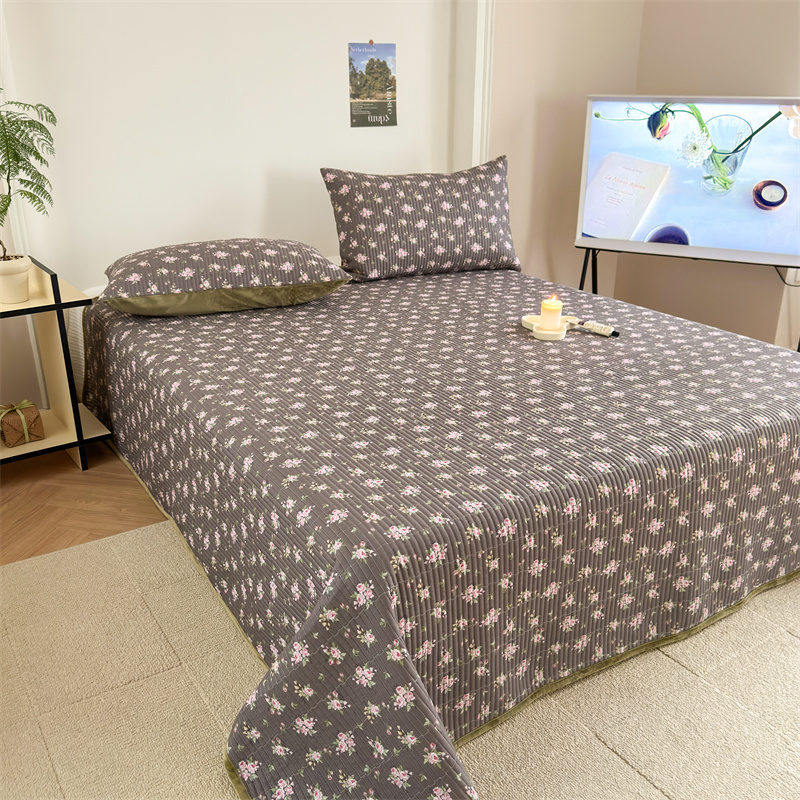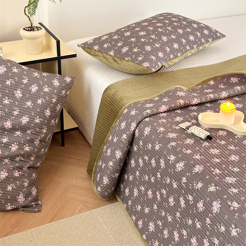 商品名称:星期八 2023新款棉加绒床盖三件套 紫苏