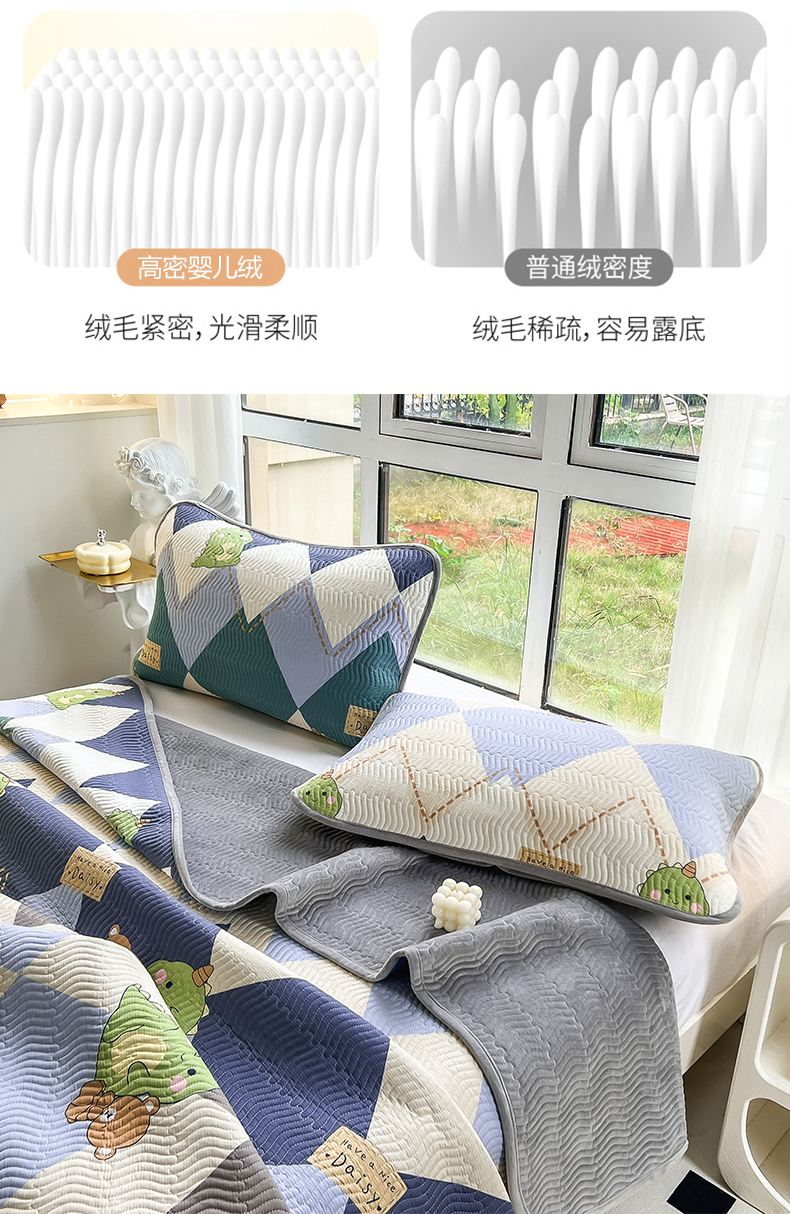 2024新款40支棉加绒单床盖三件套双面可用全棉加厚婴儿绒 淘淘龙