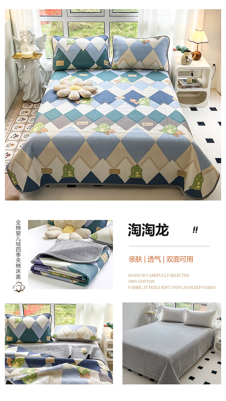 当前位置: 91家纺网 > 商品网购 > 床上用品 > 床盖 > 2024新款40支棉加绒单床盖三件套双面可用全棉加厚婴儿绒 淘淘龙