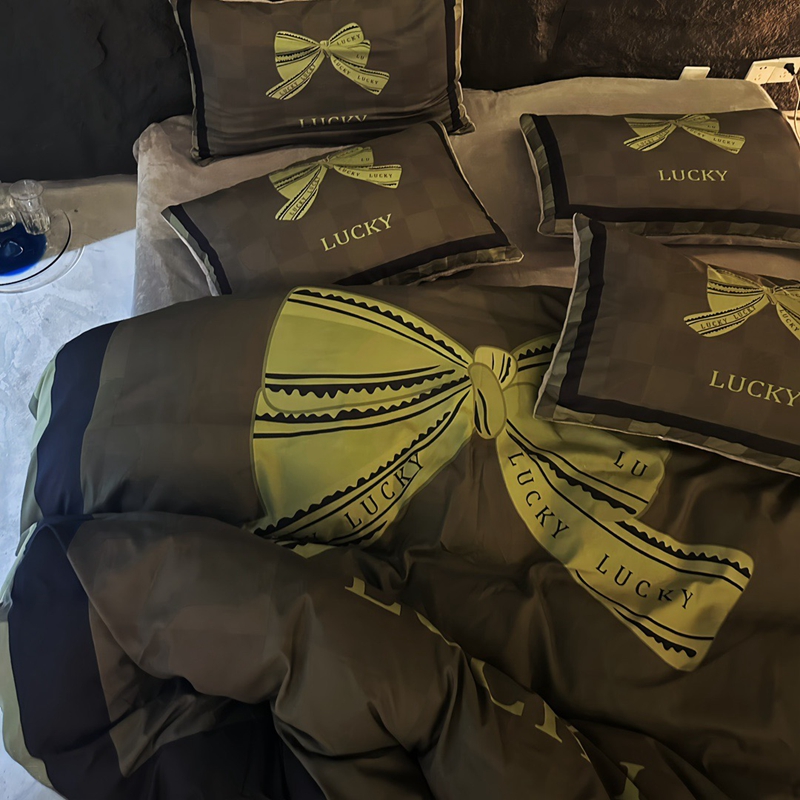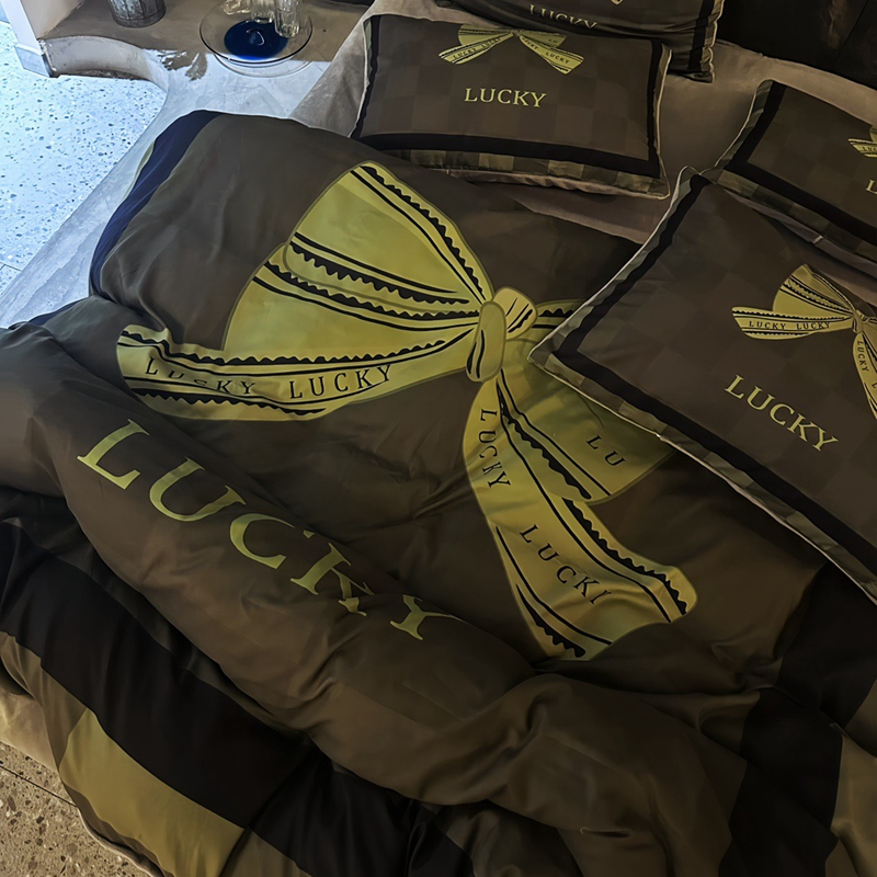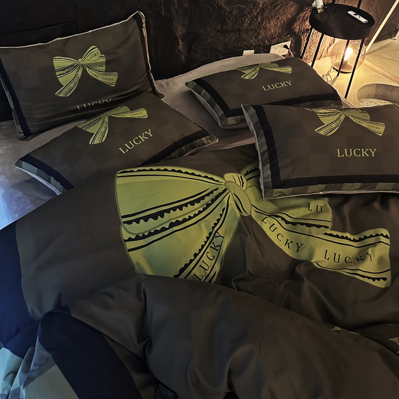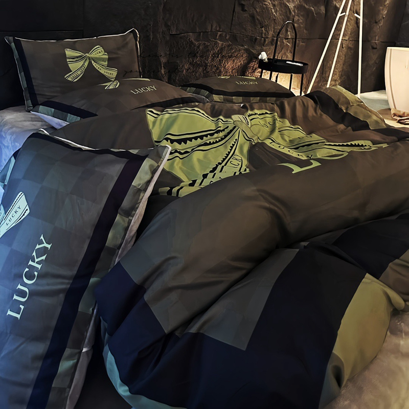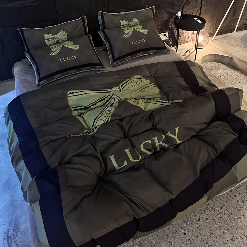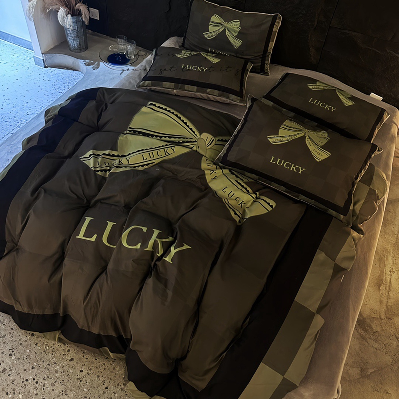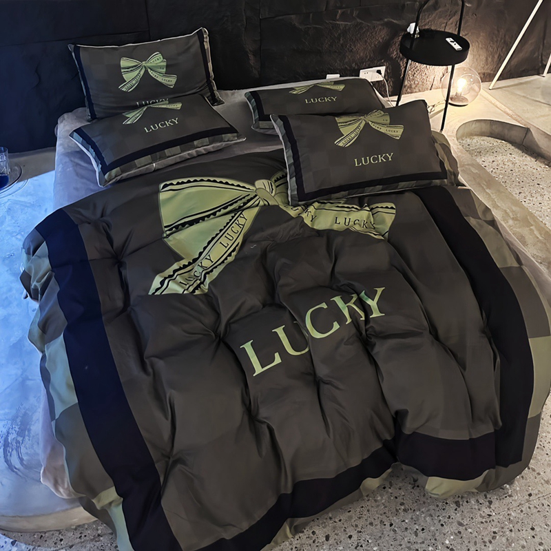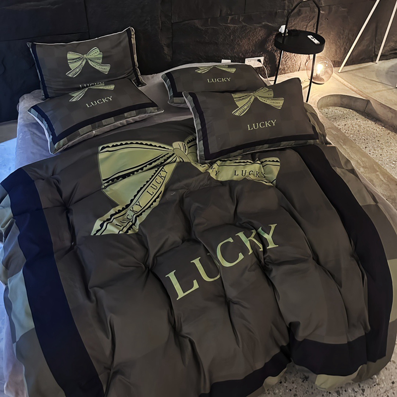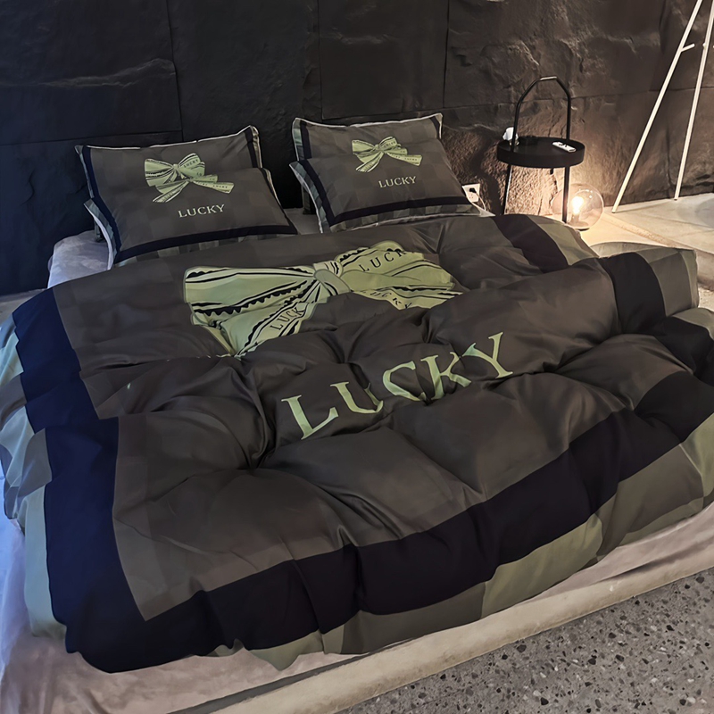 色鬼 2023新款轻奢潮牌大牌风棉加绒四件套印花牛奶绒四件套 lucky绿