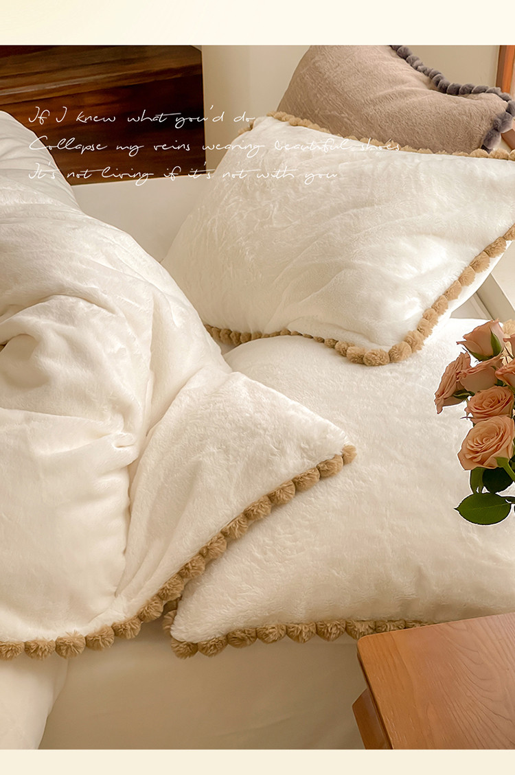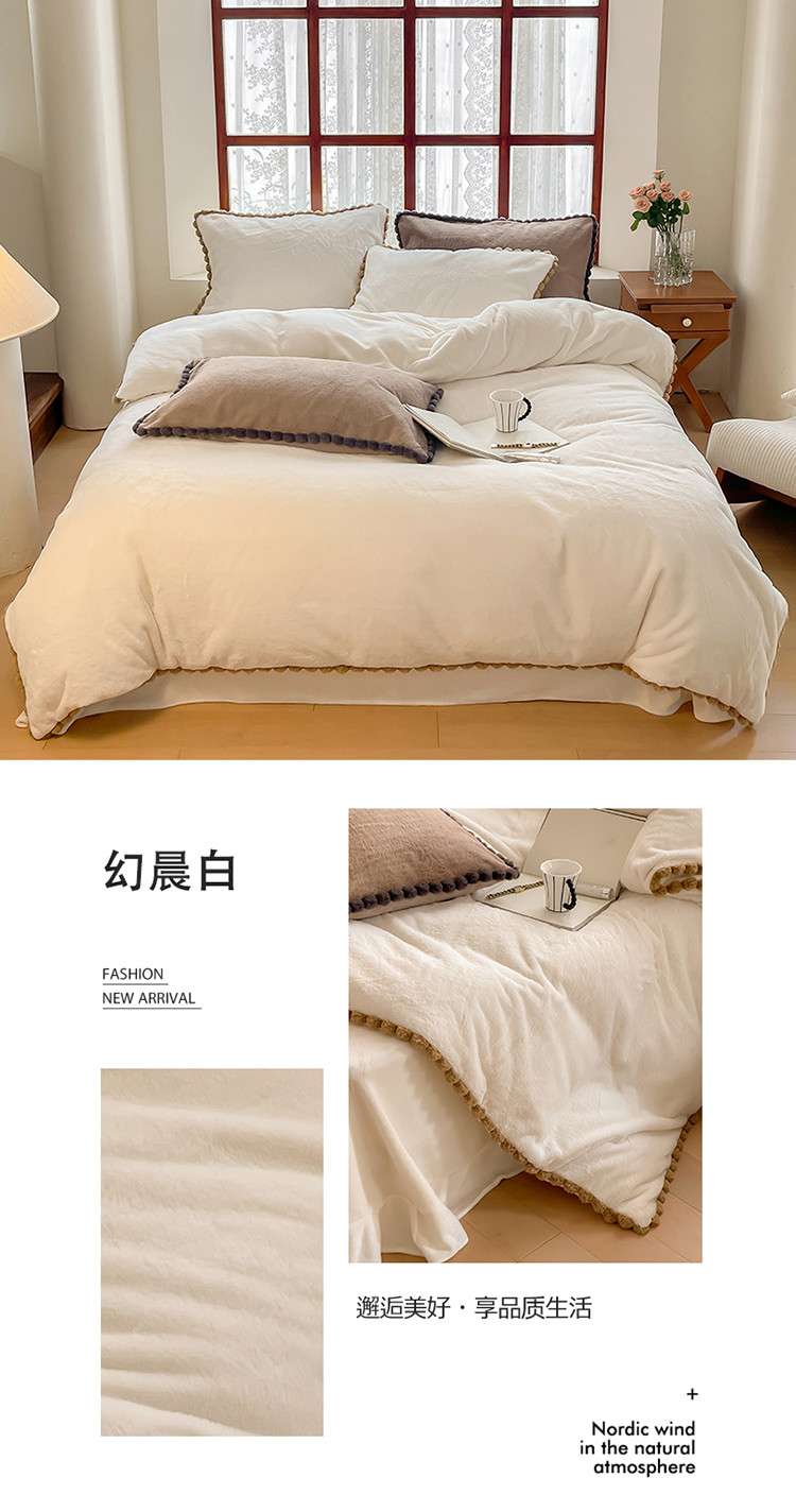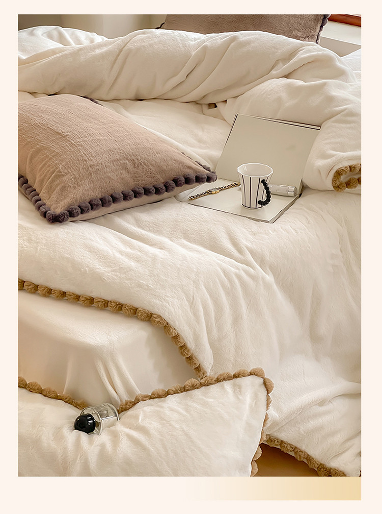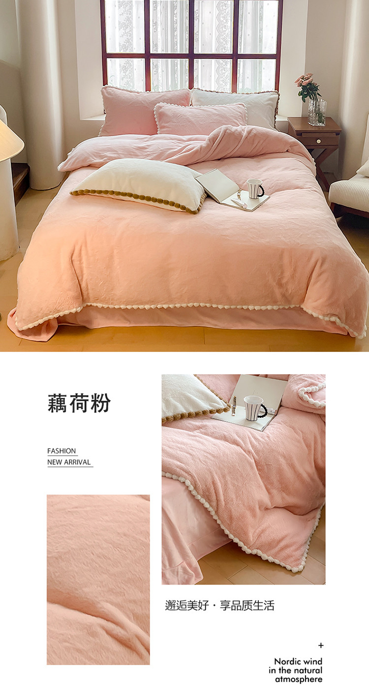 (总)名品优仓 2023新款兔绒边带球球款纯色系列四件套-兔绒球球