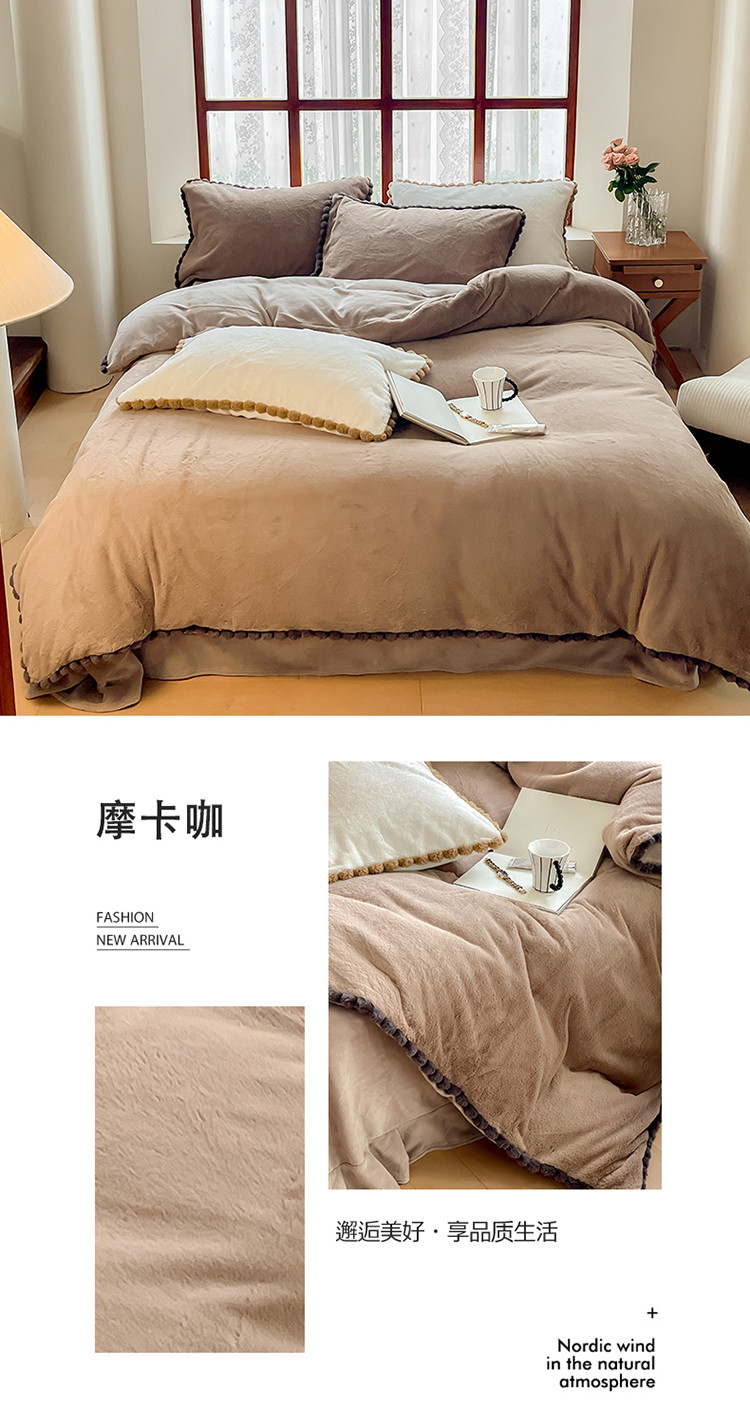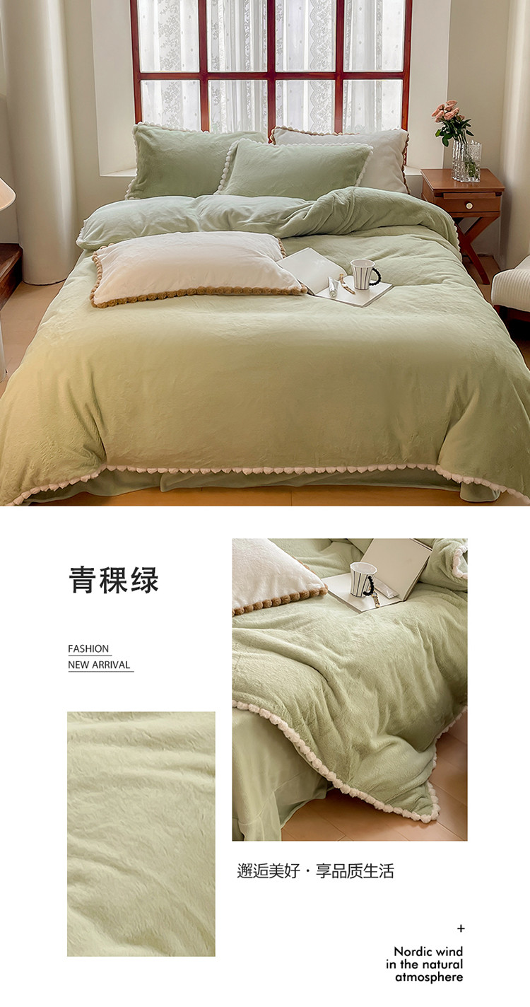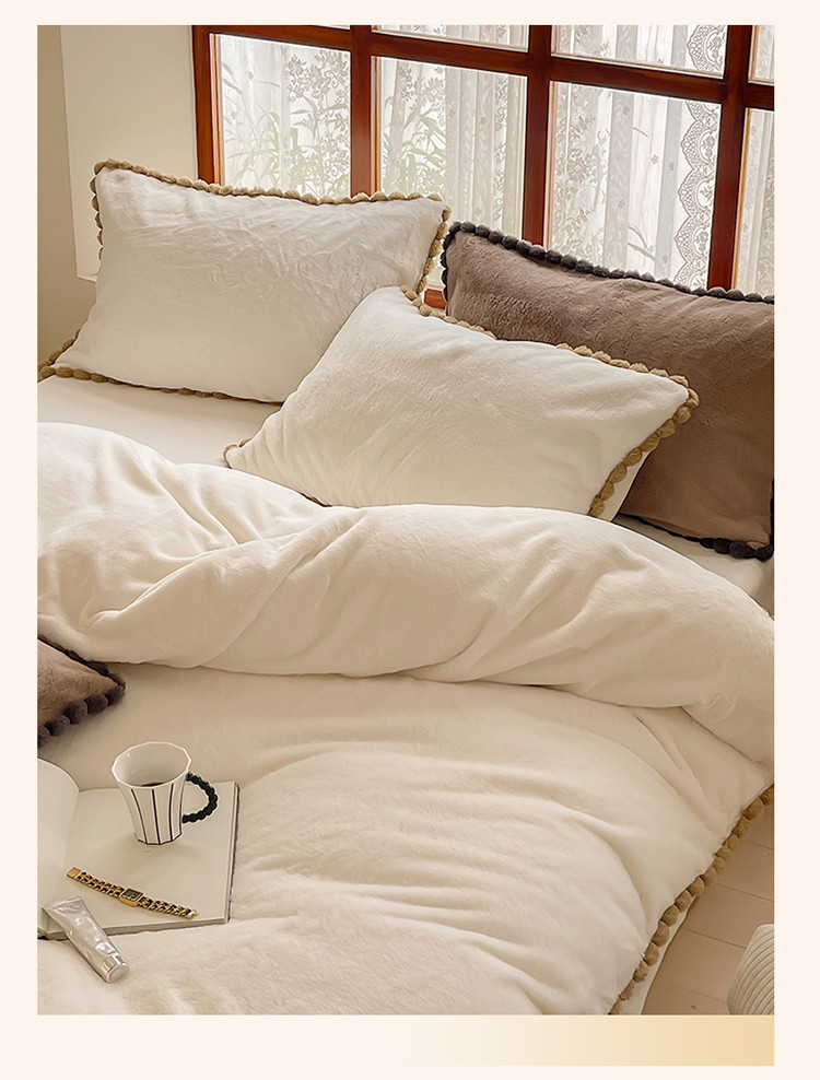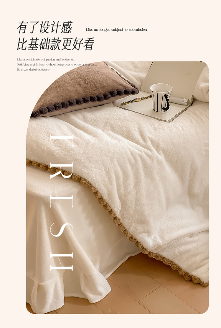 (总)名品优仓 2023新款兔绒边带球球款纯色系列四件套-兔绒球球