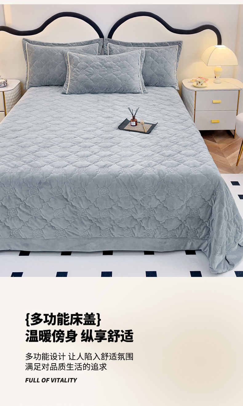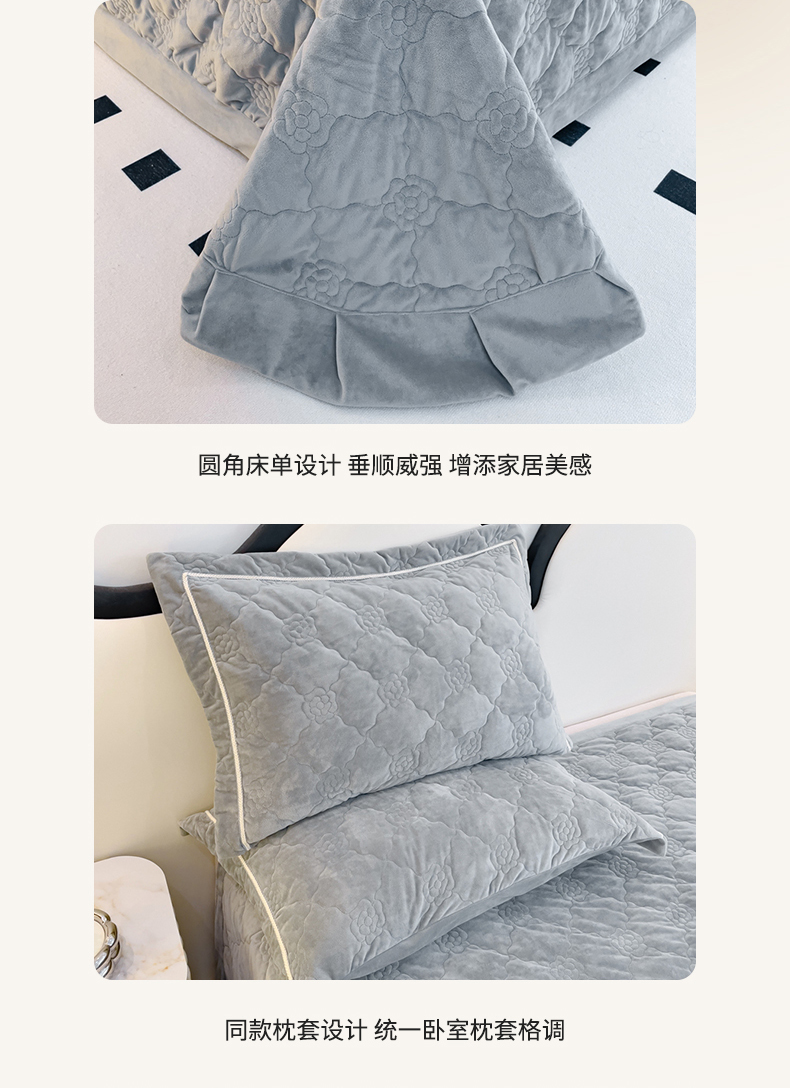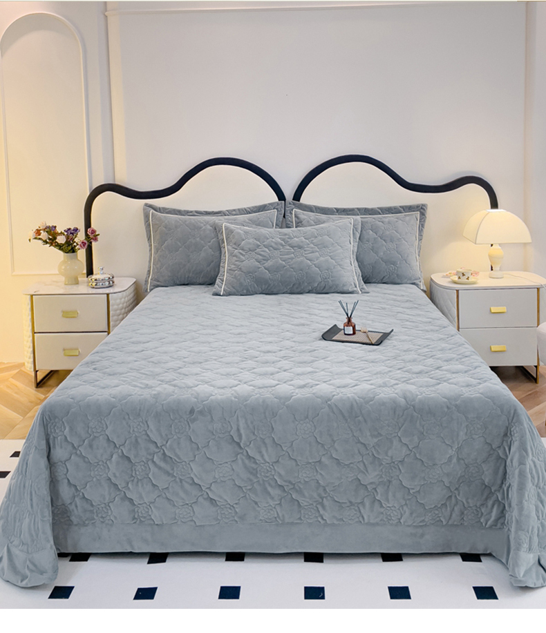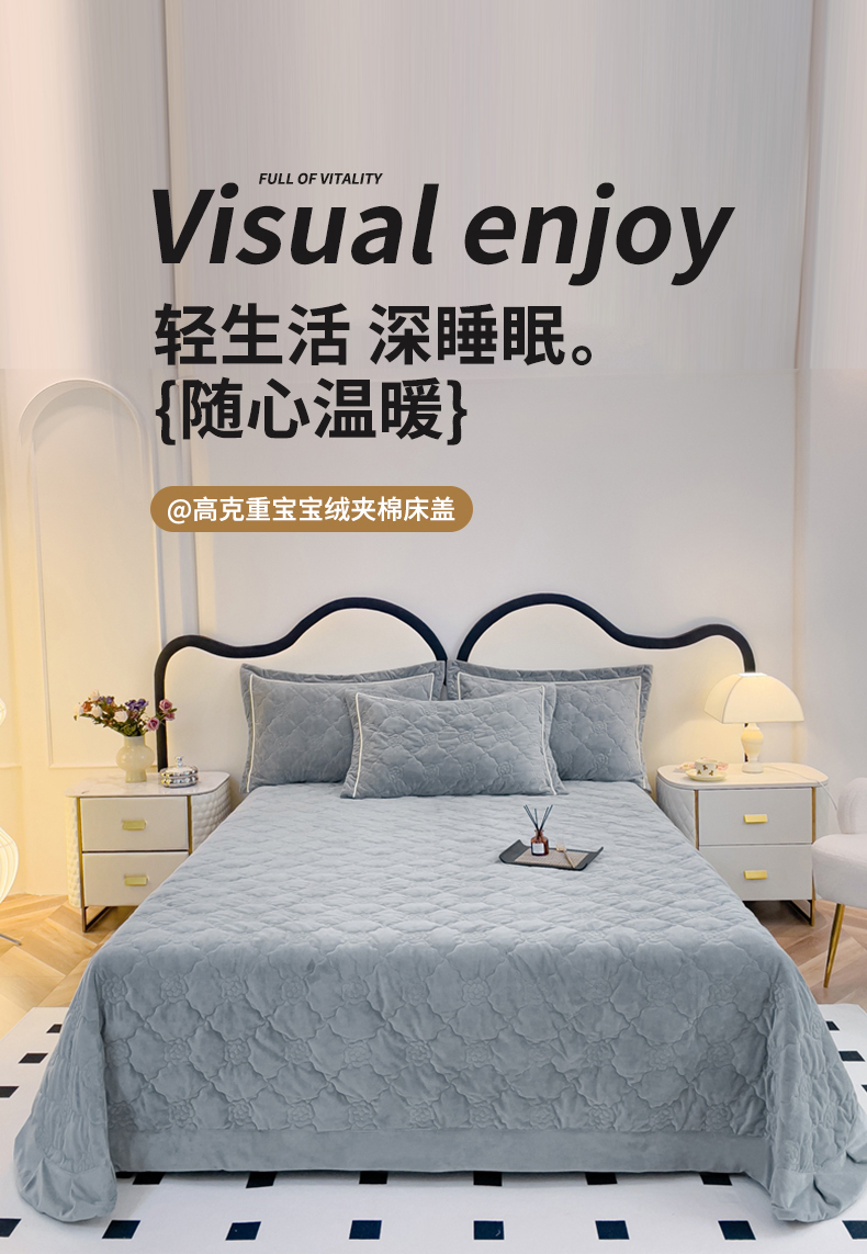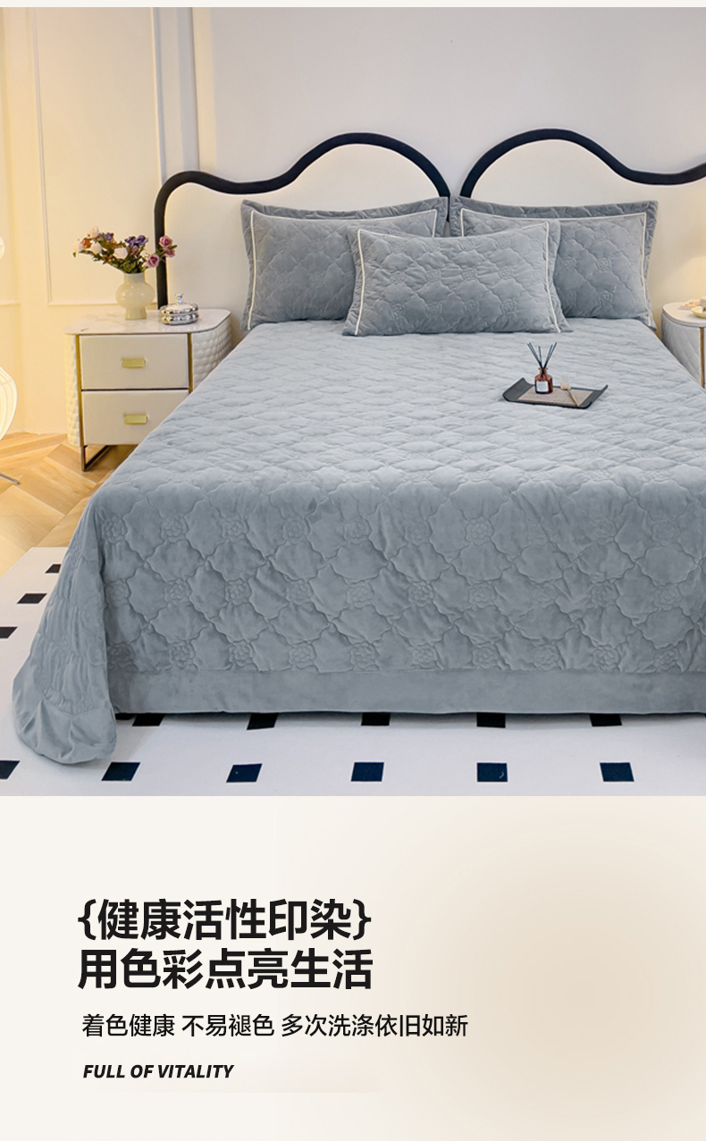 优乐家纺 2025新款高克重宝宝绒夹棉床盖系列三件套 爱丽丝-贵族灰