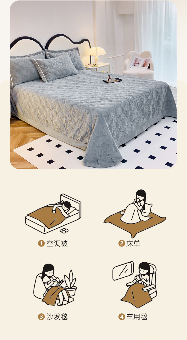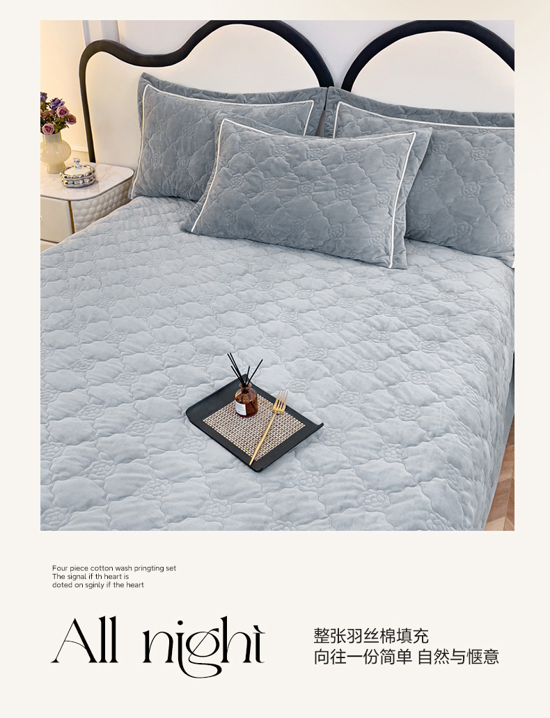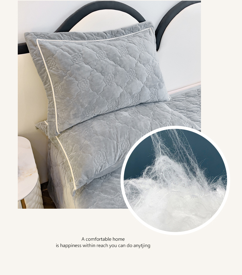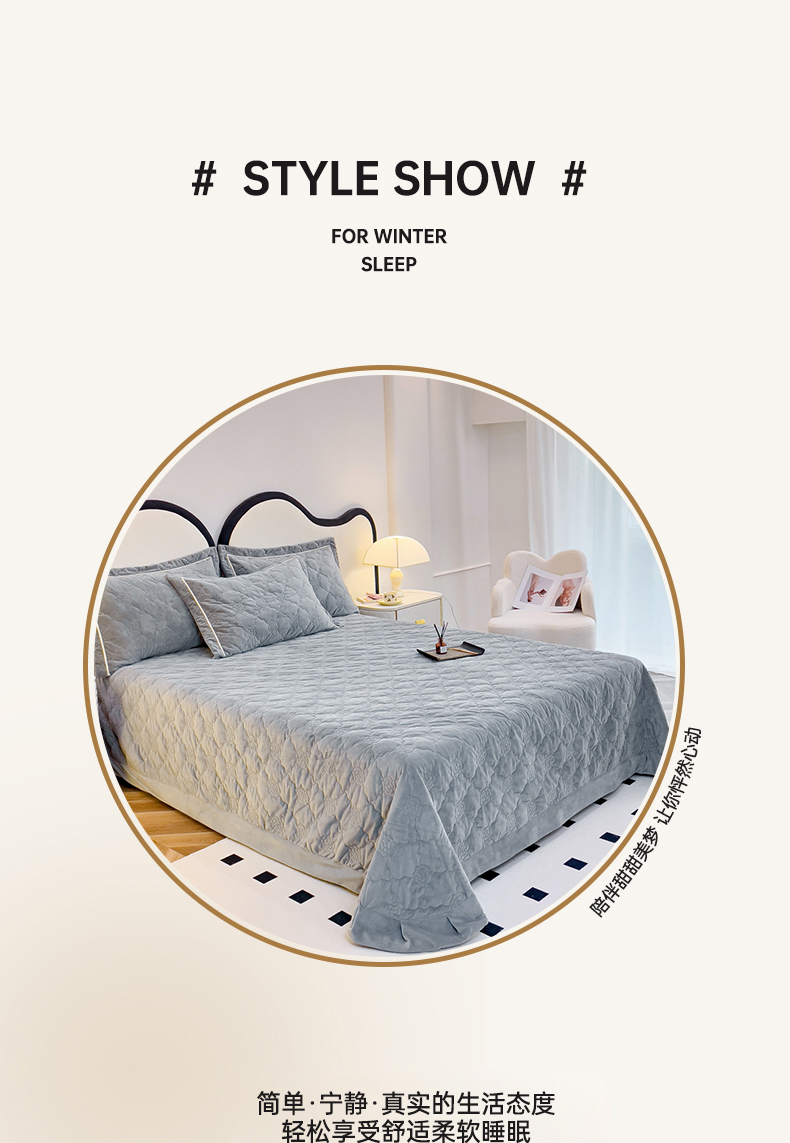 优乐家纺 2025新款高克重宝宝绒夹棉床盖系列三件套 爱丽丝-贵族灰