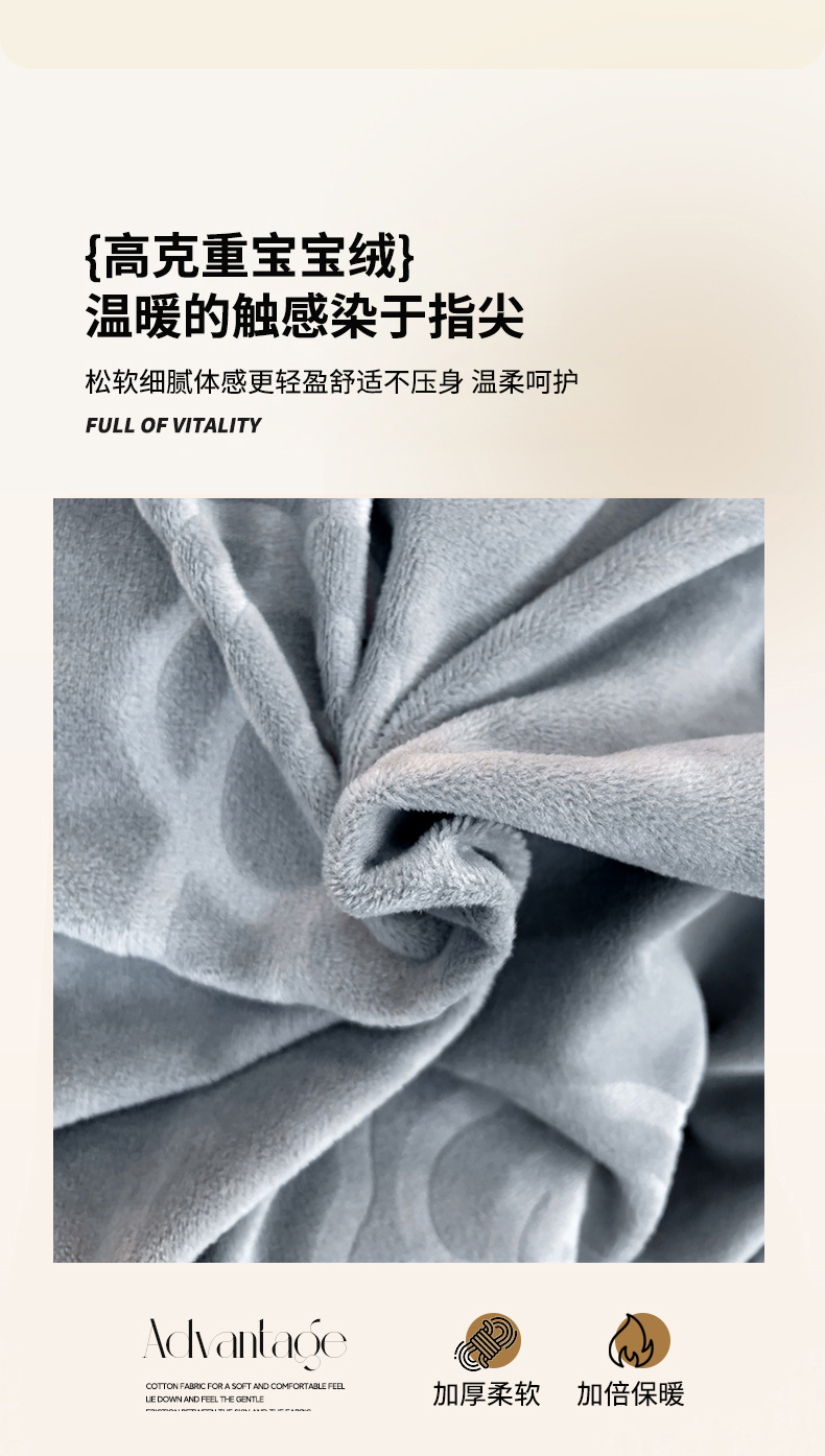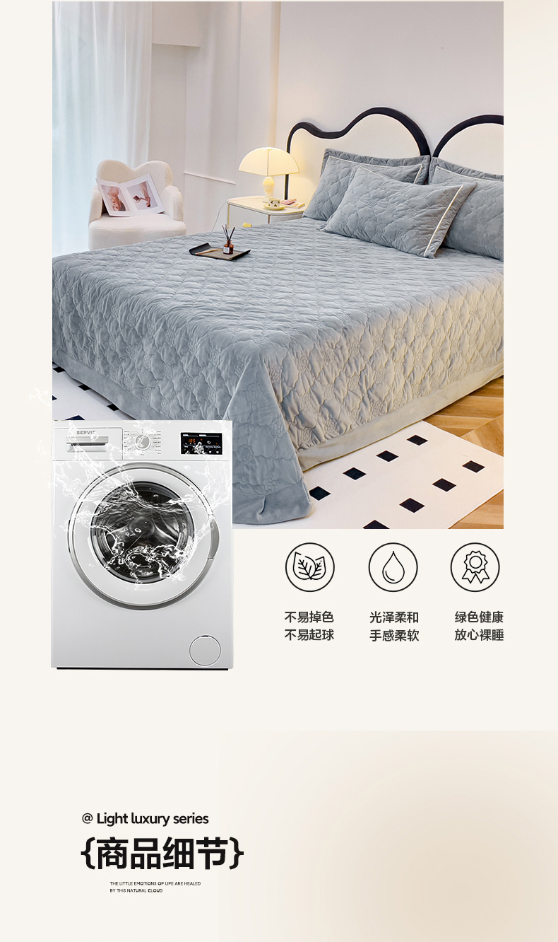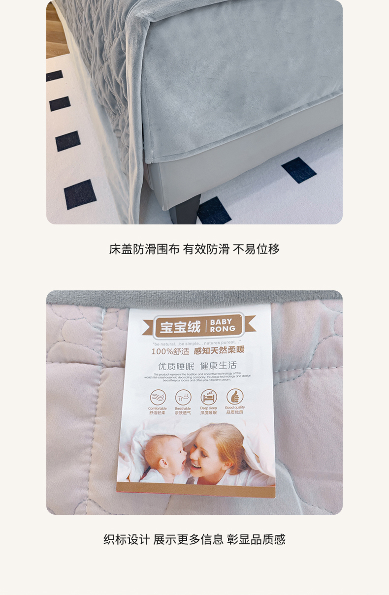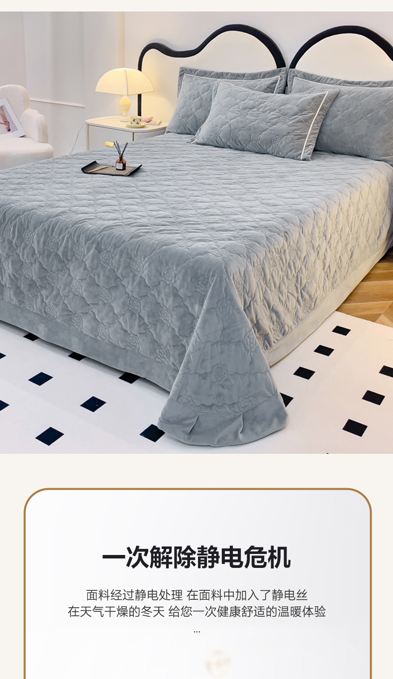 商品名称:优乐家纺 2025新款高克重宝宝绒夹棉床盖系列三件套 爱丽丝-贵族灰