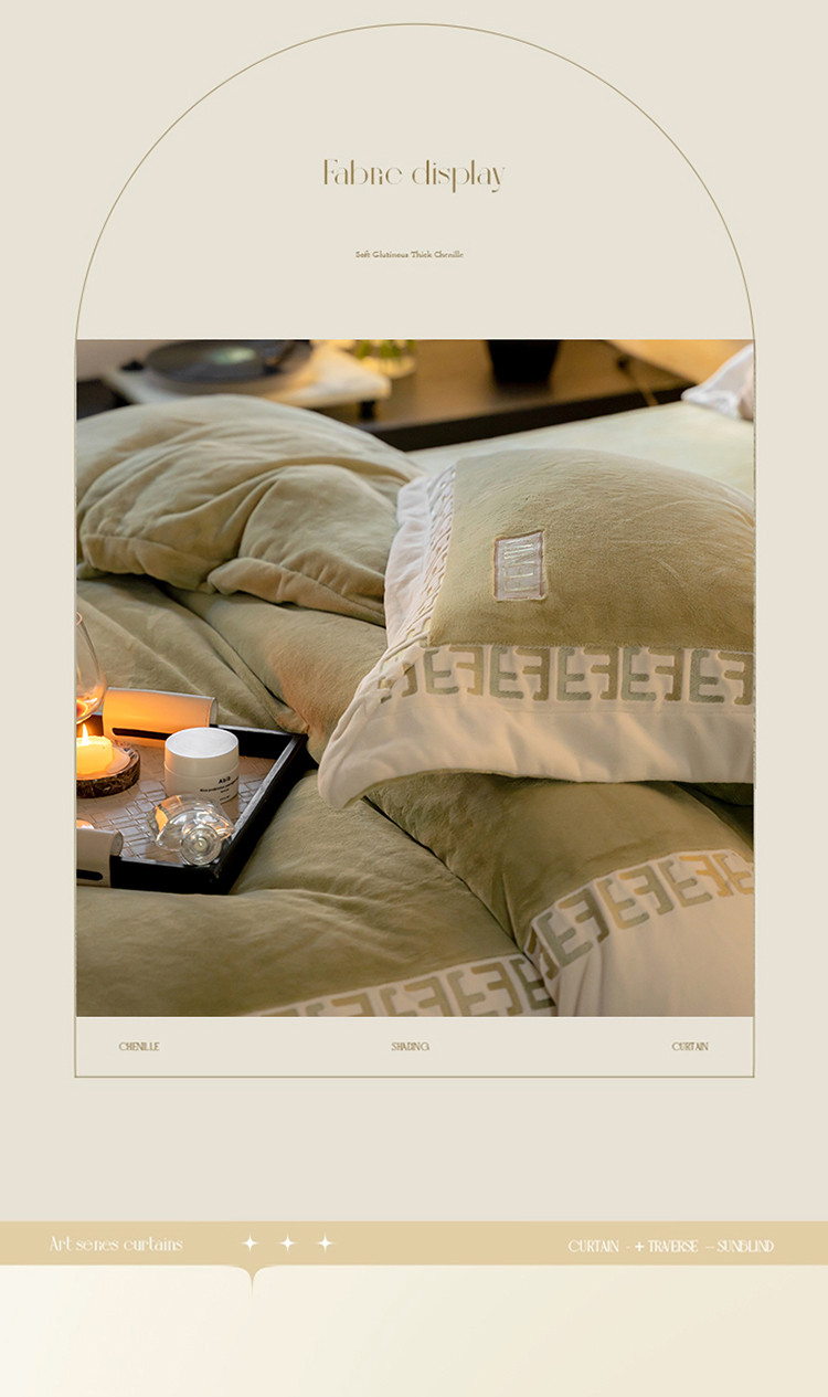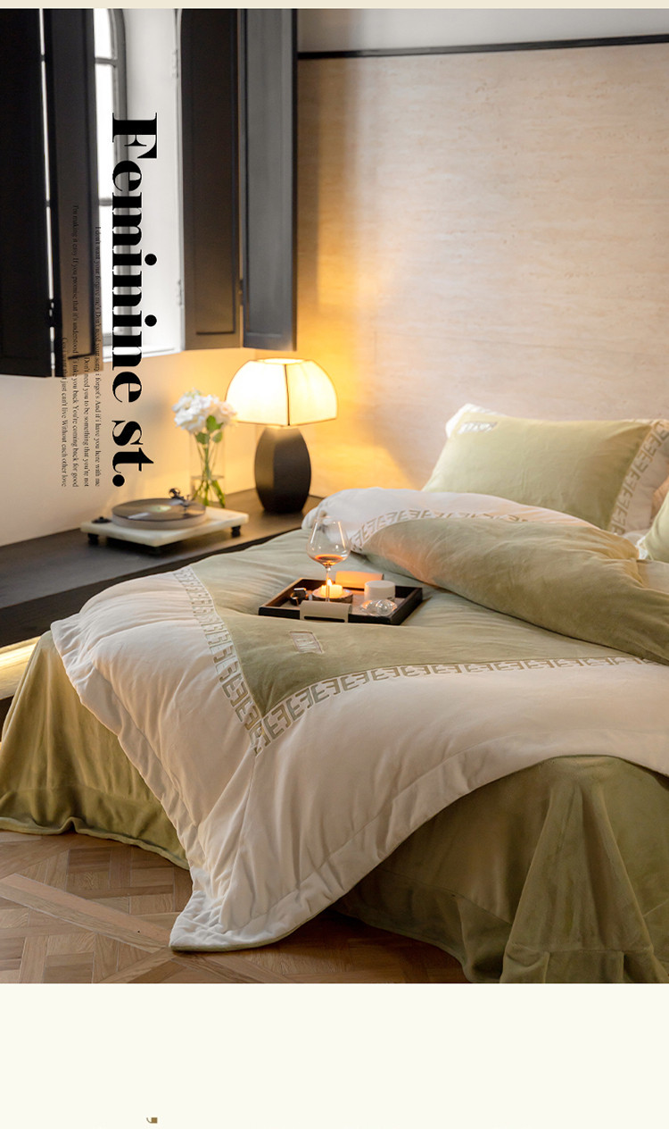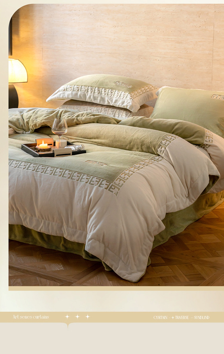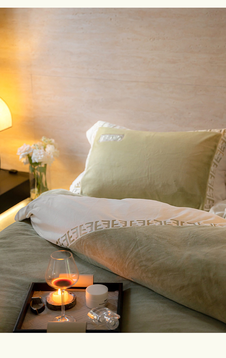 名品优仓 2023新款高克重230克牛奶绒绣花款四件套-玛丽 玛丽-抹茶绿