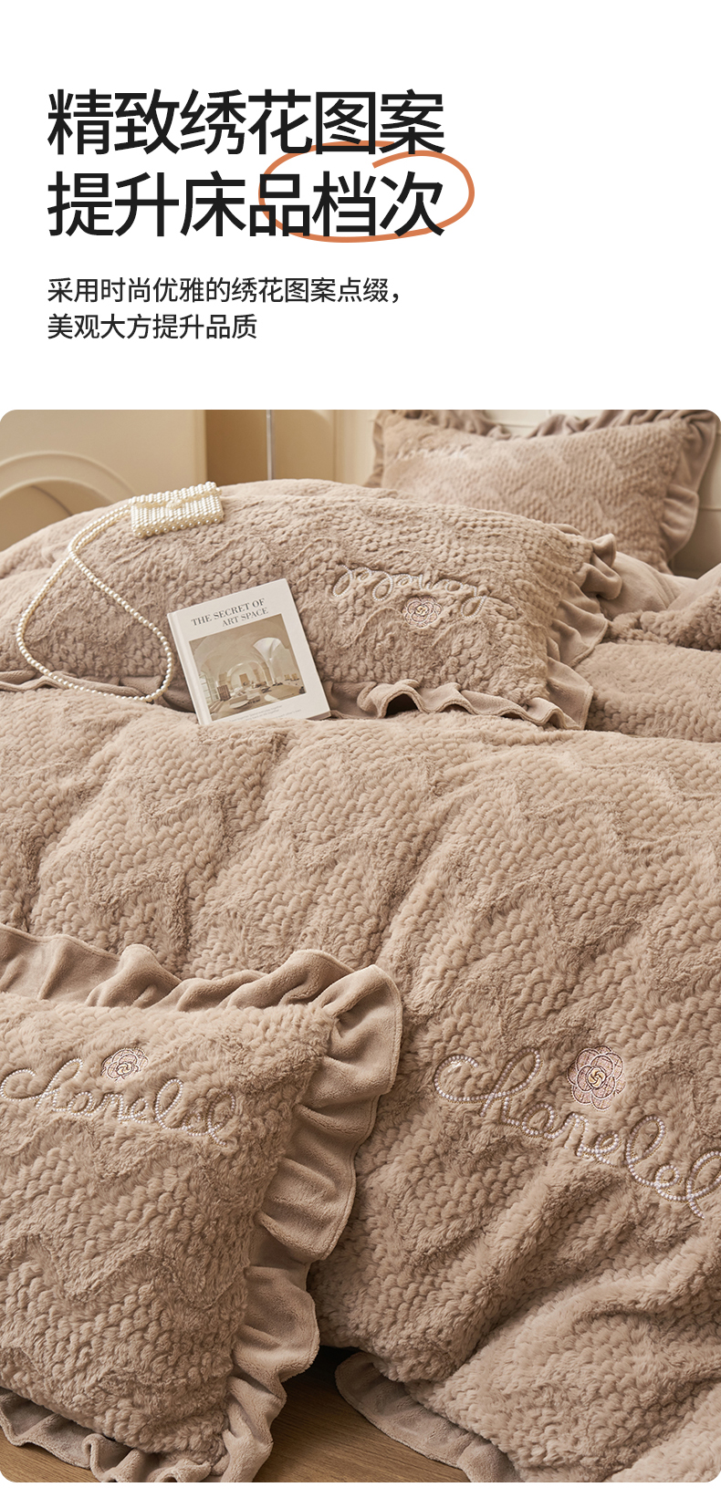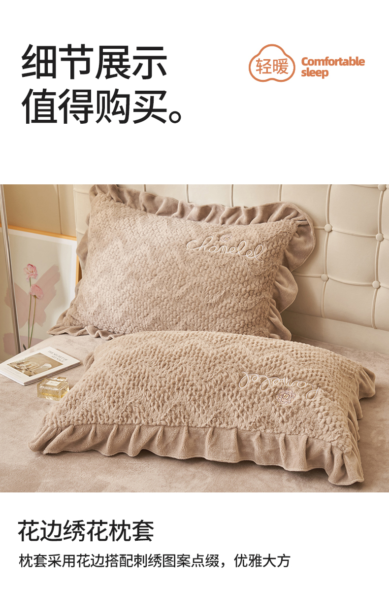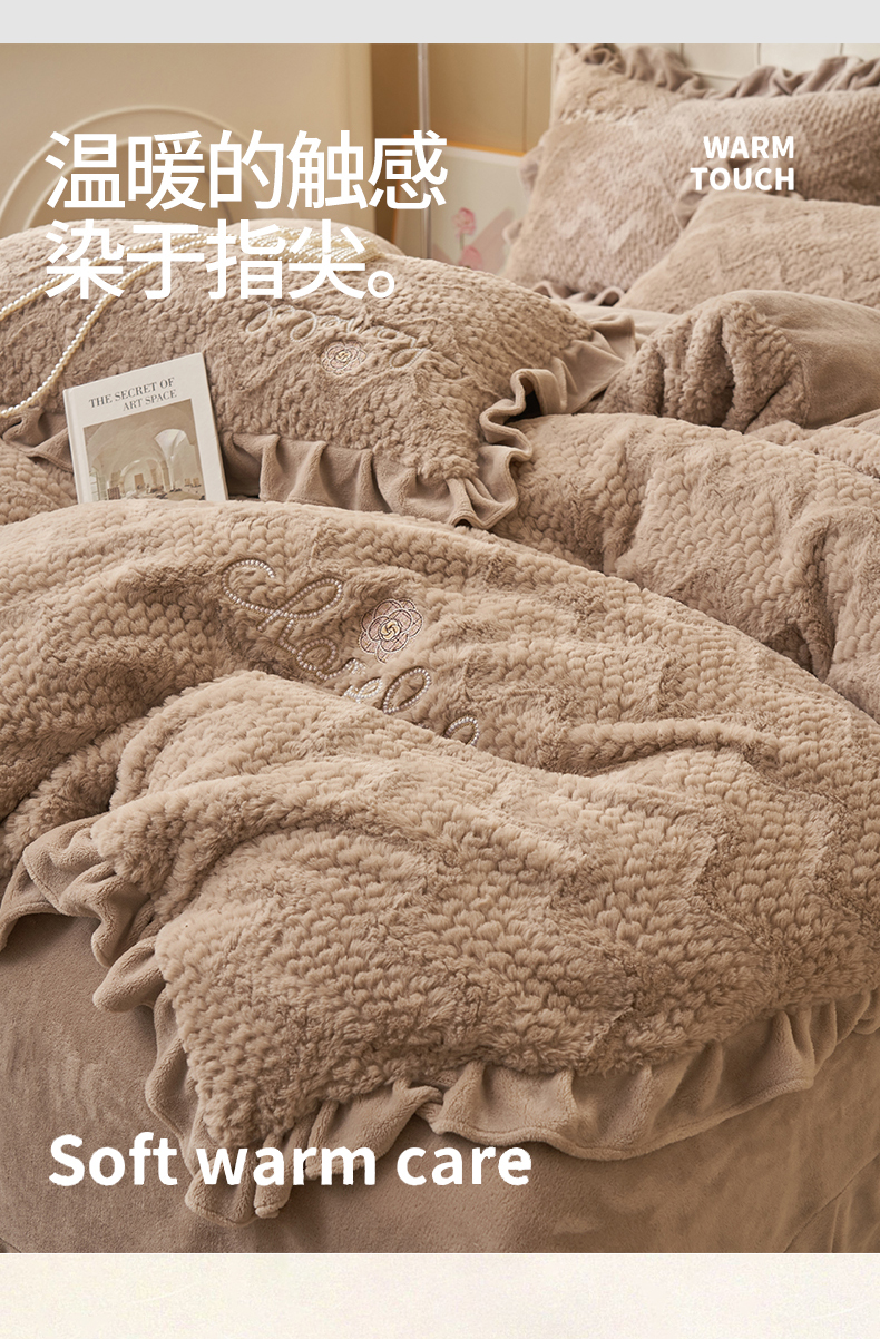 恒爱家纺 2023新款兔毛绒绣花四件套 波浪款-浅棕