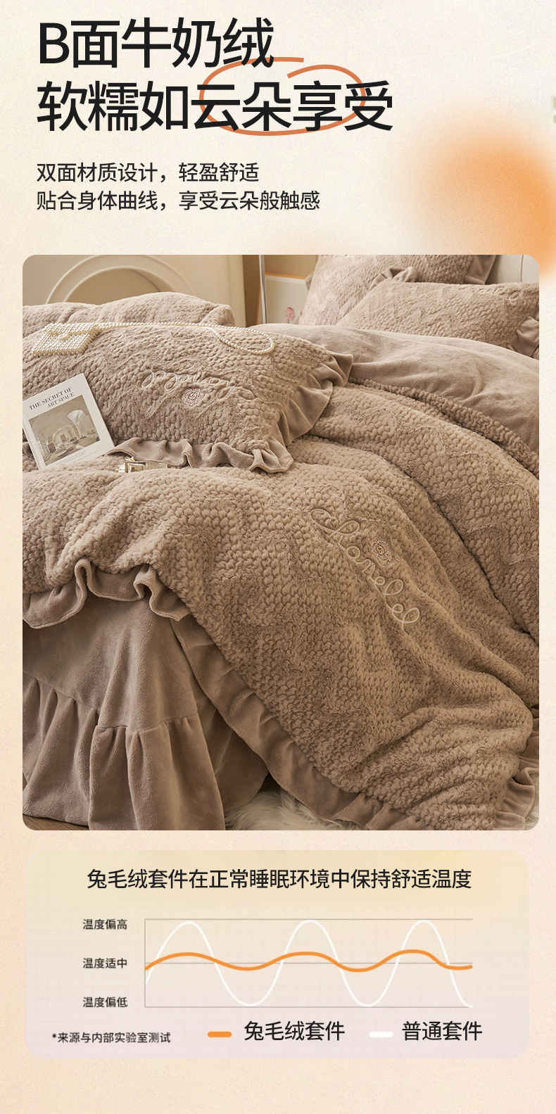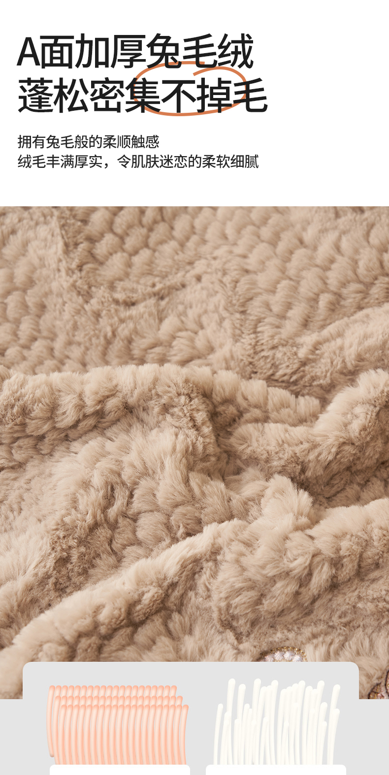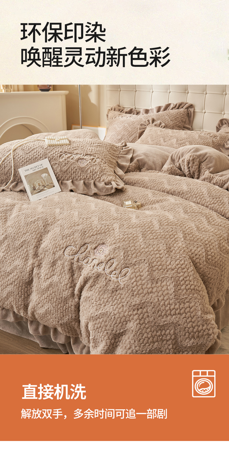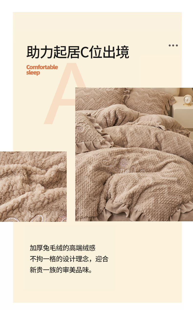商品名称:恒爱家纺 2023新款兔毛绒绣花四件套 波浪款-浅棕