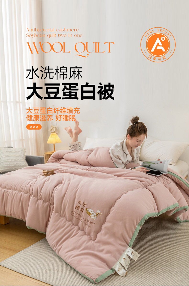(总)蓝冰家纺 2023新款A类水洗棉麻立体大豆被