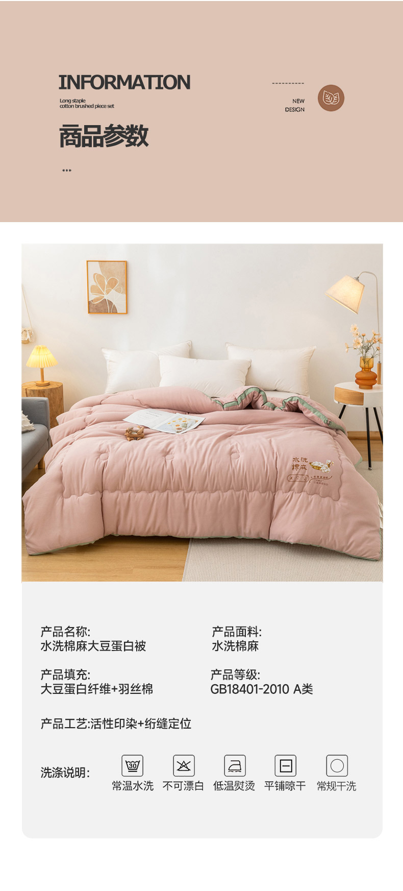 商品名称:(总)蓝冰家纺 2023新款A类水洗棉麻立体大豆被