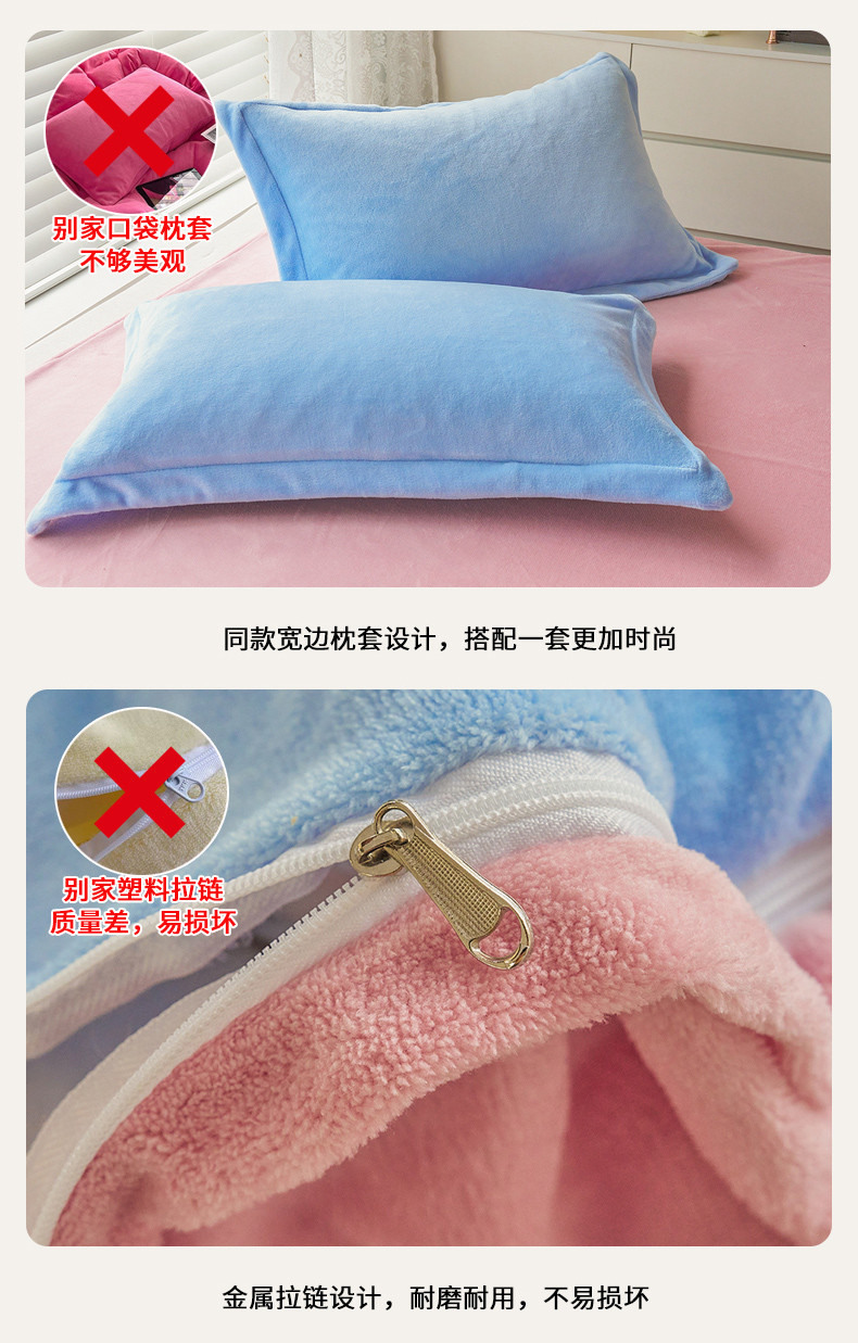 商品名称:慕晨 2023新款纯色牛奶绒双拼四件套 奶油蓝+奶油粉