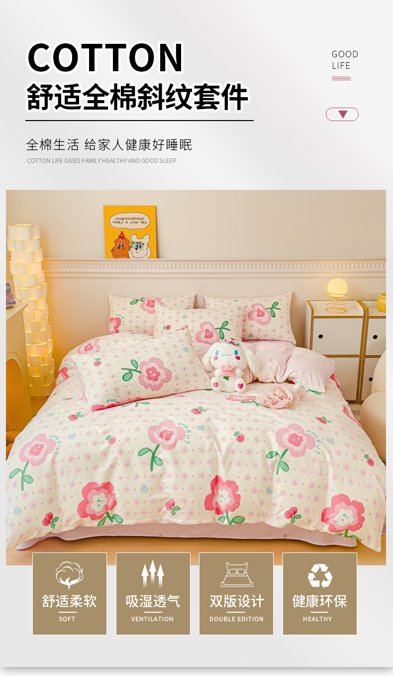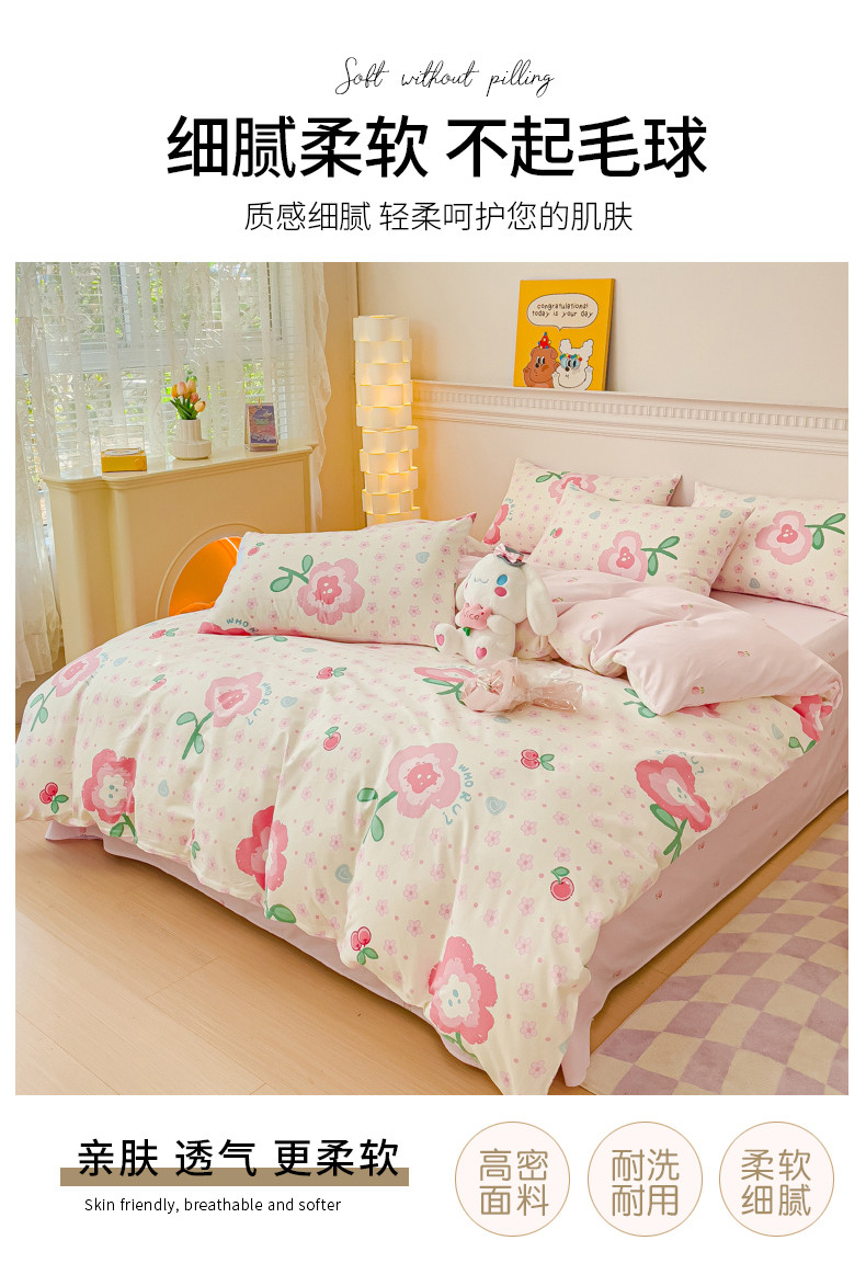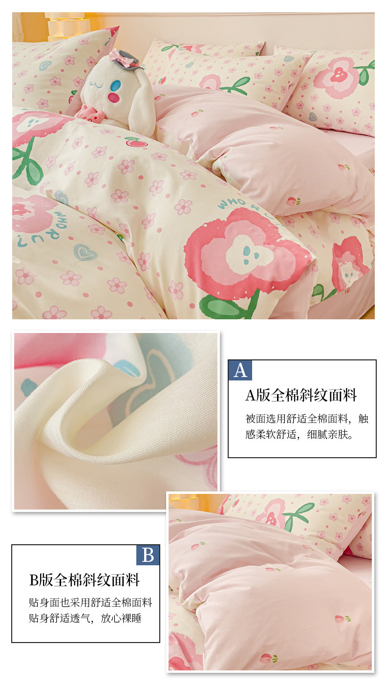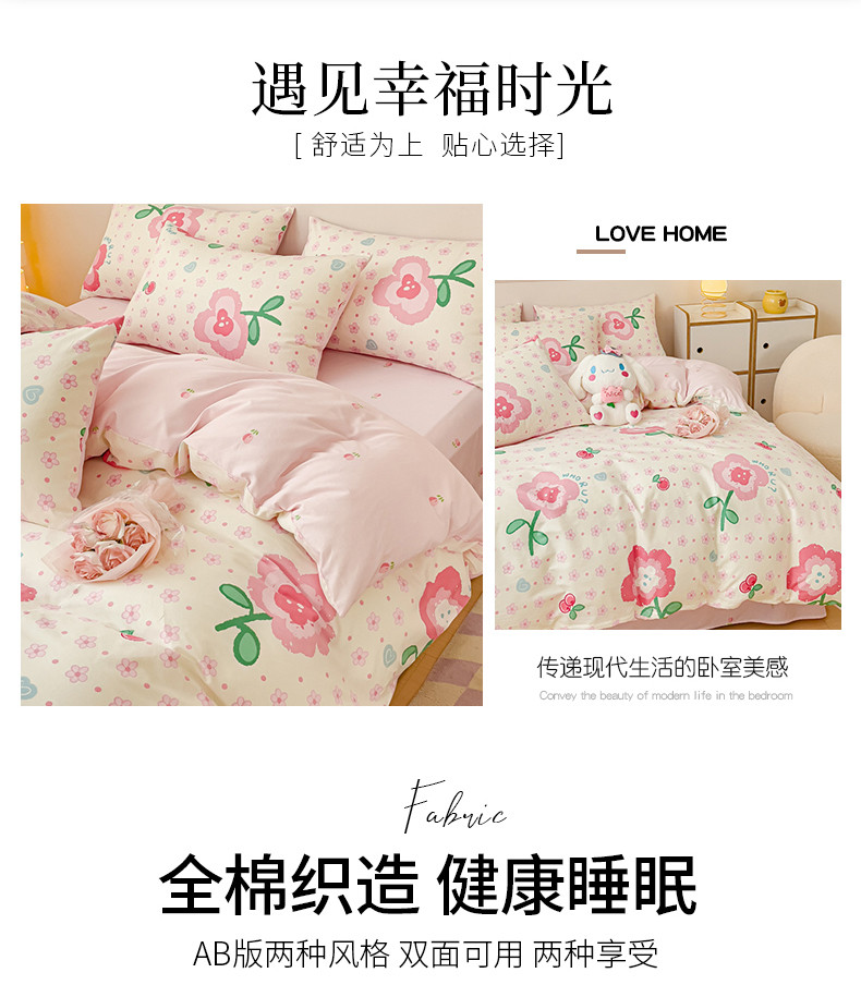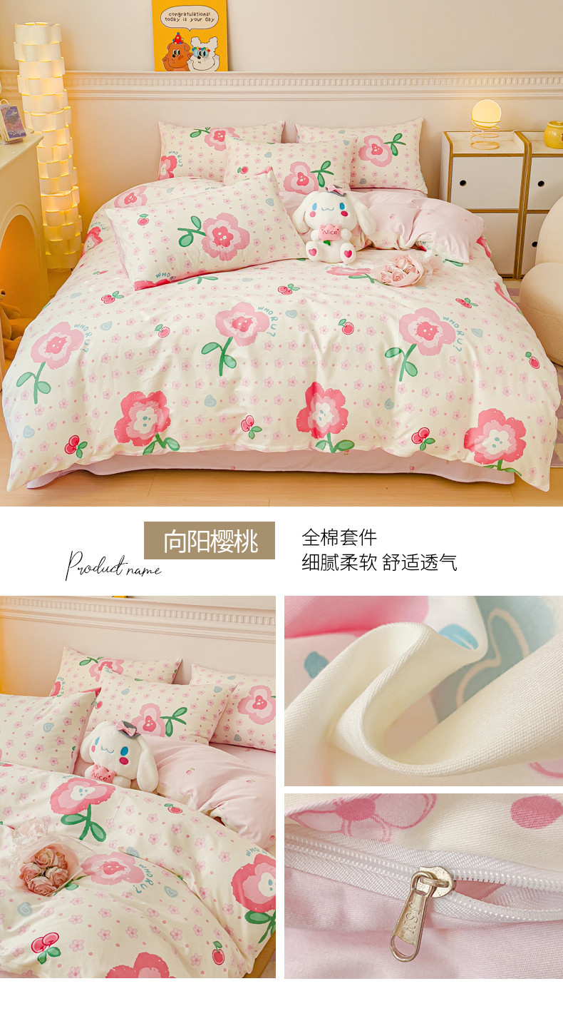 当前位置: 91家纺网 > 商品网购 > 床品套件 > 四件套 > 全棉普通四件套 > 金丝鸟家纺 2023新款全棉小清新四件套-第三批 向阳樱桃