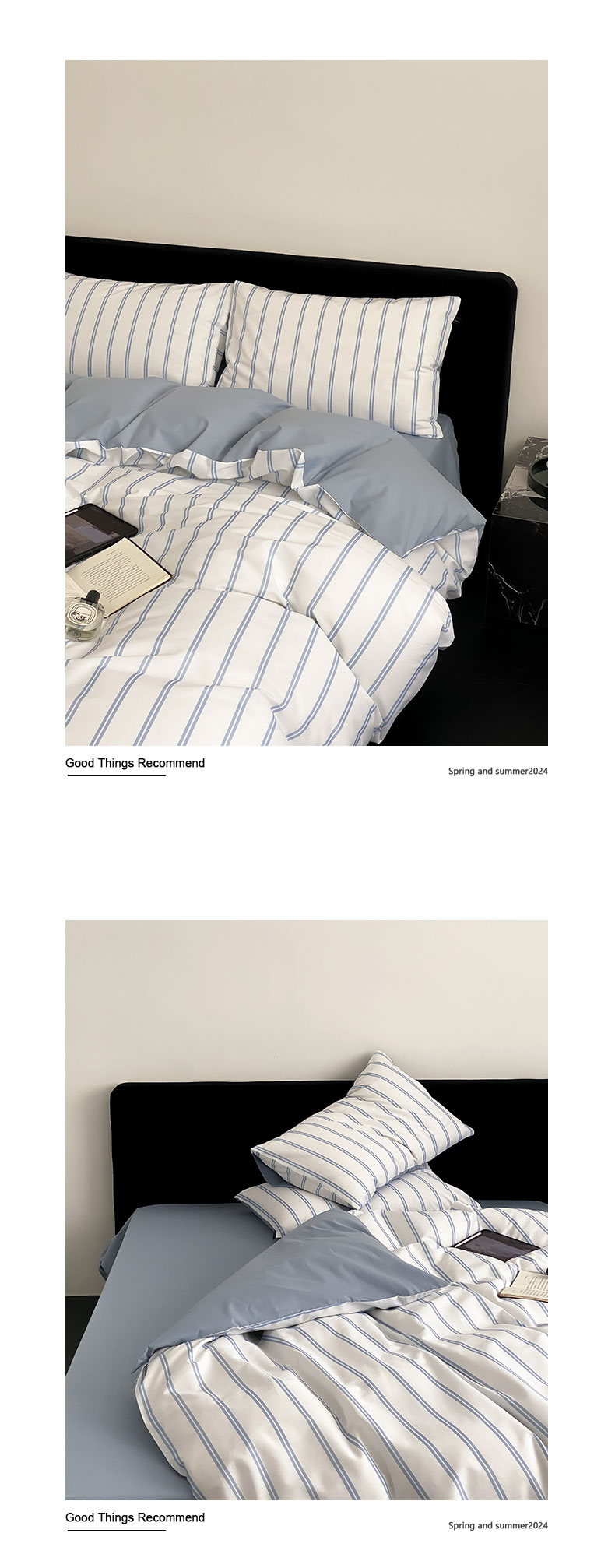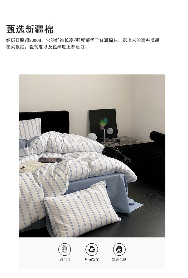 商品名称:Mr.pig猪先生水洗棉 2023新款A类全棉印花竖条纹四件套 浅蓝竖条
