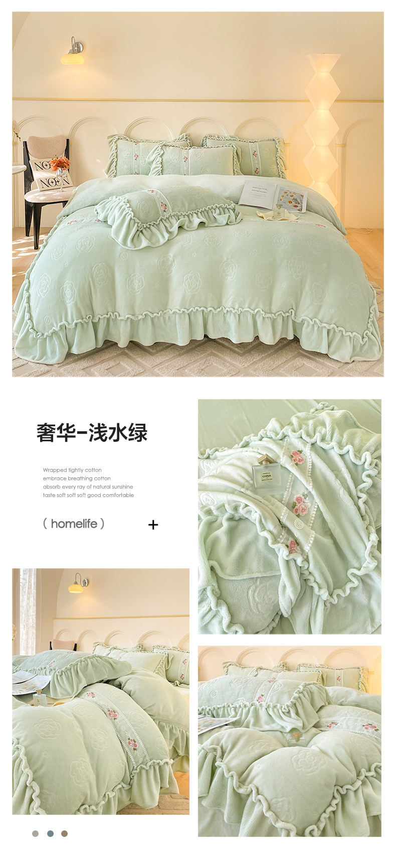 商品名称:逸尚阁 2024新款奢华系列高克重牛奶绒四件套 奢华-浅水绿
