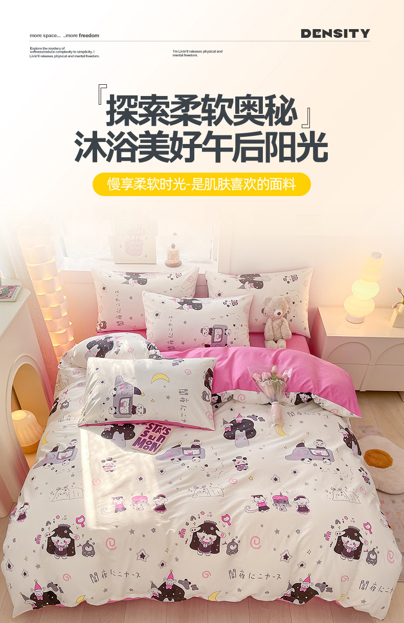 (总)曼之夏 2025新款全棉纯棉双层印花四件套,缤纷草莓,哈哈狗,花丛兔,花开半夏,花满楼,凯蒂熊仔,快乐凯蒂,快乐星球,玫瑰物语,萌萌兔,陌上花开,软萌女孩,水果派对,亭亭玉立,紫梦