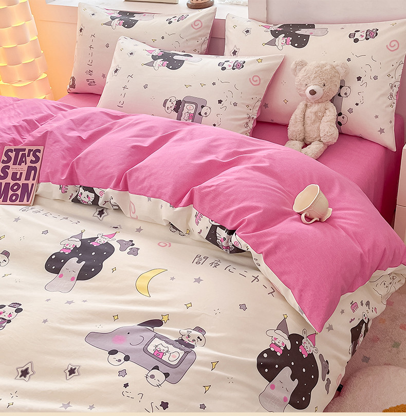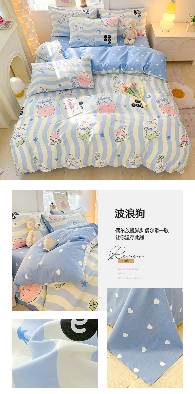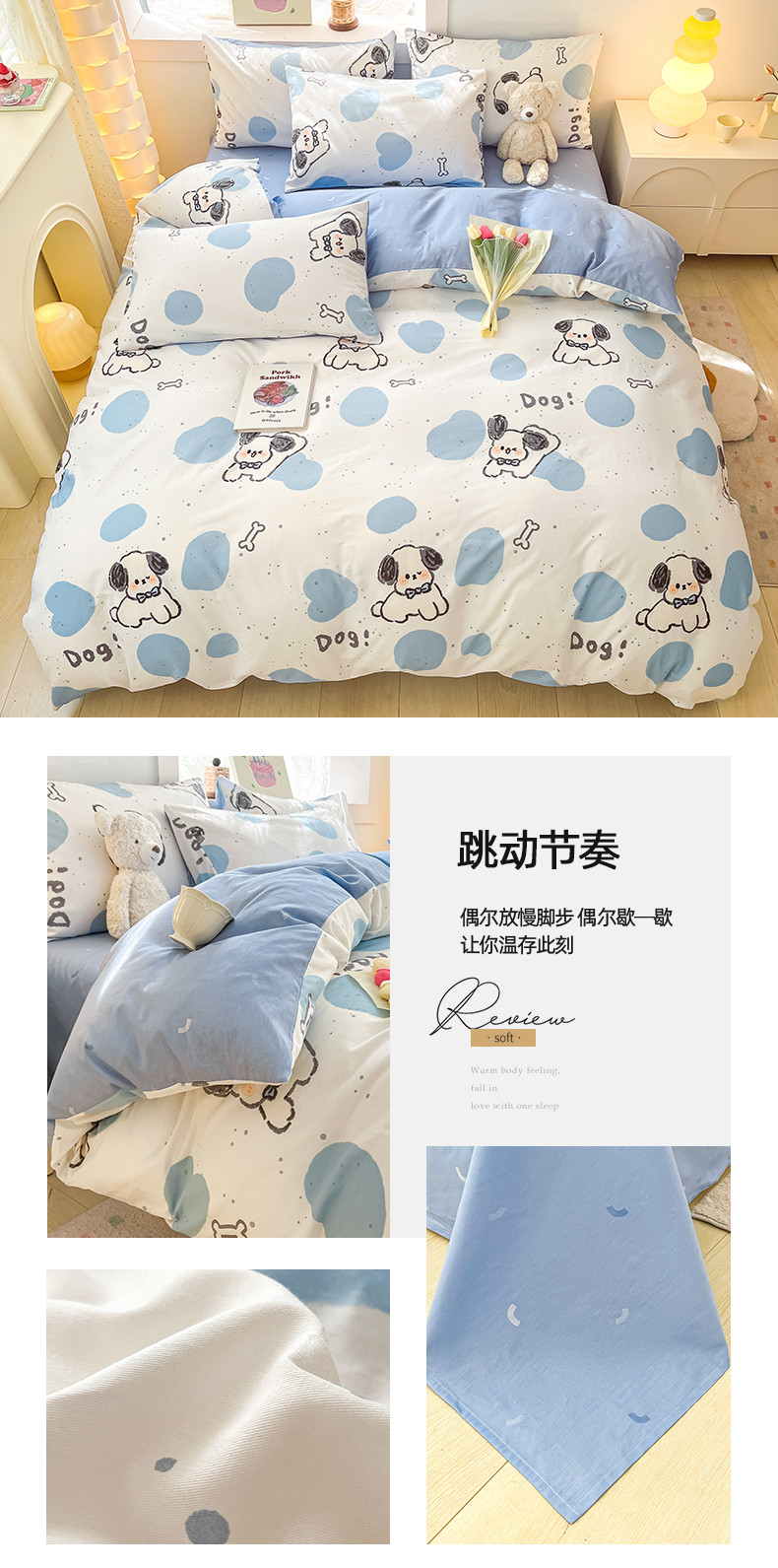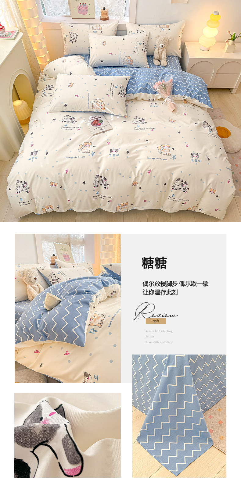 (总)曼之夏 2025新款全棉纯棉40支学生季卡通印花四件套,椰蓝小腊肠,茶茶狗,格子猫,嗨皮狗,开心屋,可爱多,可可汪,玛奇朵,奶昔小熊,泡芙小象,曲奇小狗,趣味熊,甜甜圈,甜心猫咪,童画,小狗日记,樱桃熊仔