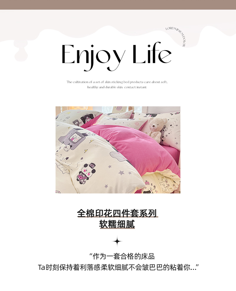 (总)曼之夏 2025新款全棉纯棉印花四件套,豹纹猫咪,笨笨象,缤纷乐园,草莓蛋糕,丛间密语,点点小腊肠,冬日可可狗,告白熊,格子小狗,快乐熊猫,萌萌哒,蜜糖,苹果熊仔,奇思妙想,圣诞星语,兔兔甜心,线团小猫,小熊序曲,心动狗狗,心心狗,星星凯蒂猫,幸运猪猪