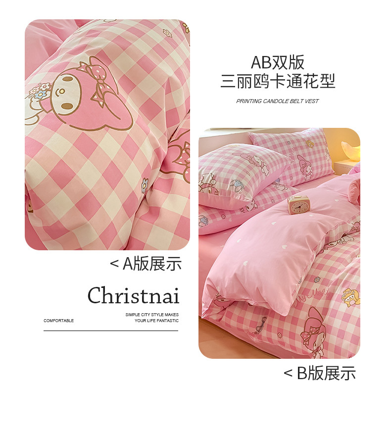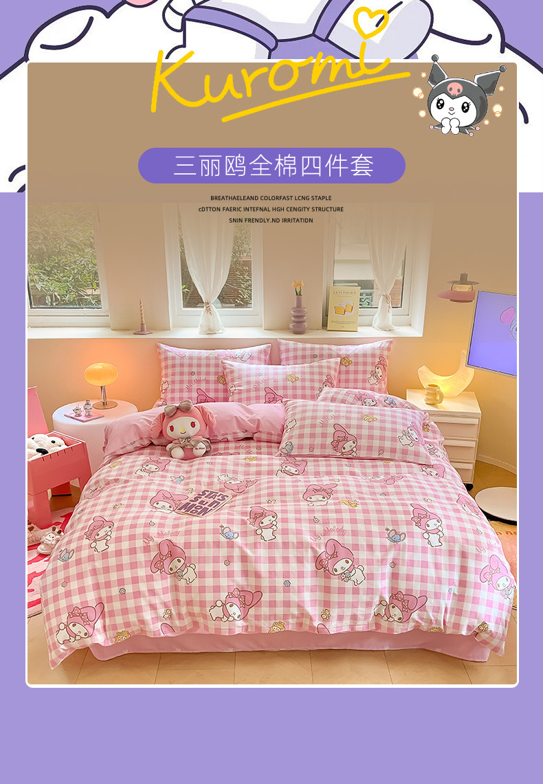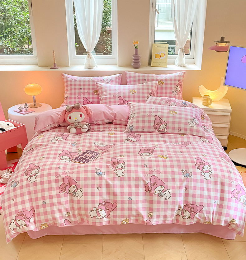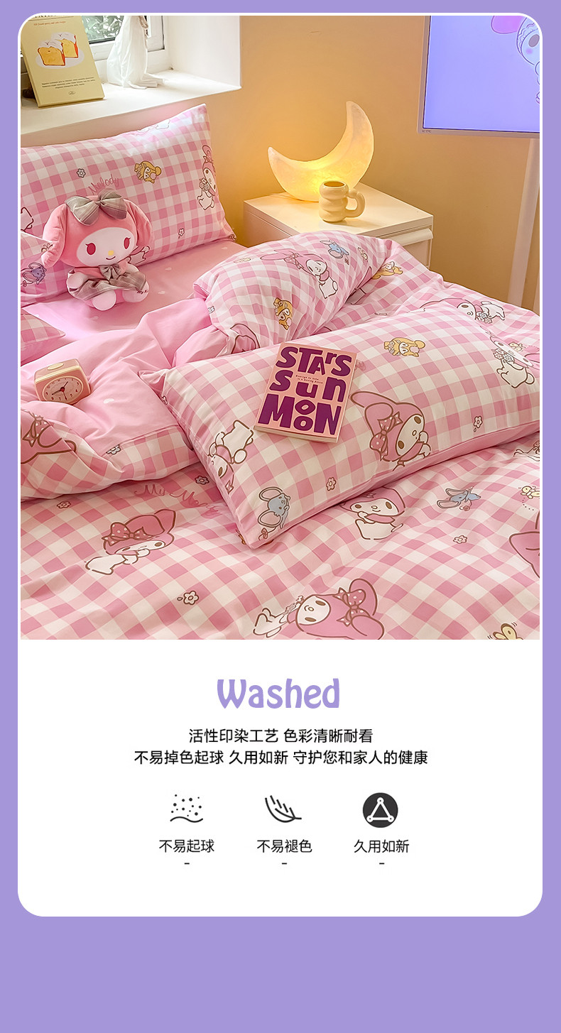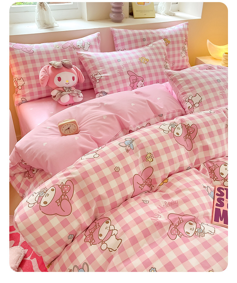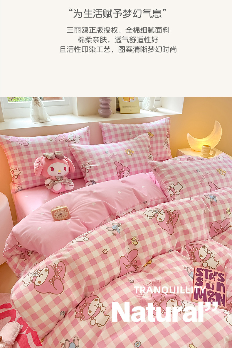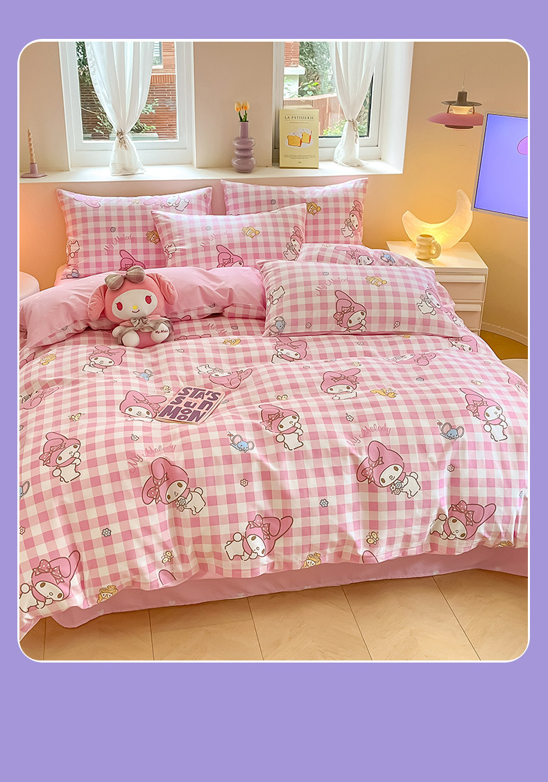 商品名称:曼之夏 2024新款全棉三丽鸥卡通单被套 粉格美乐蒂