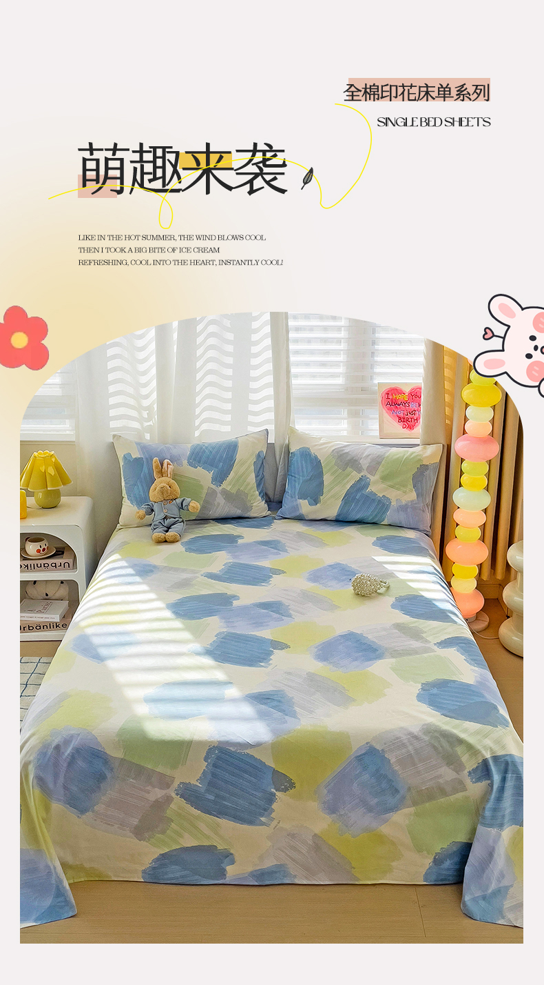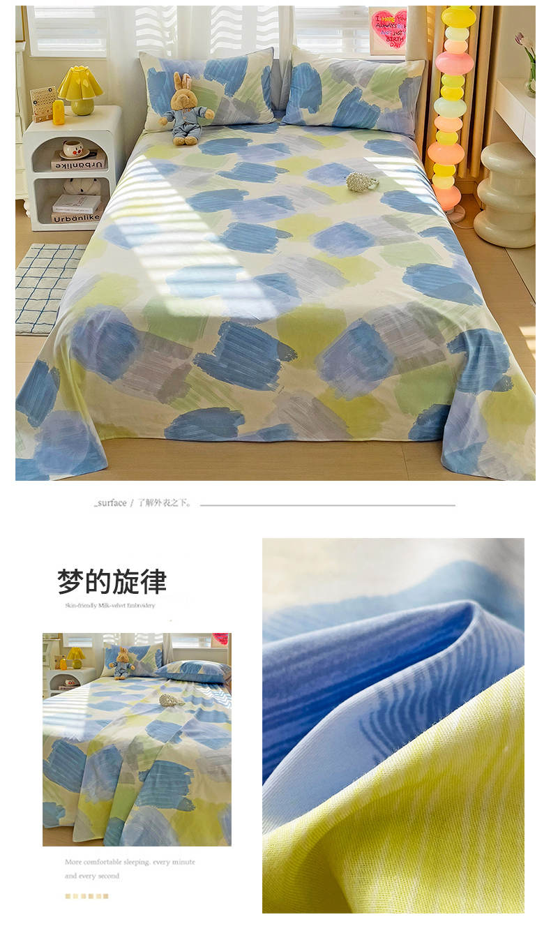 • 91家纺网 家纺一手货源 找家纺 名兮家居 2024新款小清新全棉单品床单 梦的旋律