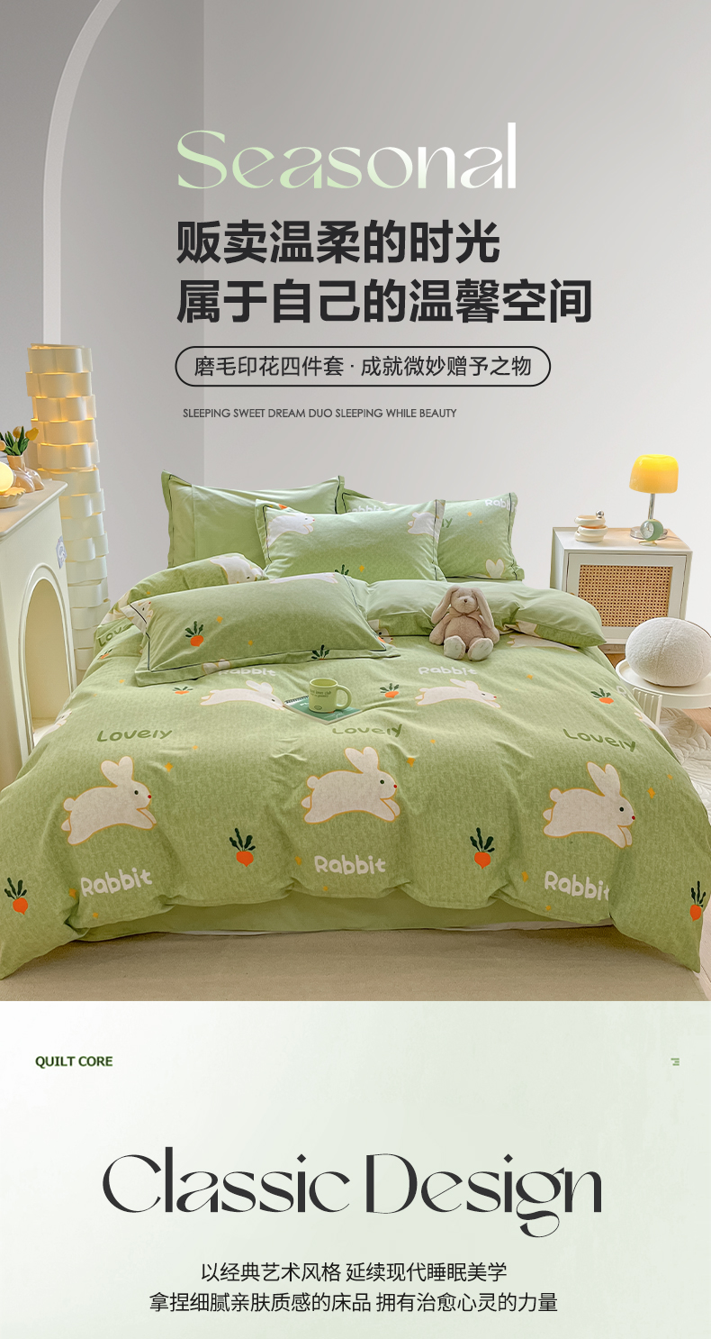 宜家坊 2024新款ins小清新磨毛印花四件套 偶遇
