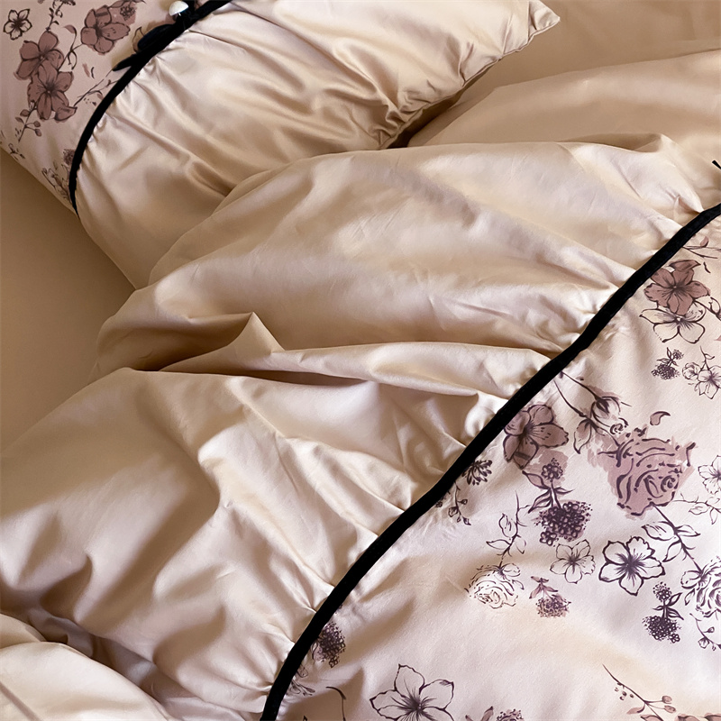 (总)优然居家纺 2025新款全棉磨毛法式小香风格纹贴布绣法式老钱风四件套-山茶花,山茶花-灰,山茶花-粉