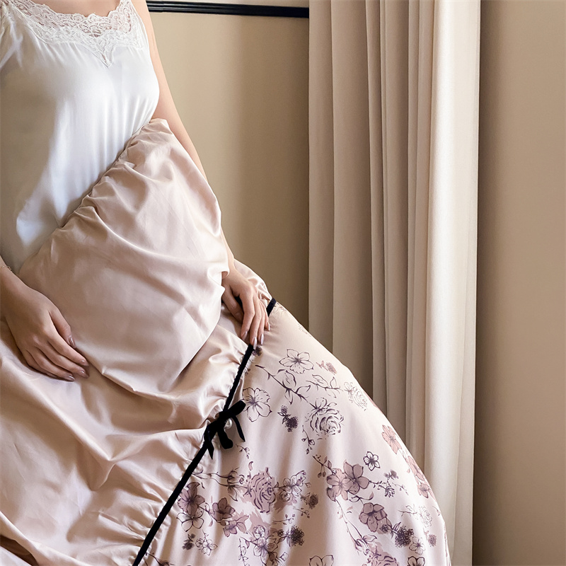 (总)优然居家纺 2025新款50支全棉纯棉印花法式双头木耳边四件套,觅棠,莫妮卡艾绿,莫妮卡罗兰,慕斯粉,薇薇安