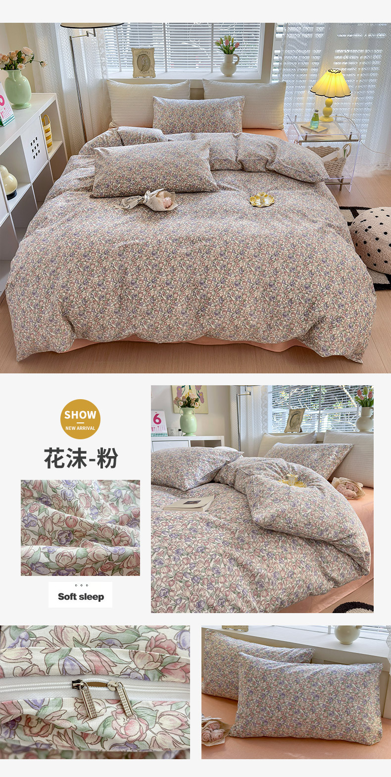 商品名称:怡家居 2024新款全棉印花第二批碎花类四件套 花沫-粉