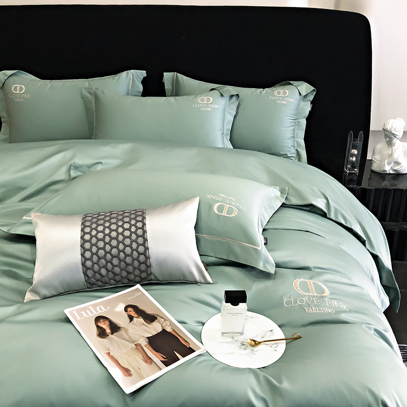 商品名称:若未家居 2025新款50SCR长绒棉四件套-绮洛 绮洛湖绿